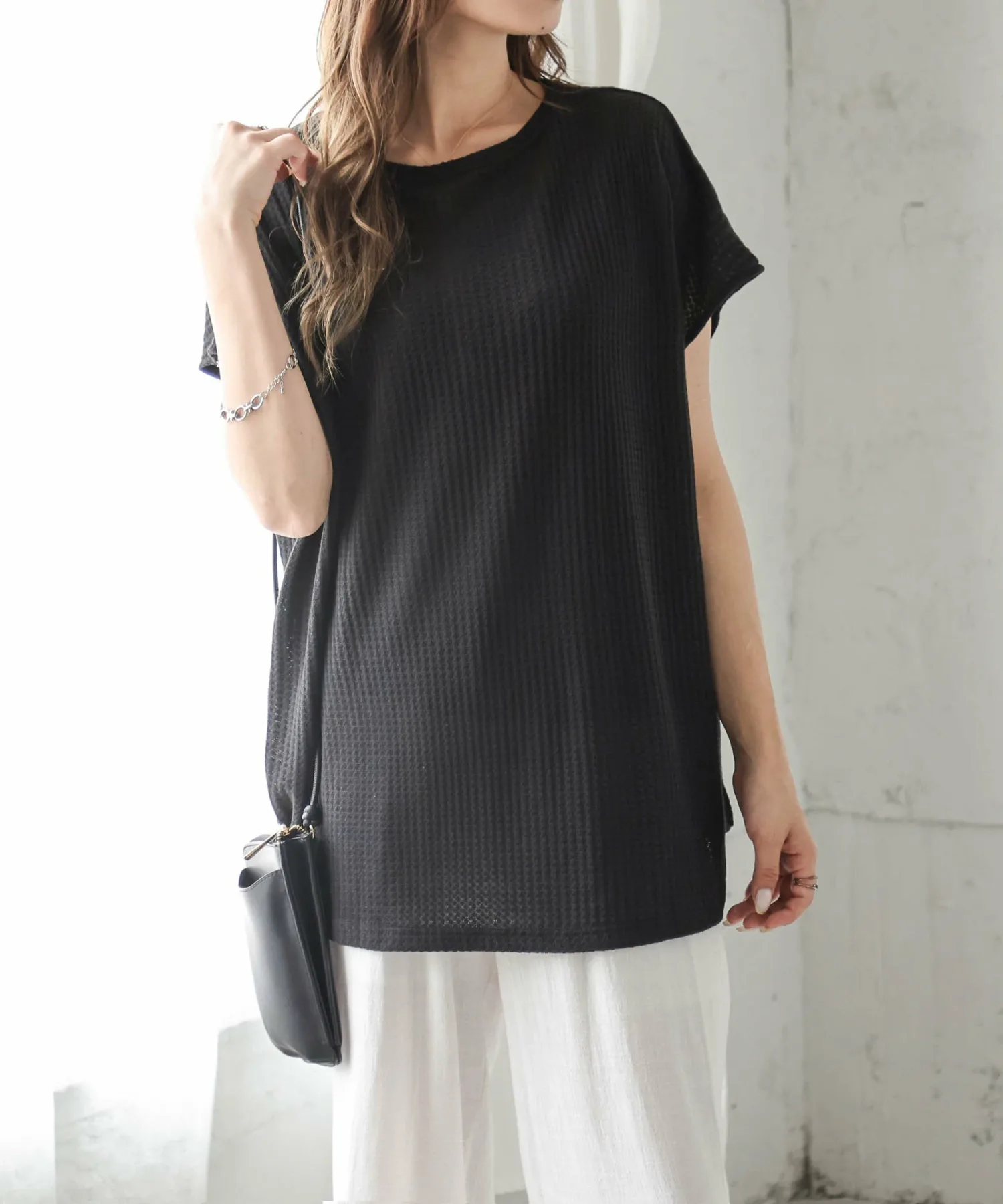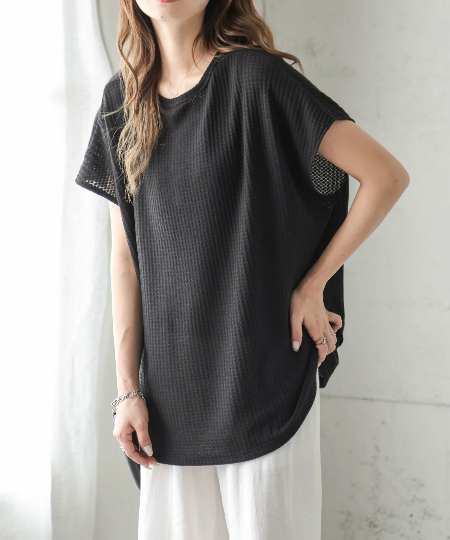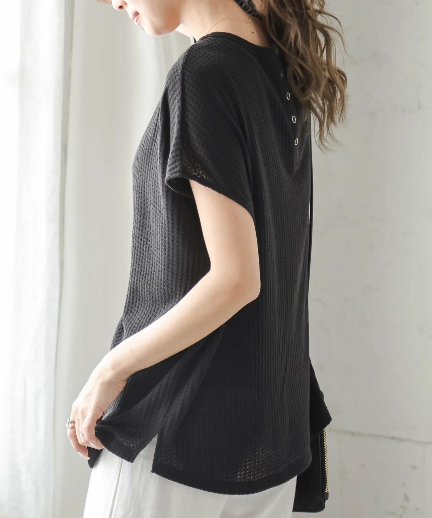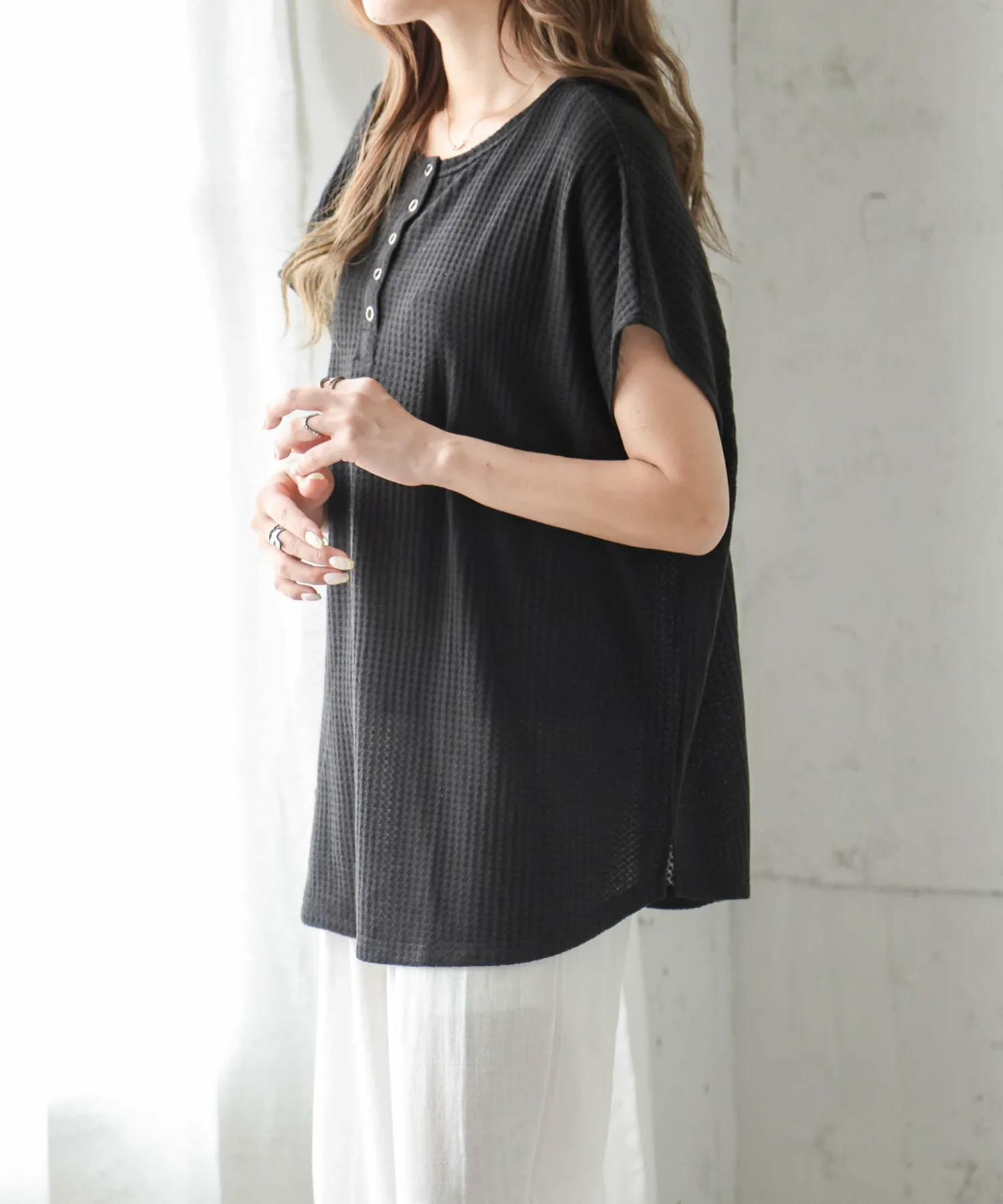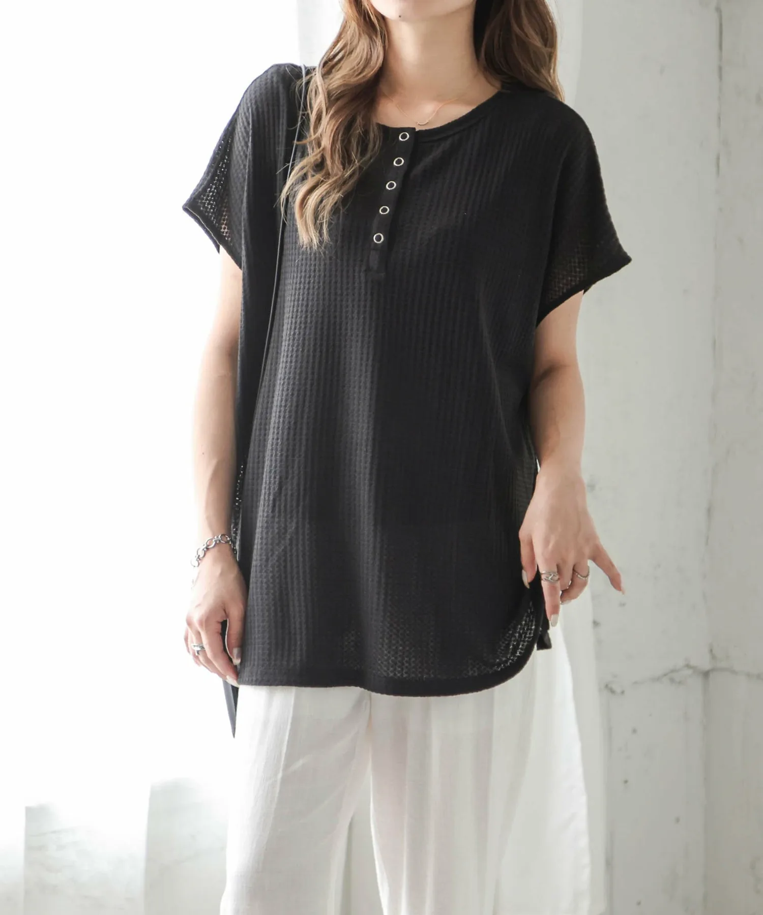 Вафельный топ с привлекательным грубым дизайном и удобным кроем.