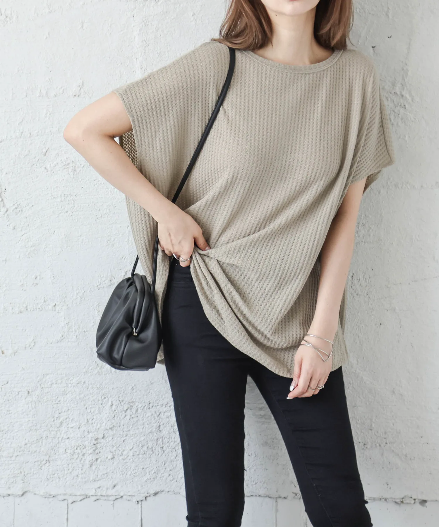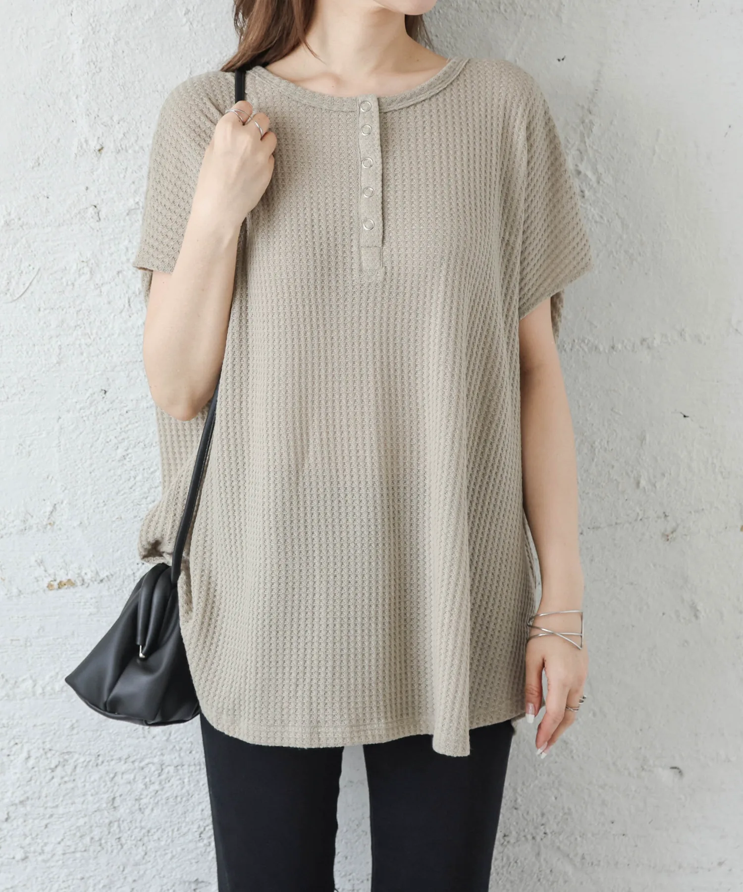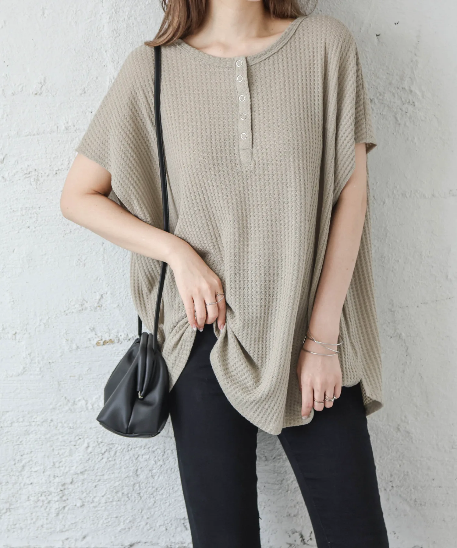 Вафельный топ с привлекательным грубым дизайном и удобным кроем.