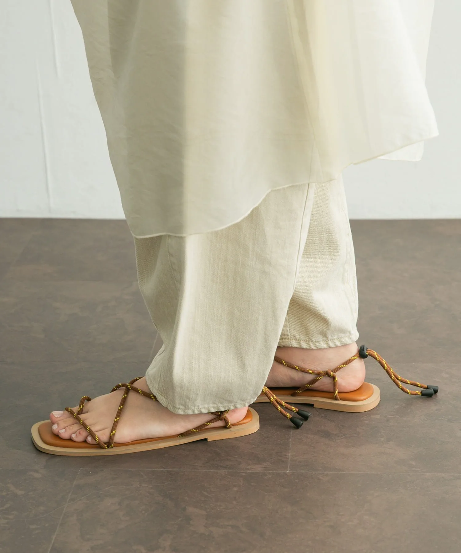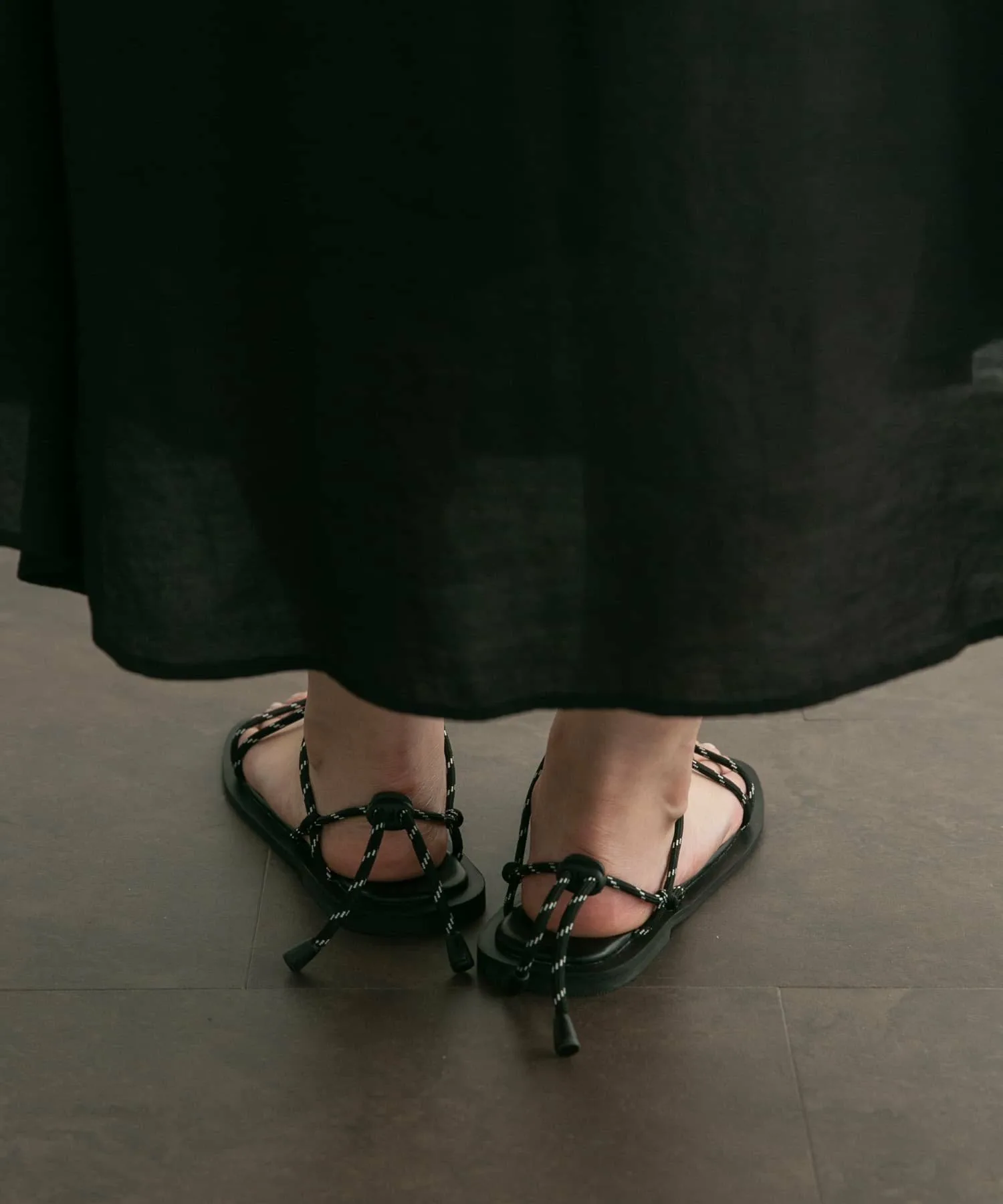 Сандалии на шнурке, которые подойдут к повседневной одежде. Низкий каблук обеспечивает устойчивость, а размер можно регулировать с помощью шнурка на пятке.