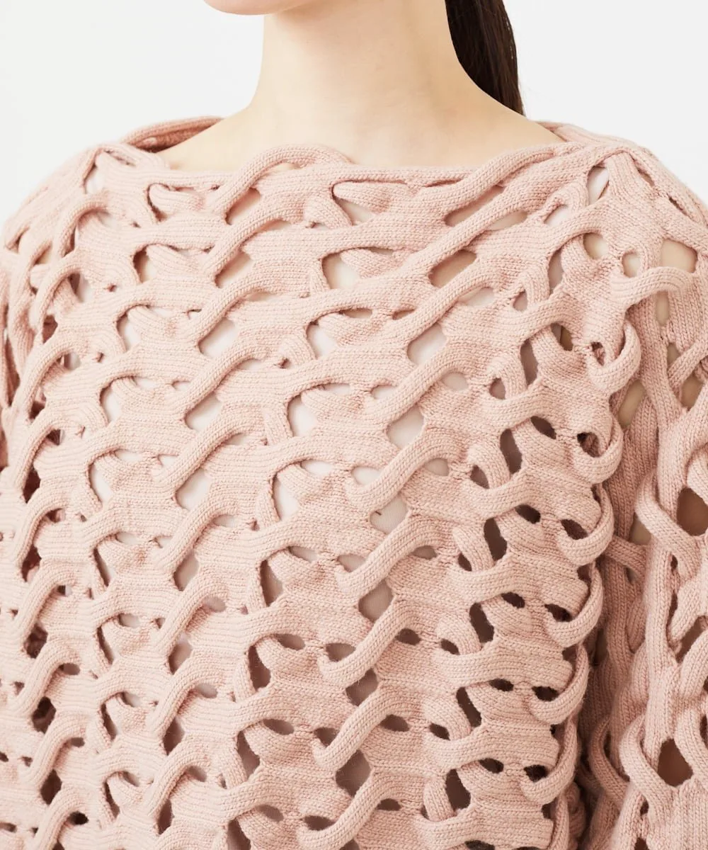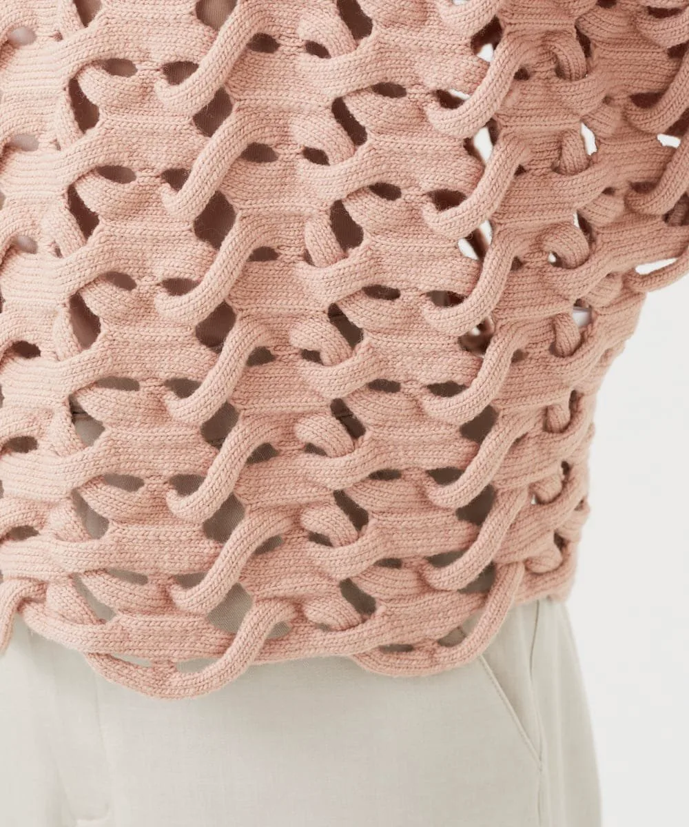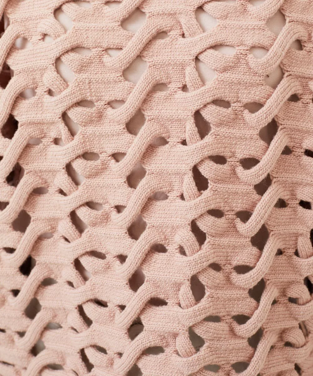 Уникальная техника, возможная только на вязальной машине со специальной функцией, называемой введением основы, создает художественную вязку.