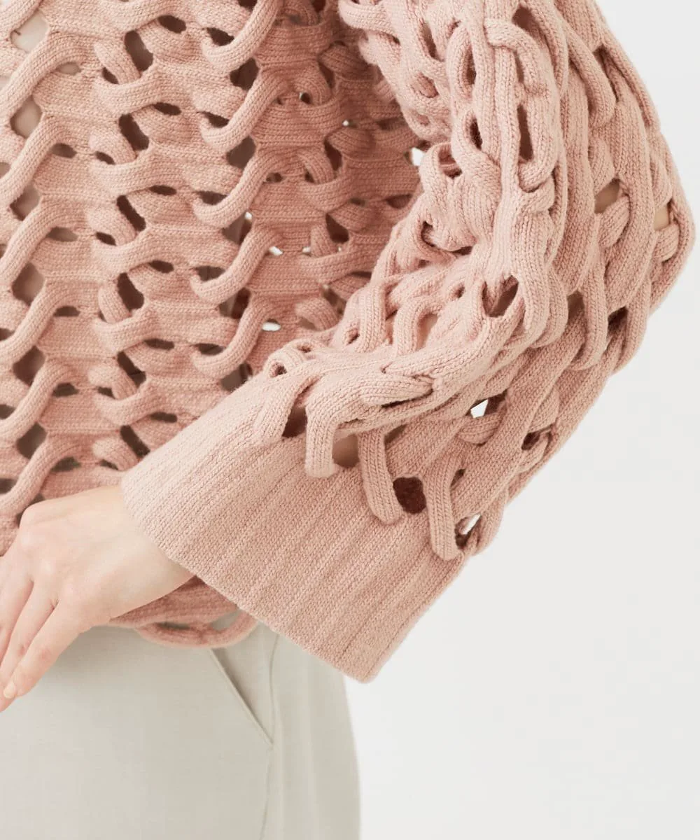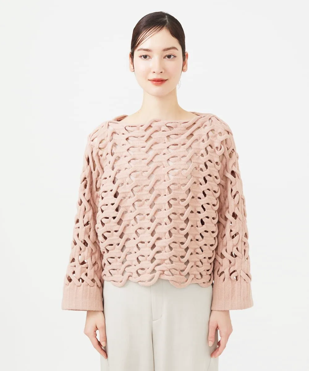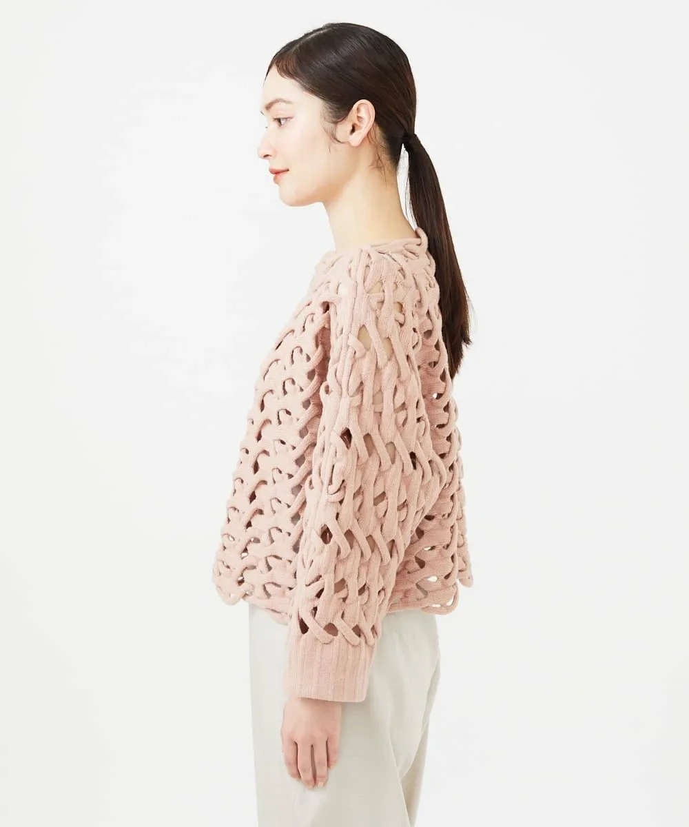 Уникальная техника, возможная только на вязальной машине со специальной функцией, называемой введением основы, создает художественную вязку.