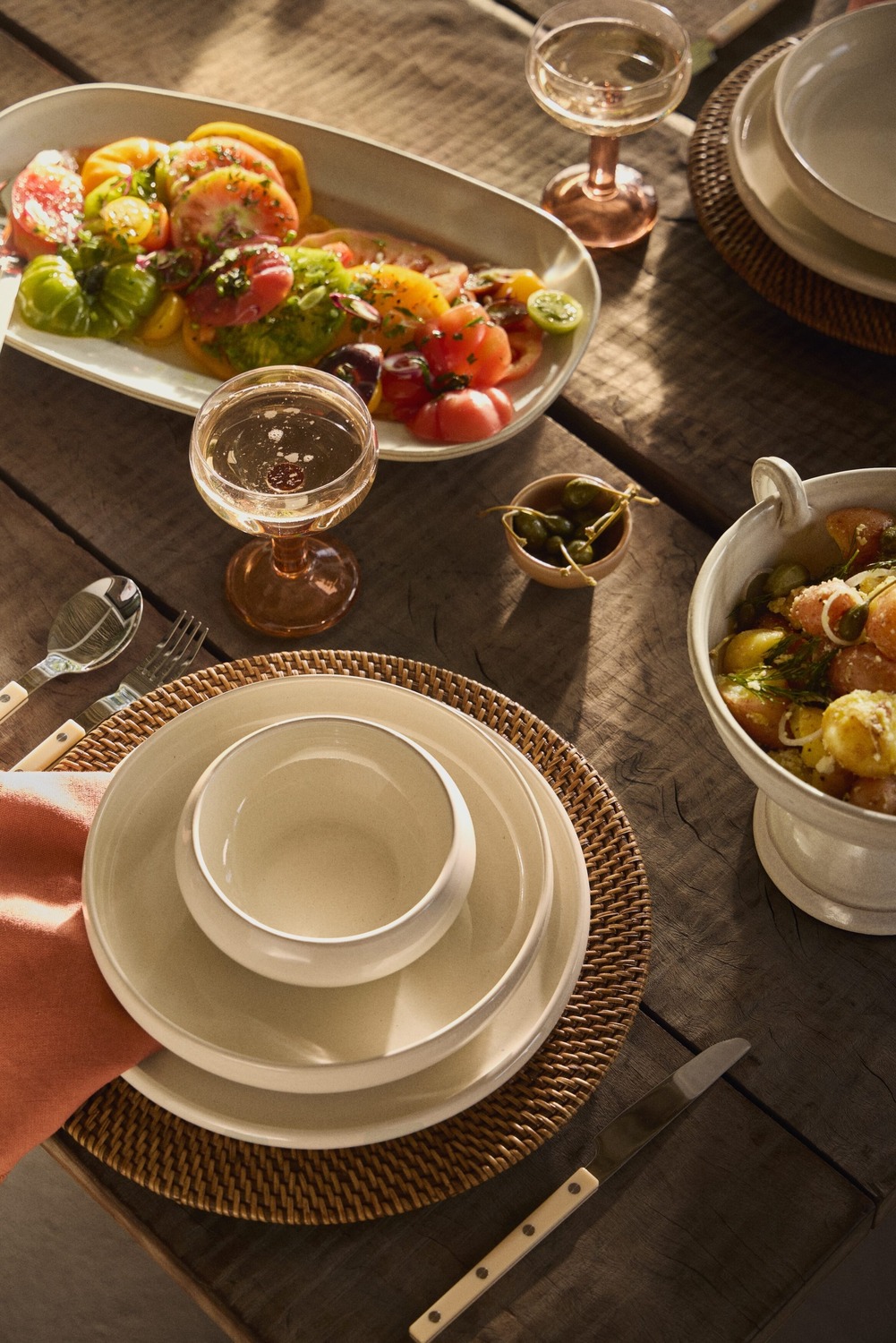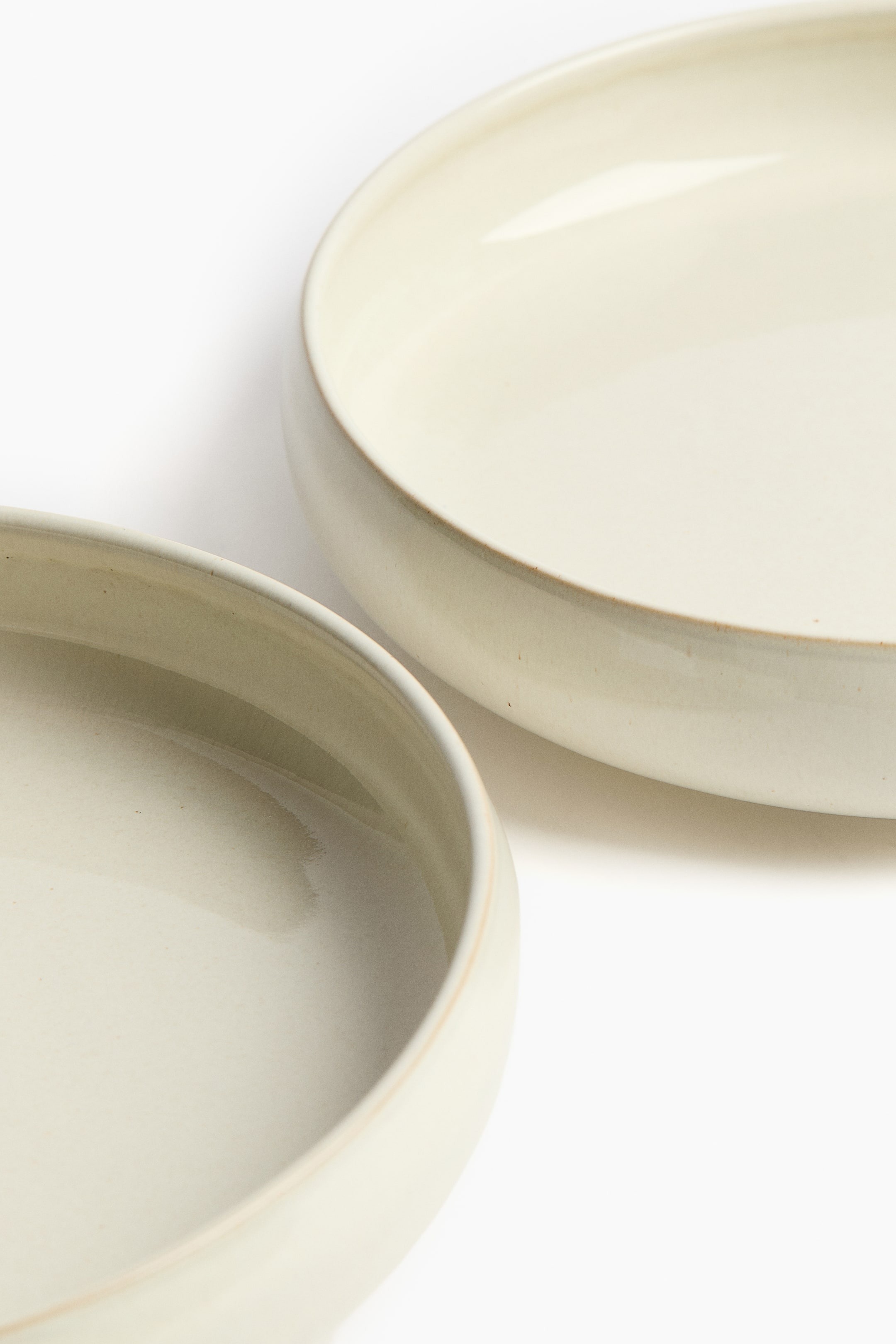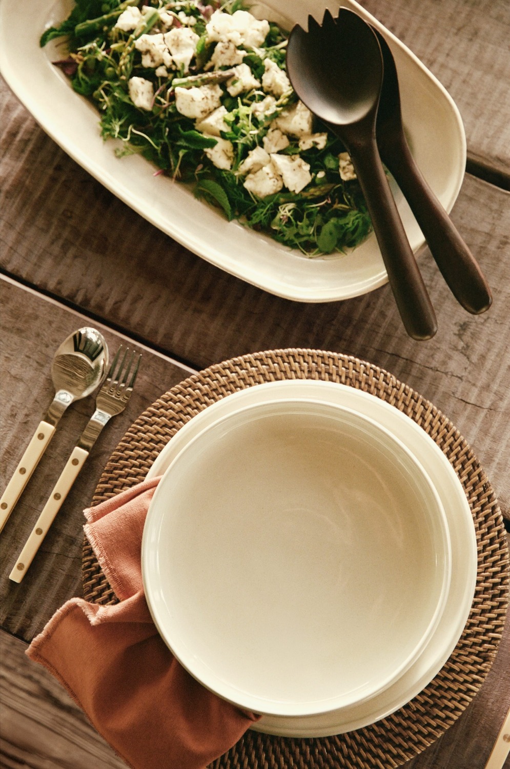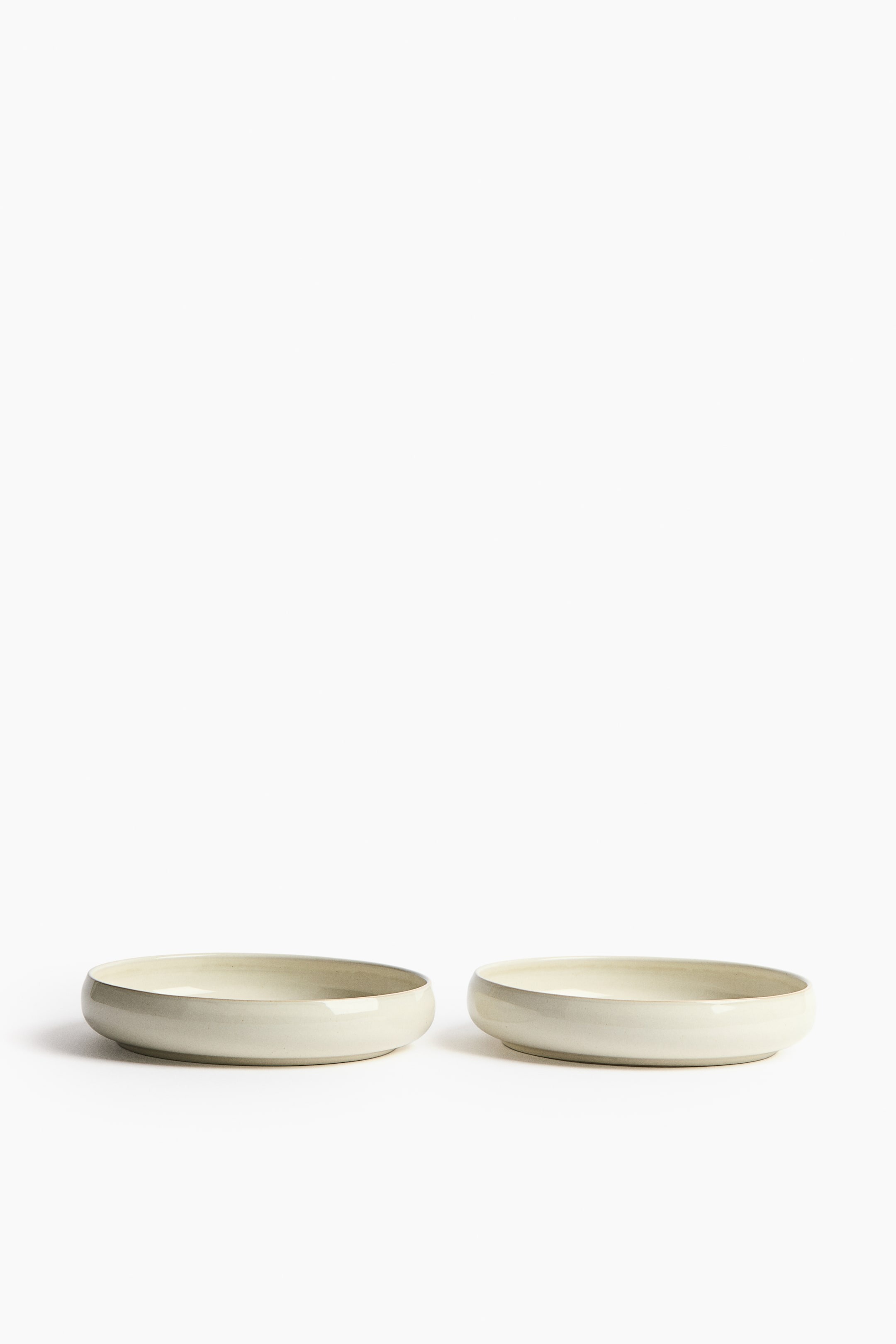 Глубокие керамические тарелки с плавно закругленными краями, покрытые реактивной глазурью, которая придает каждому изделию неповторимый вид.