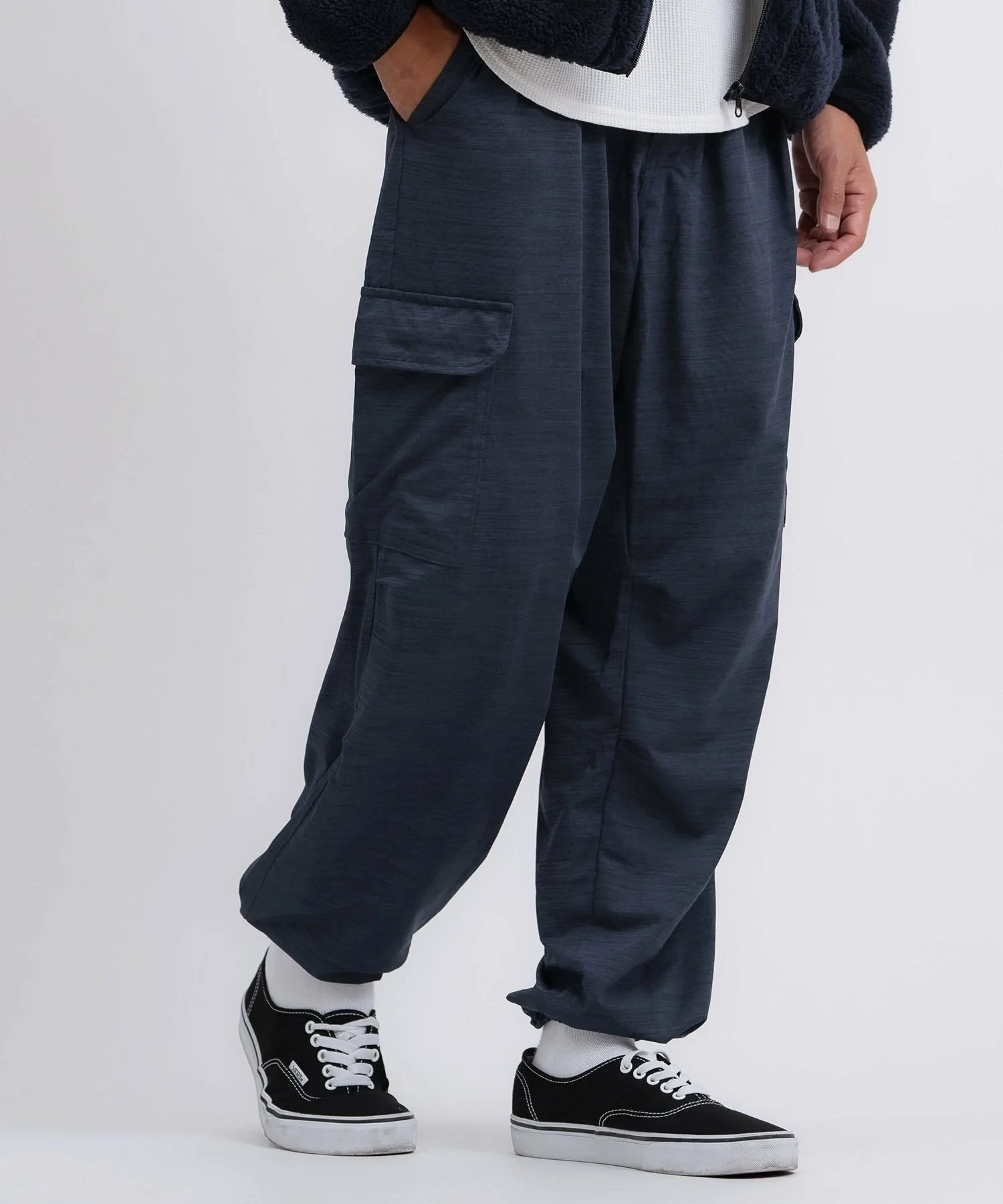 ● Нижний край брюк имеет шнурок, поэтому вы можете затянуть их, как спортивные брюки, чтобы создать объем вокруг ног.