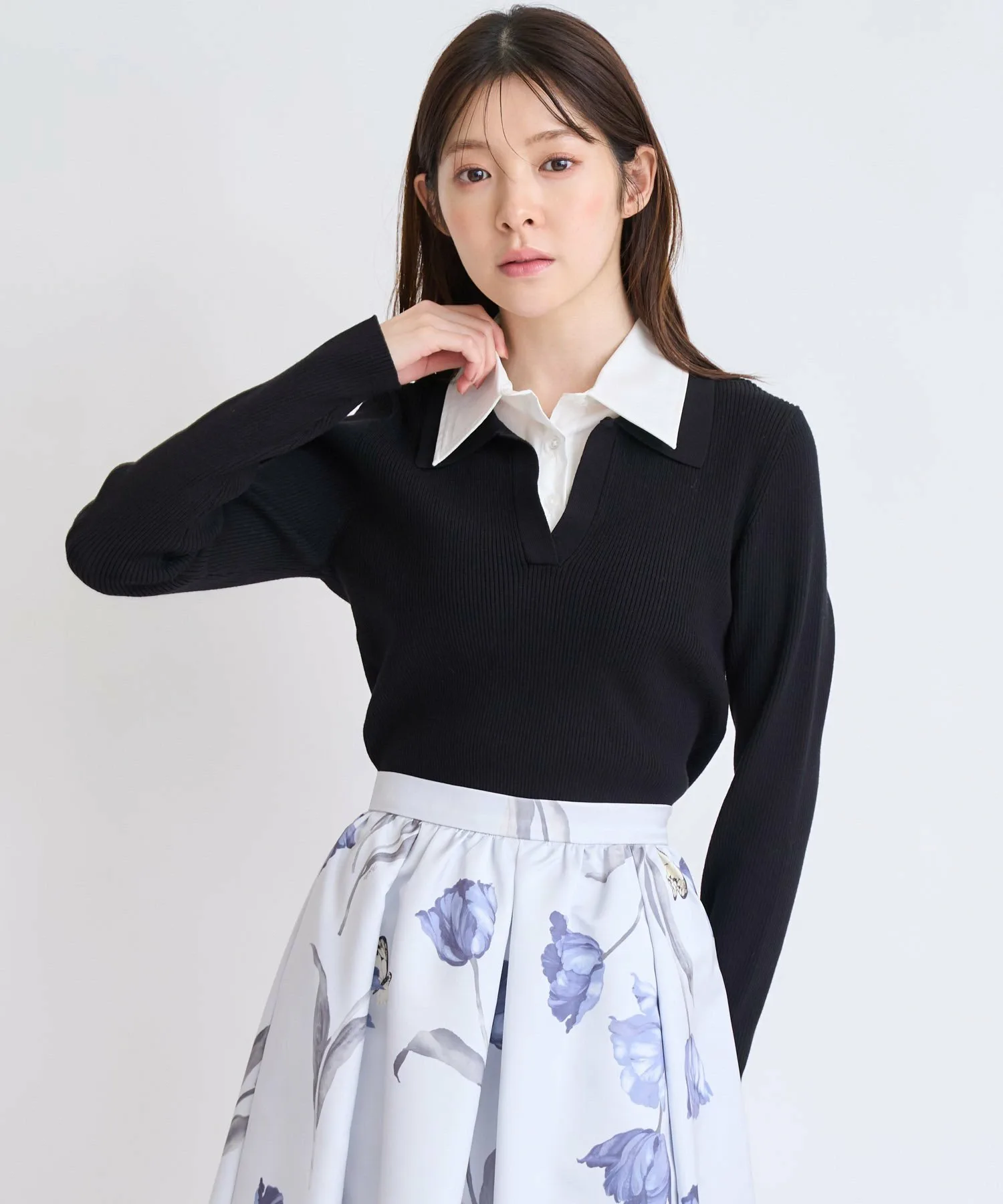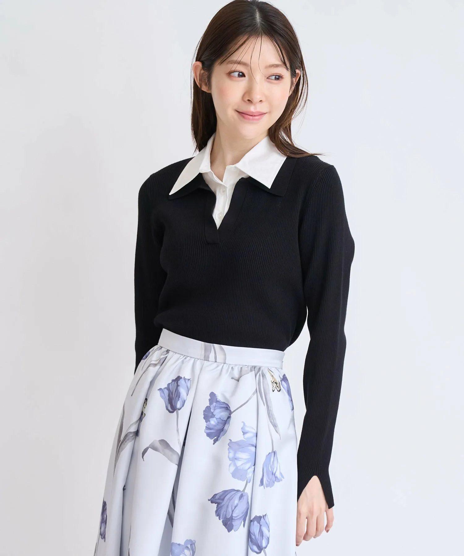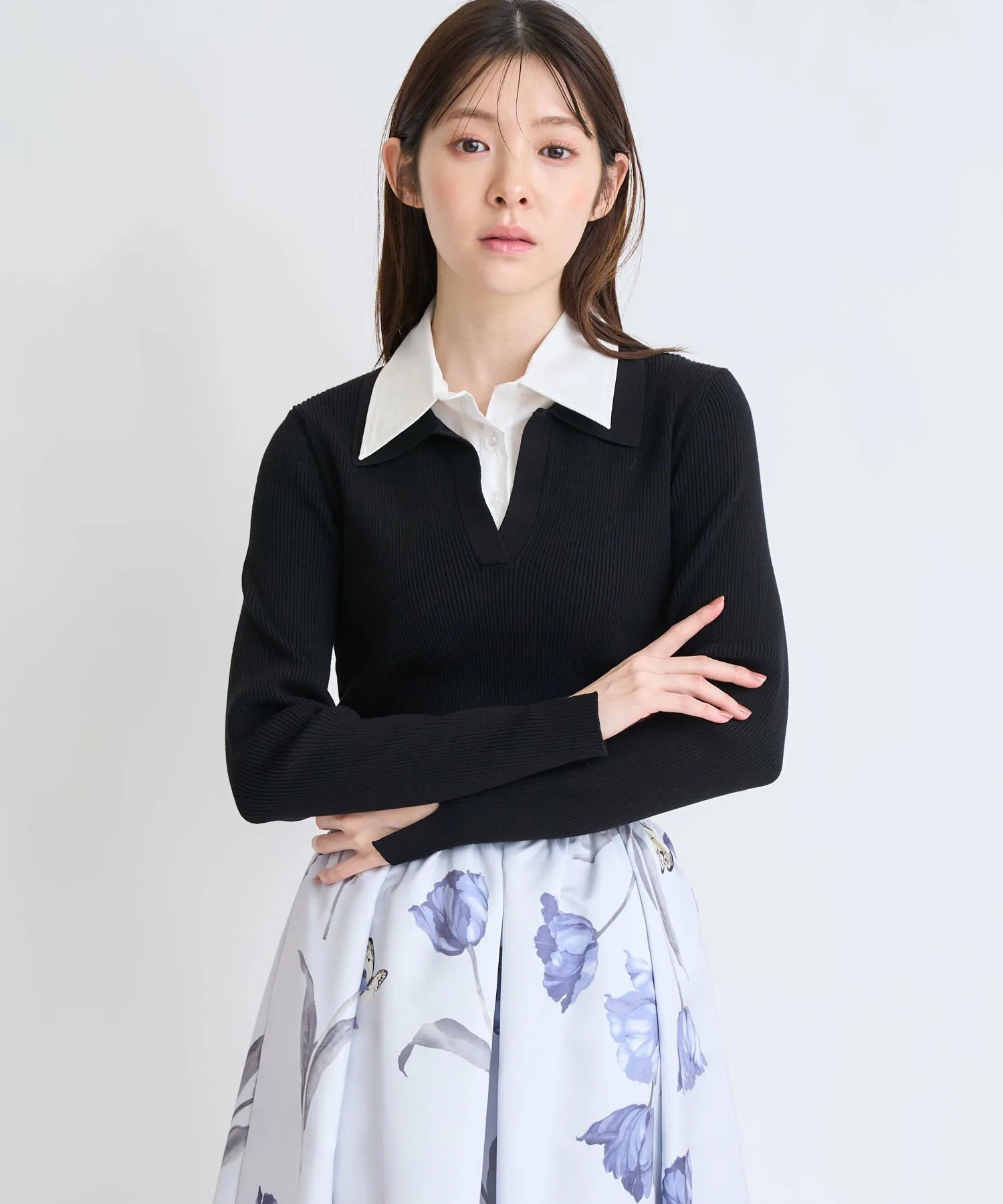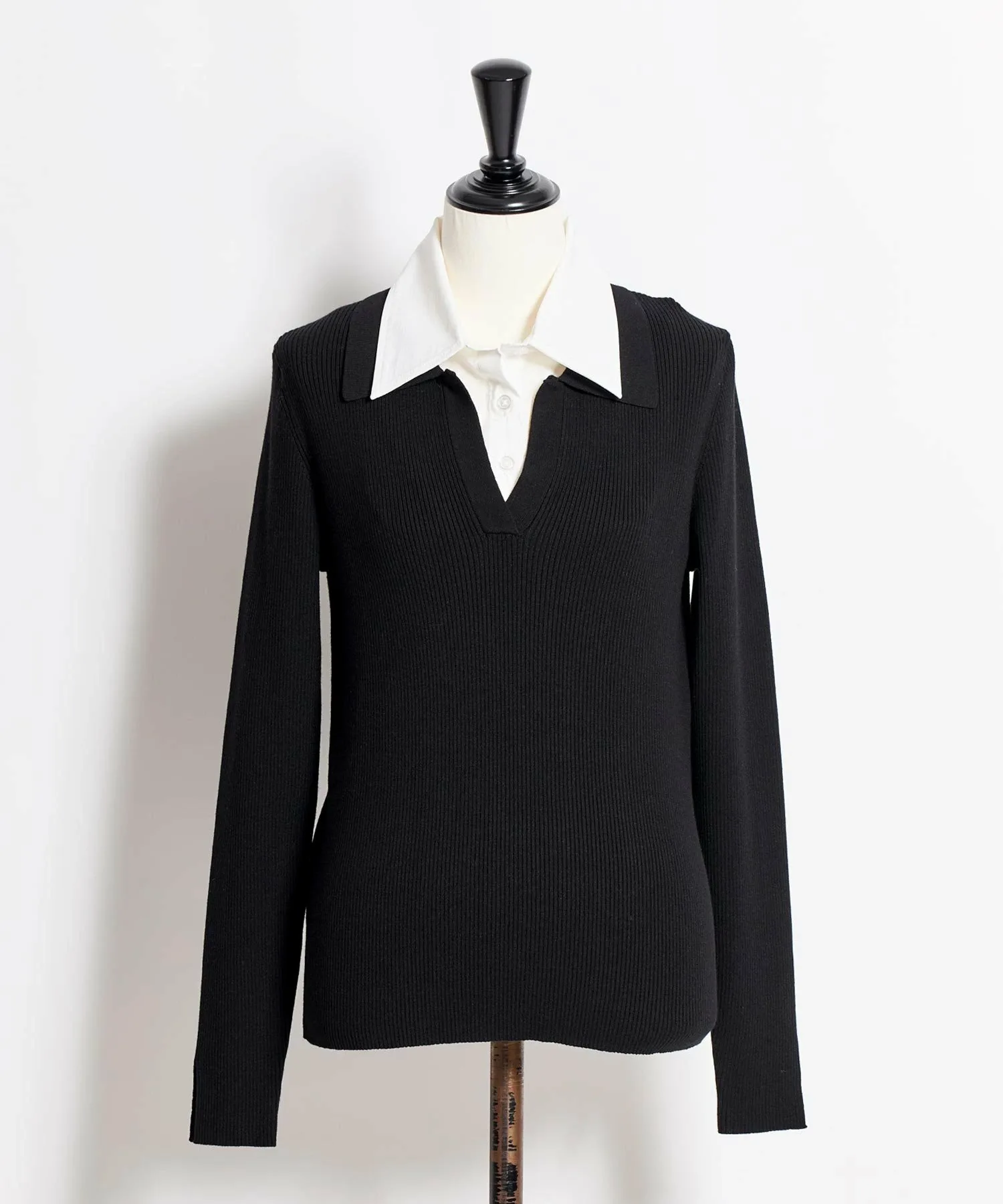 Трикотажный пуловер в стиле поло с приспущенным воротником.
