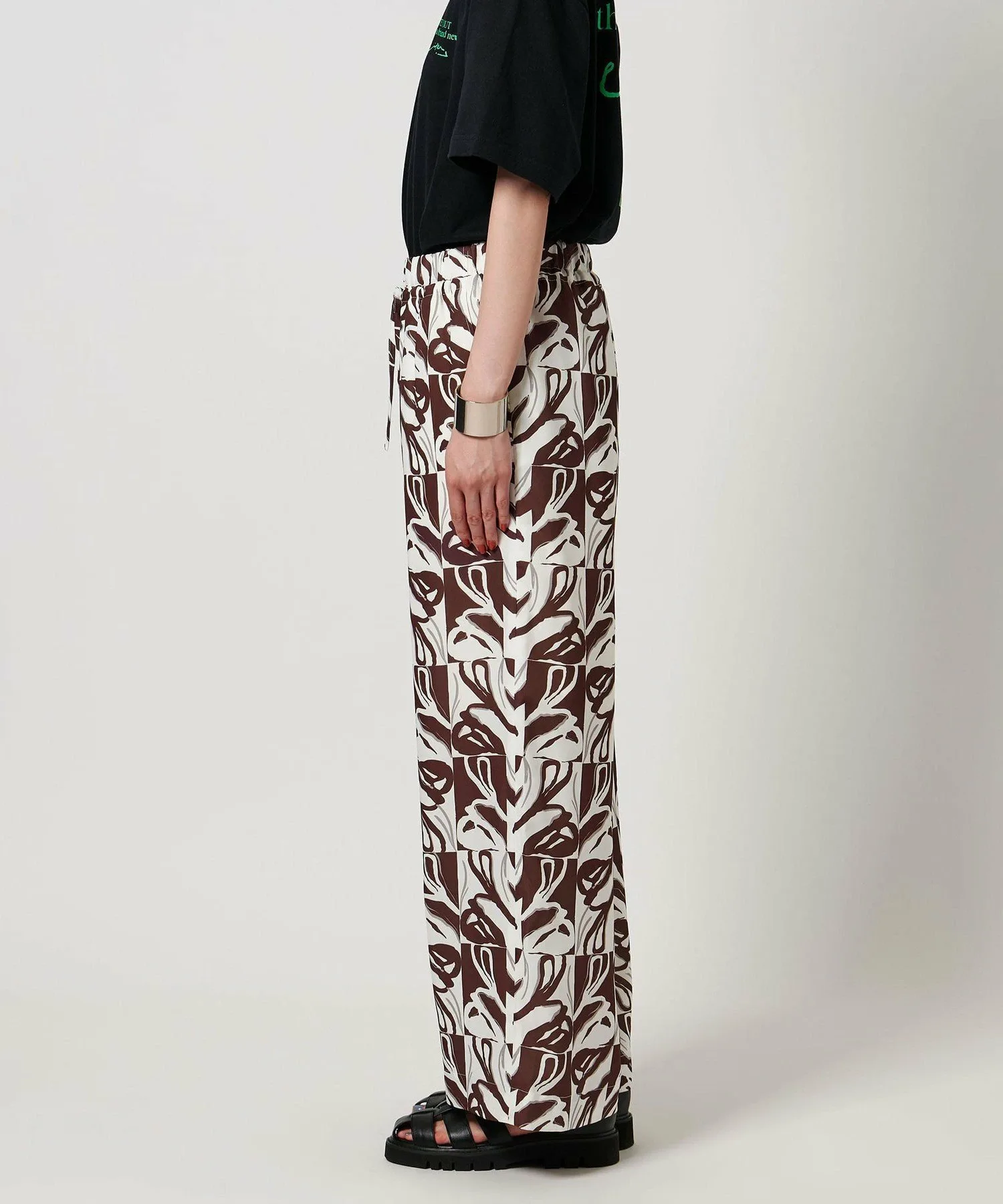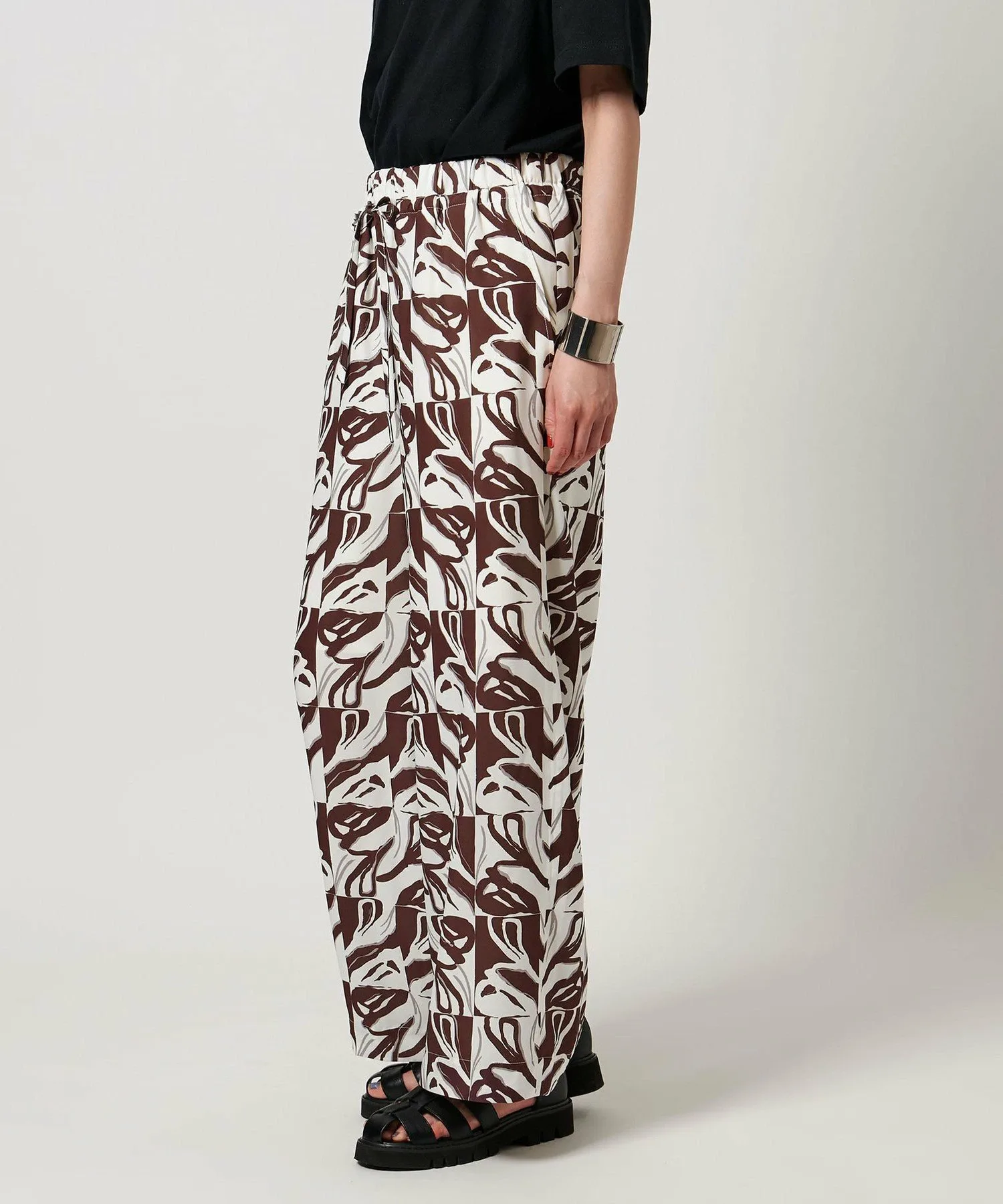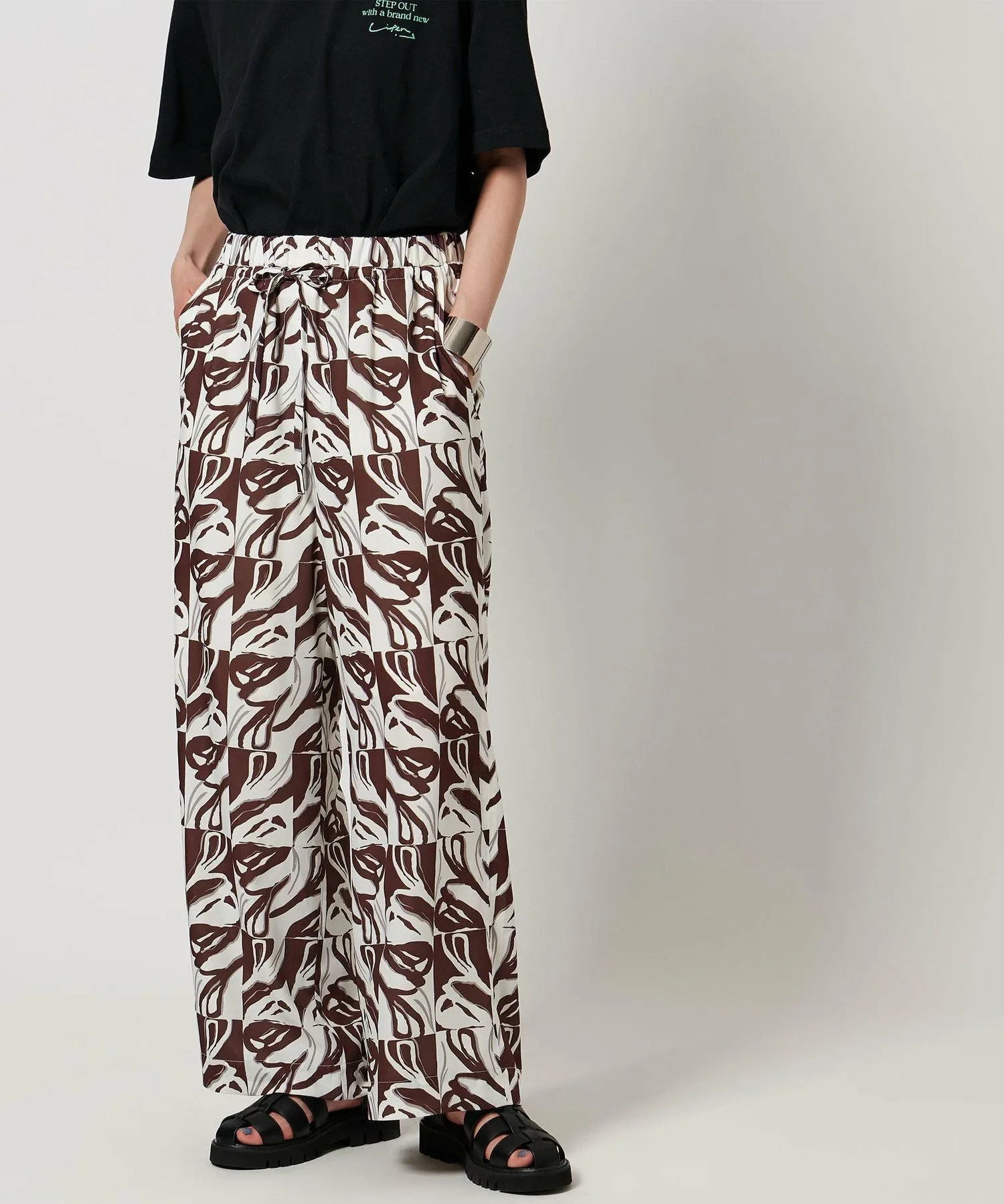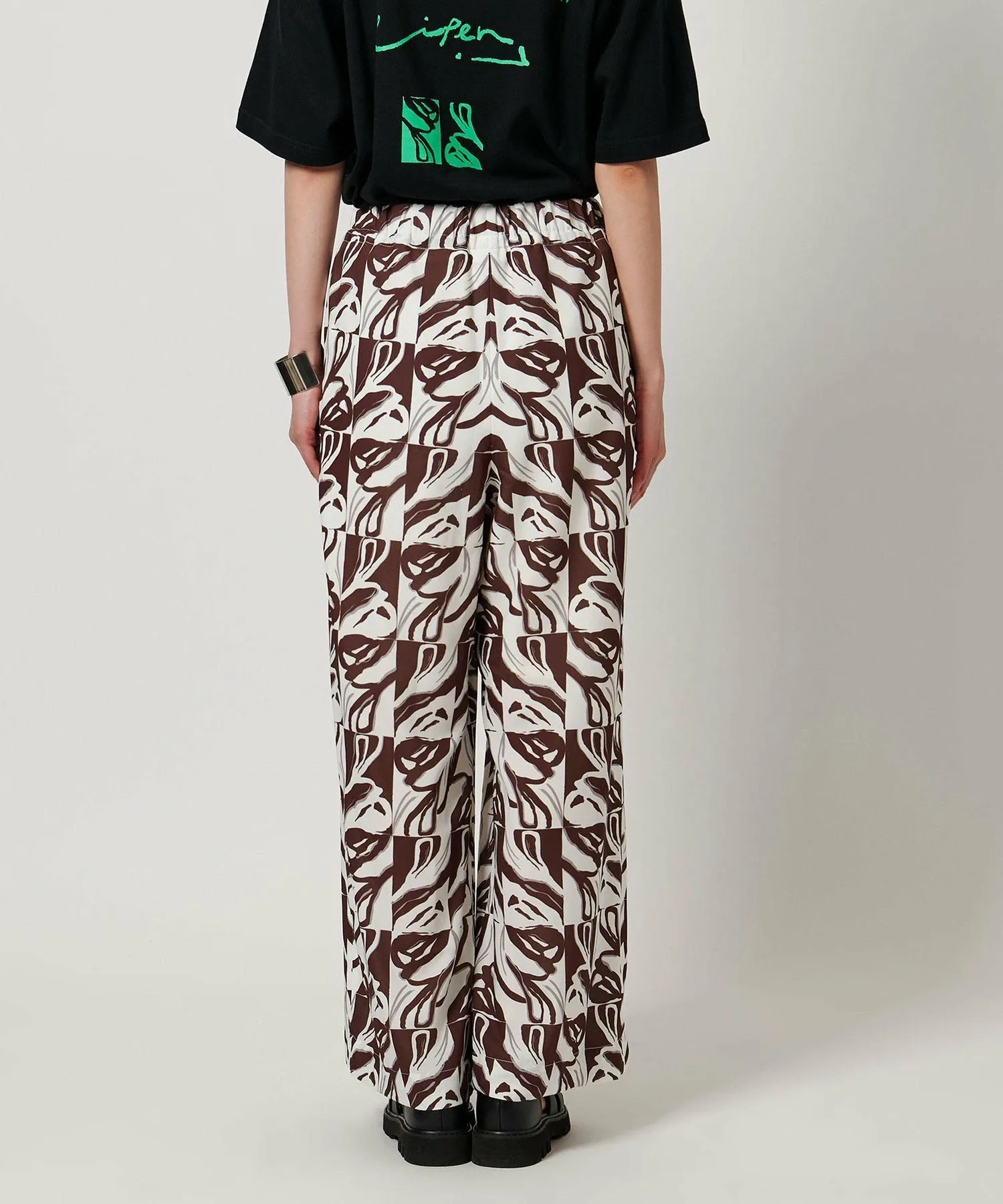Результат сотрудничества графического дизайнера/арт-директора "pinmyself" и CITEN! Представляем удобные брюки с привлекательным принтом. Дизайн Эти удобные брюки украшены принтом по всей поверхности, разработанным эксклюзивно для CITEN на основе концепции "Выйди в мир нового CITEN" — позитивного послания о том, как шагнуть в новую среду вместе с CITEN. Опираясь на три элемента "CITEN", представляющие корни бренда, этот особый графический принт воплощает желание pinmyself, чтобы люди могли выражать свою индивидуальность через новые "перспективы, точки опоры и отправные точки". Каждый мотив в монограмме основан на изображении семени, которое символизирует посев идей и силу, которая из них прорастает, нарисованное от руки с фирменными нюансами pinmyself. Свободный крой и эластичная конструкция делают эти брюки удобным элементом повседневного гардероба.