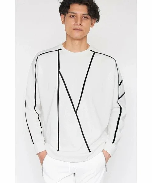Ленты расположены с использованием техники «флэш» с асимметричным геометрическим кроем.
