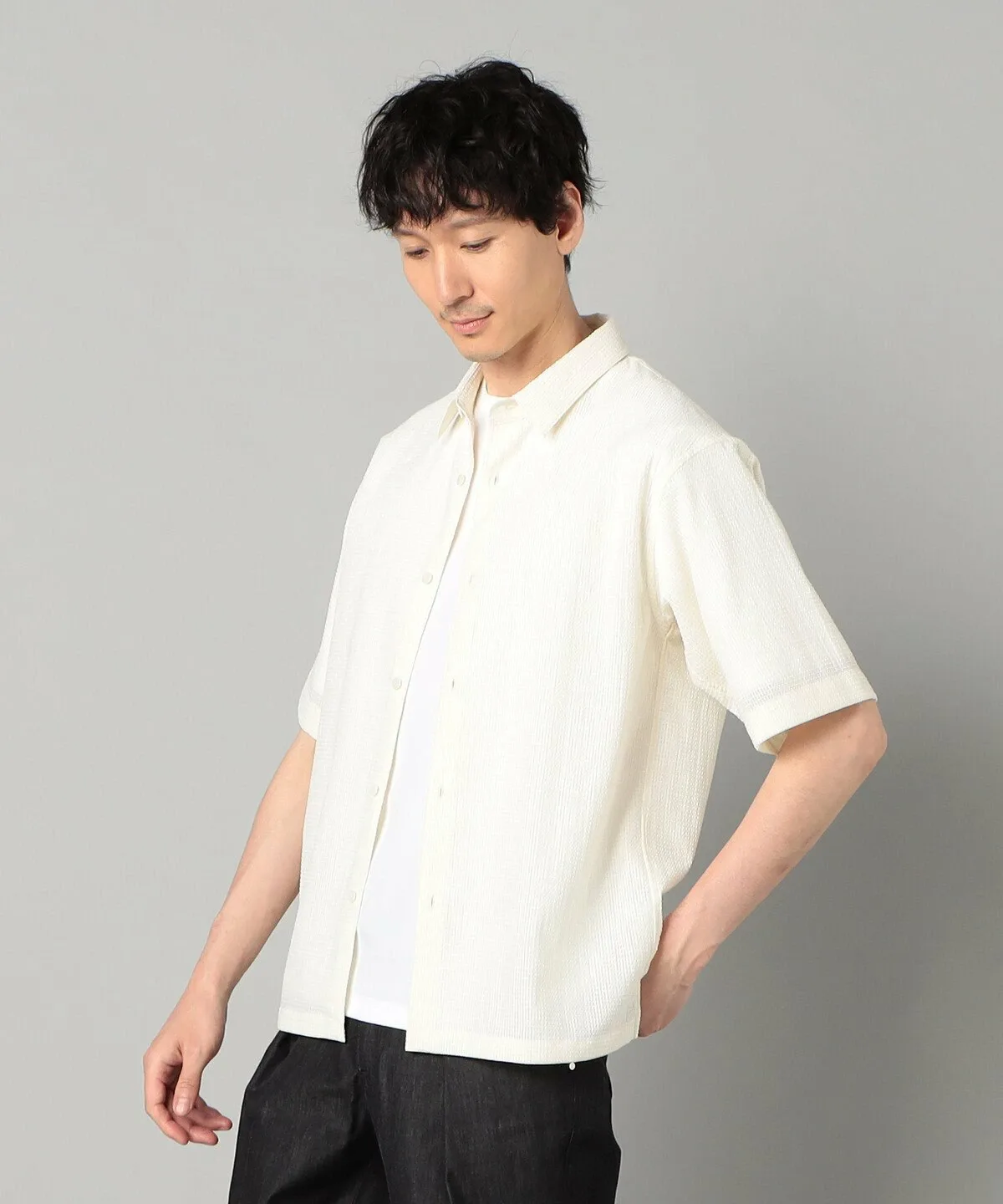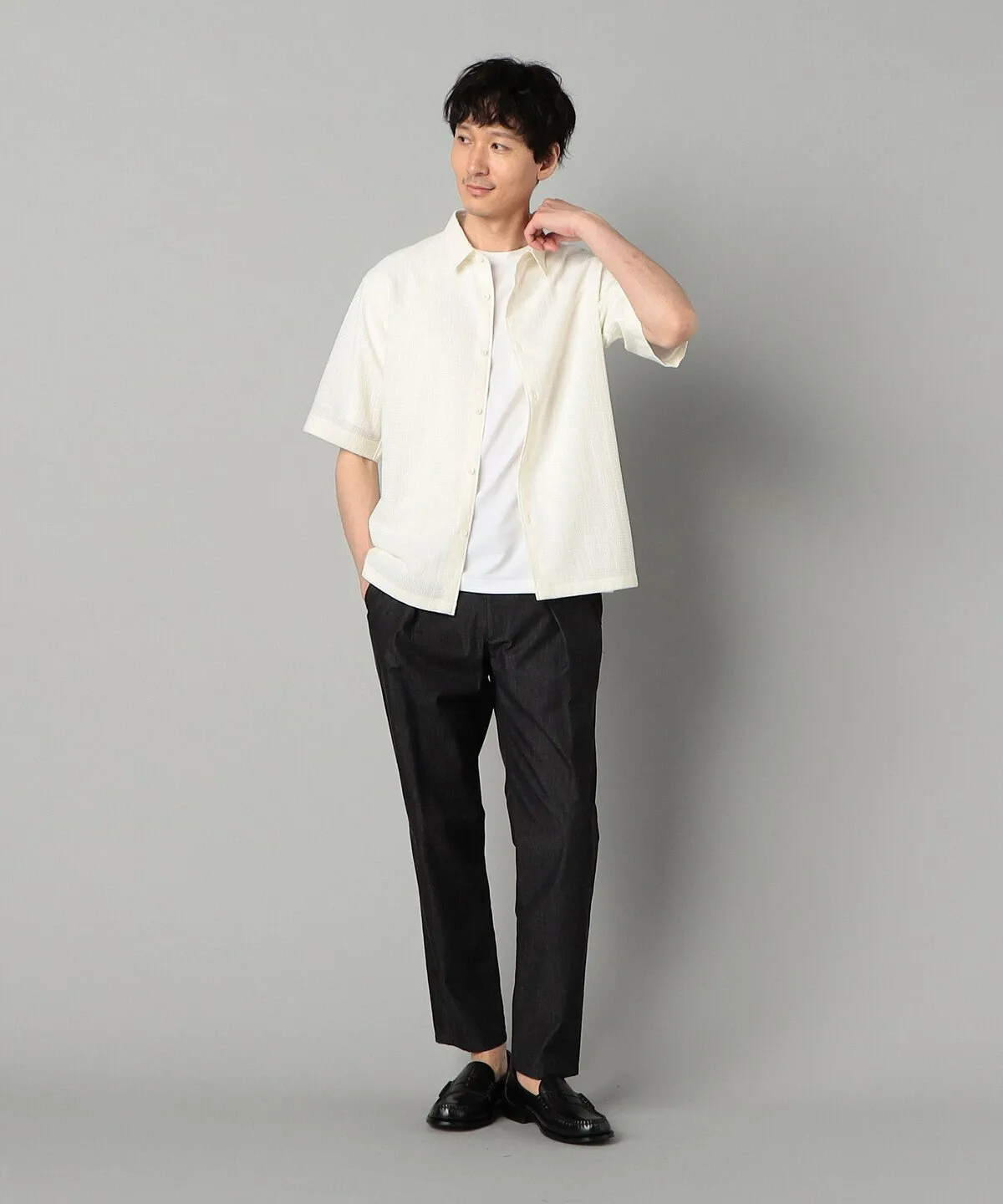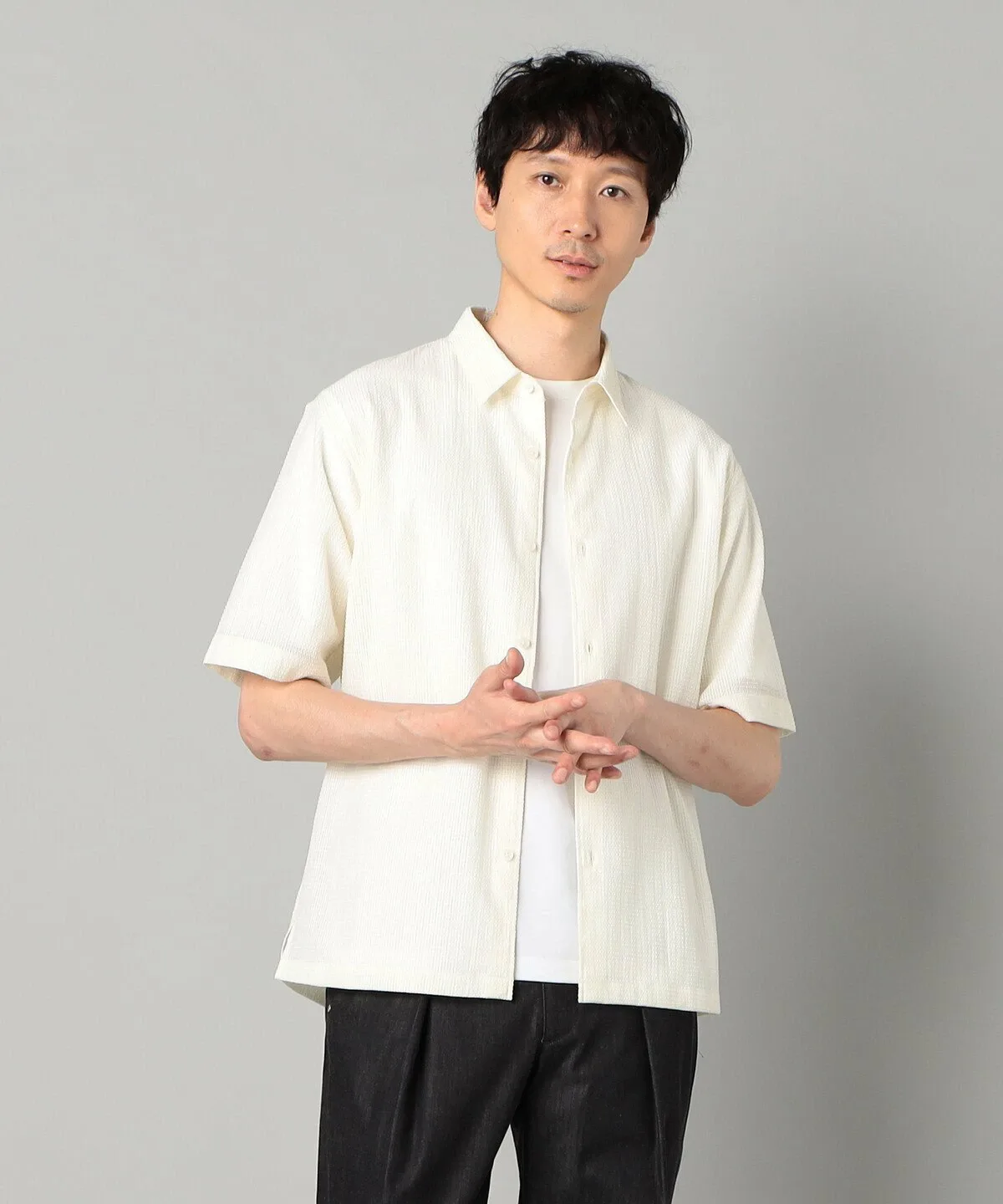 Рубашка с короткими рукавами и обычным воротником, свободного силуэта.