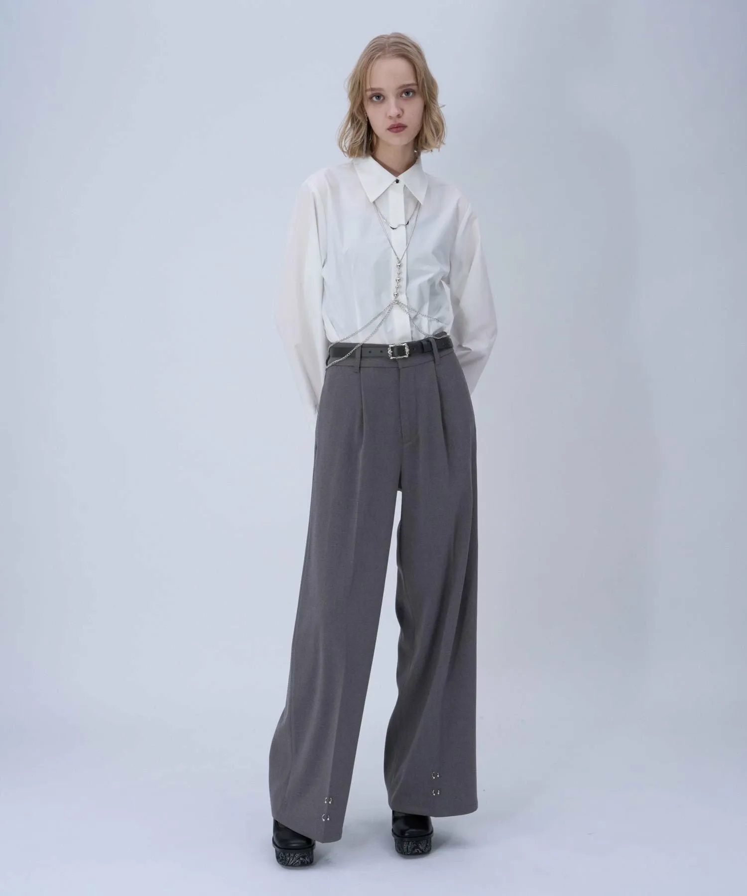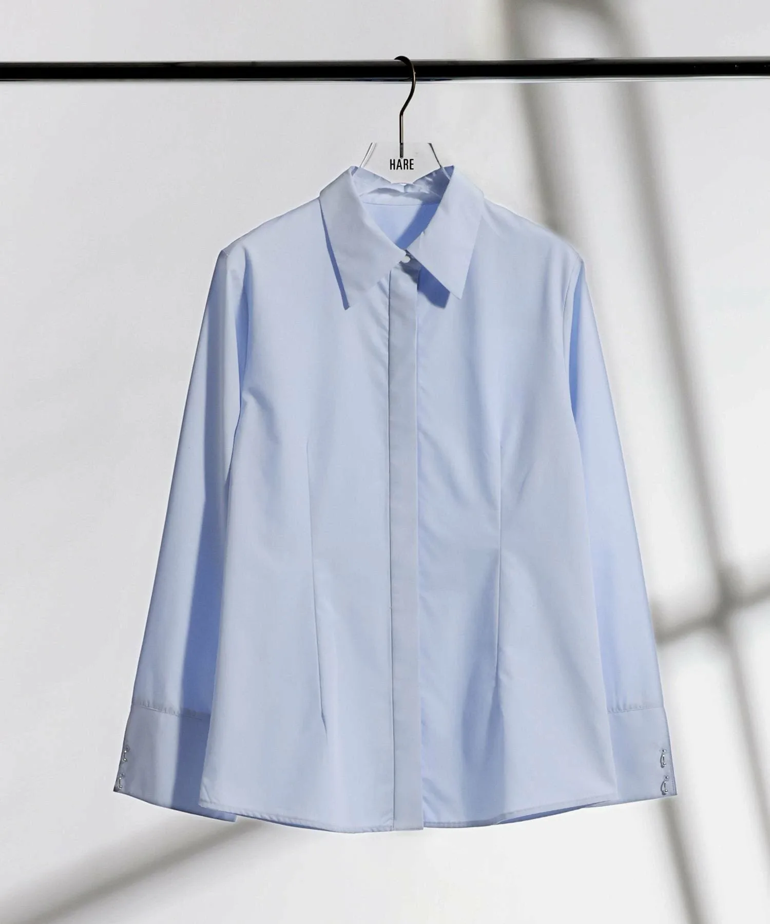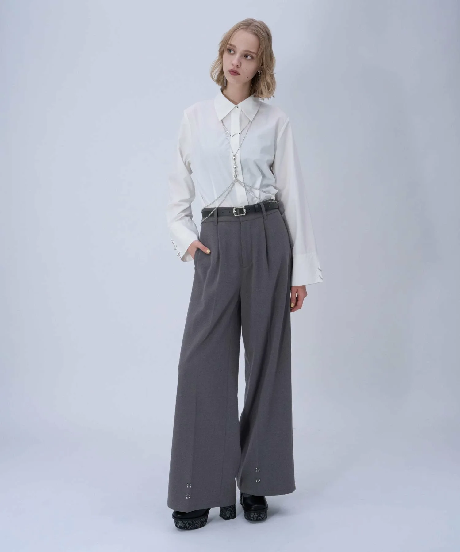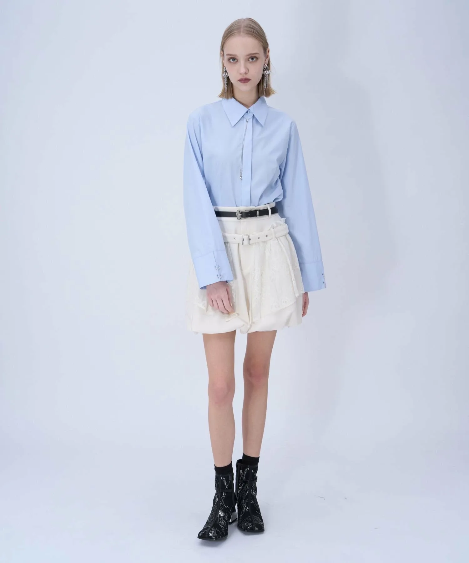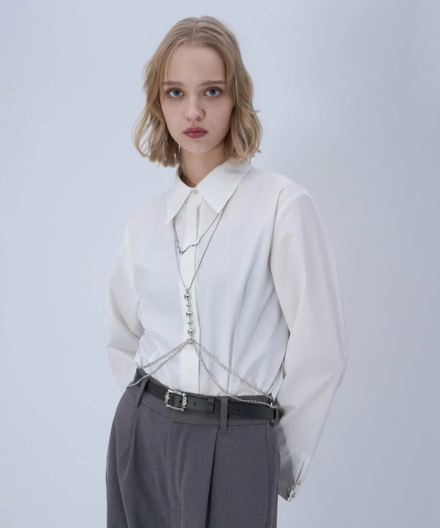 Простая, но модная рубашка с серьгами-гвоздиками на рукавах в качестве изюминки.
