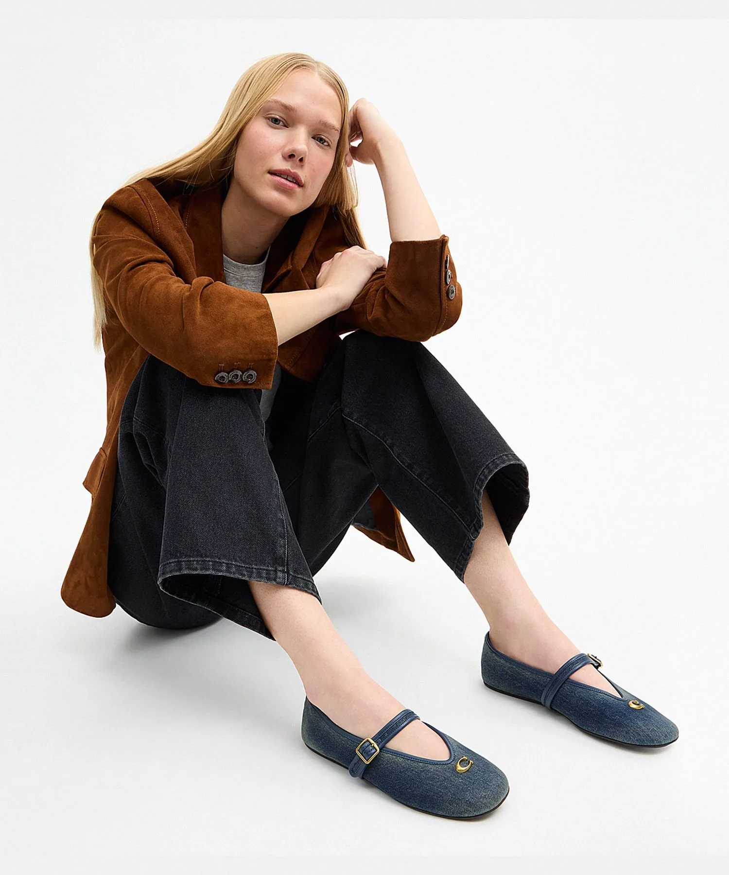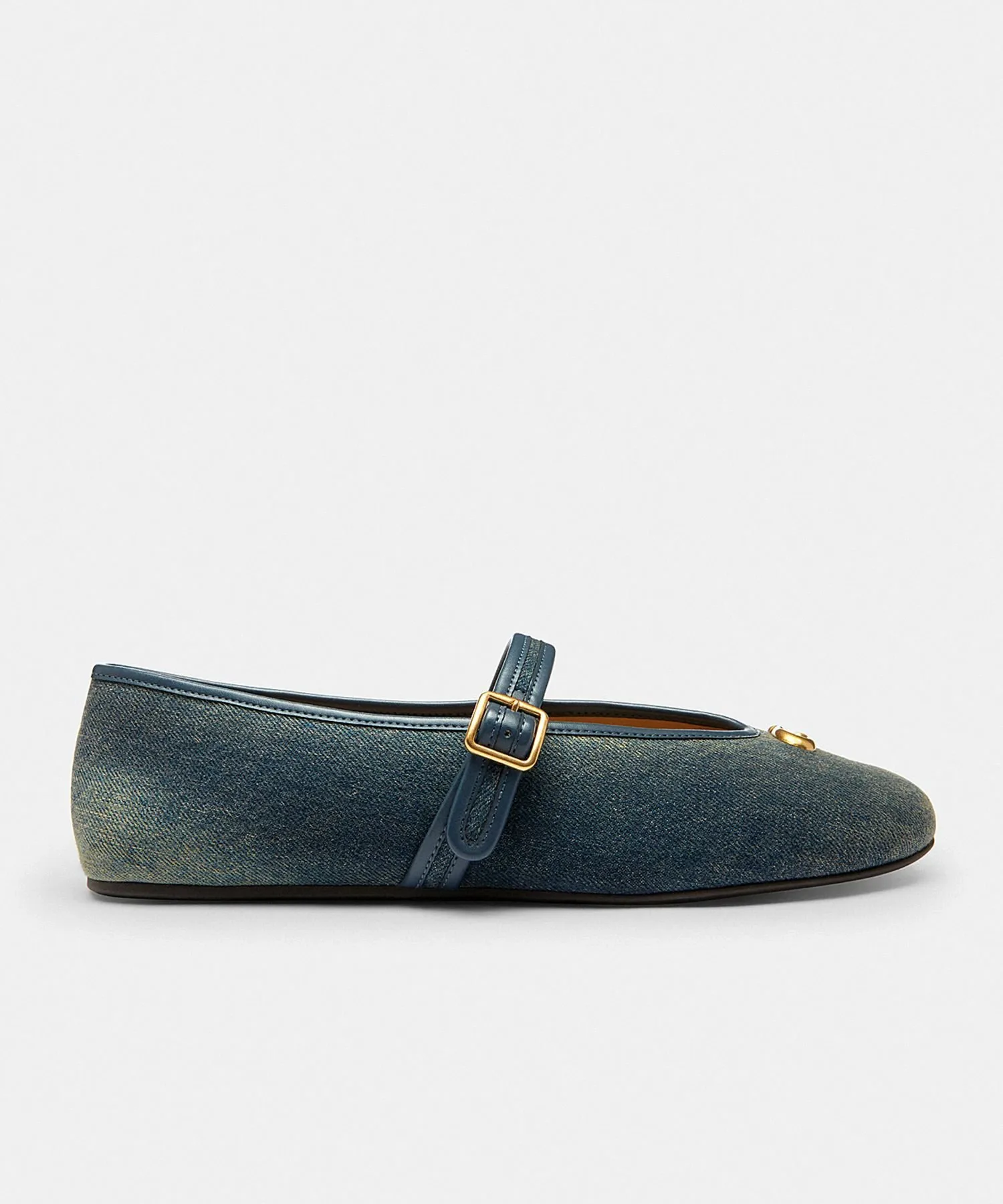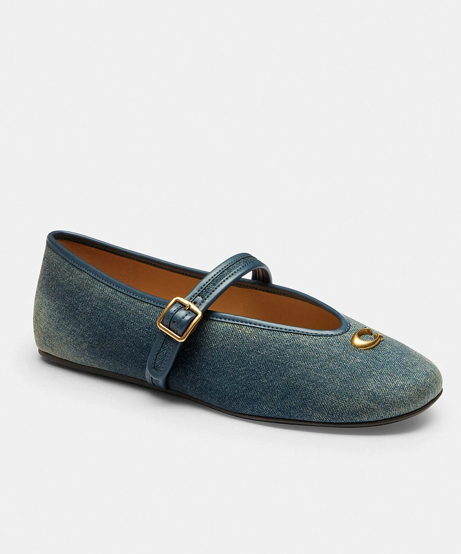 Туфли Мэри Джейн — это классические туфли с ремешками, изготовленные из смеси денима и синтетической кожи.