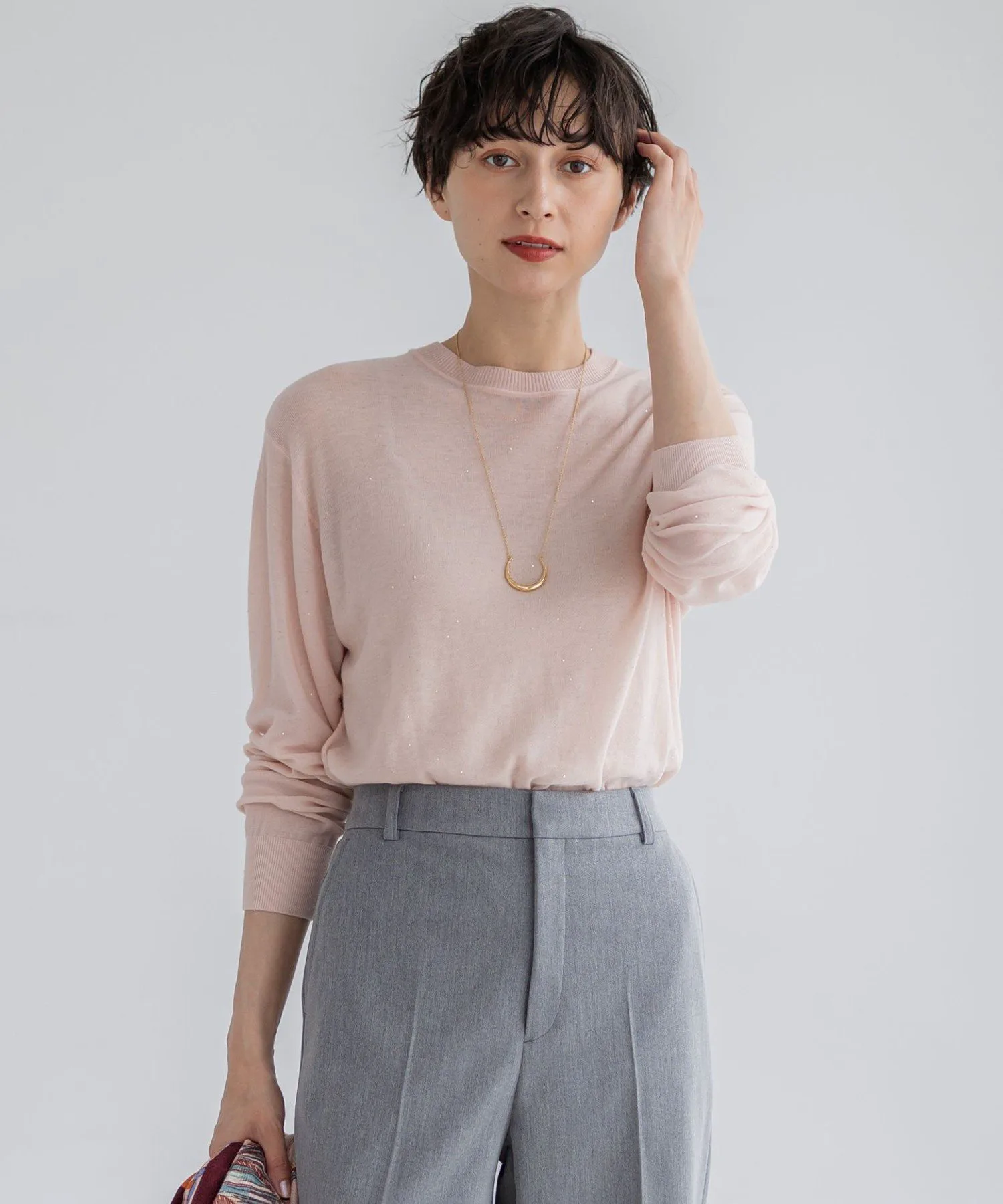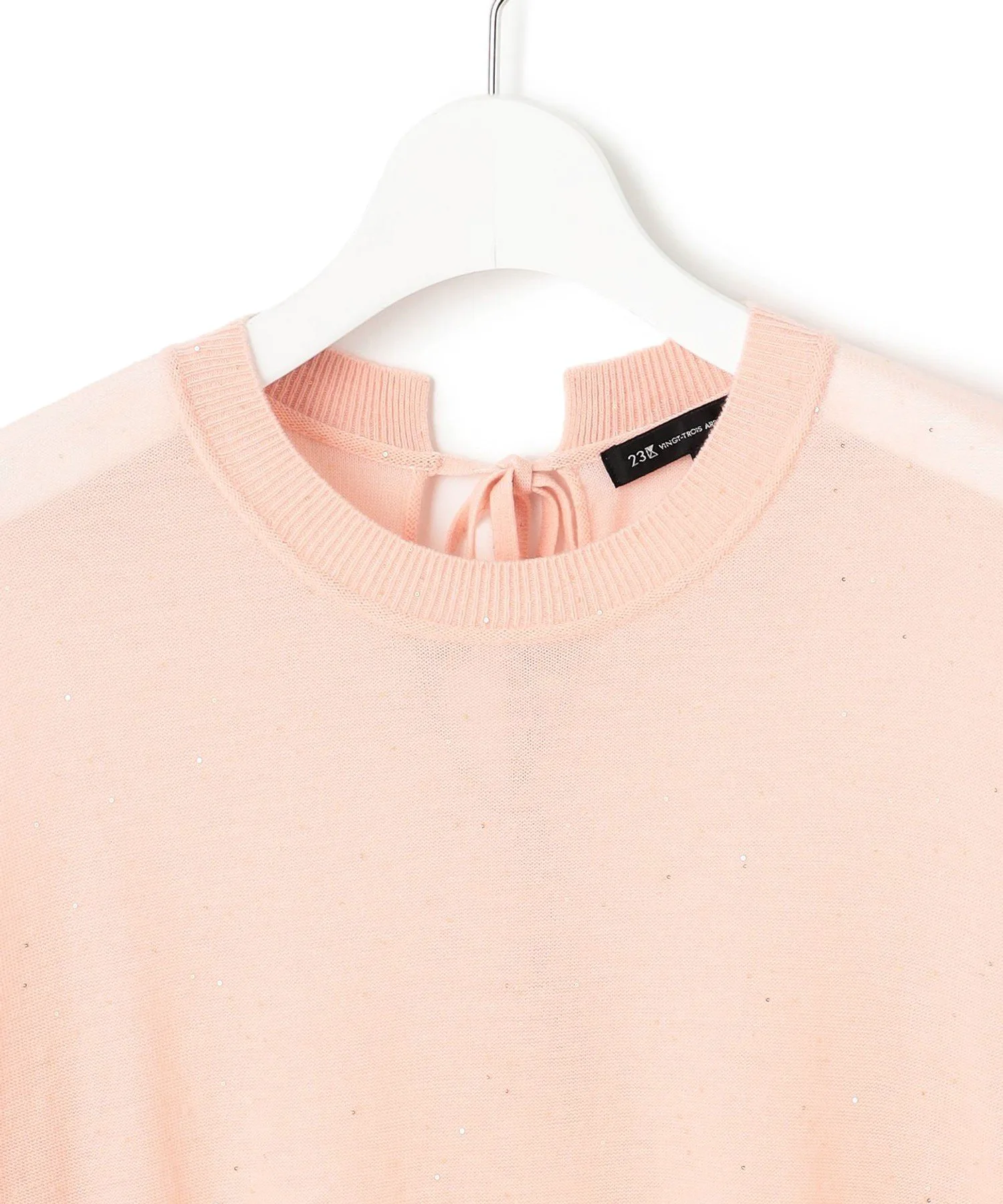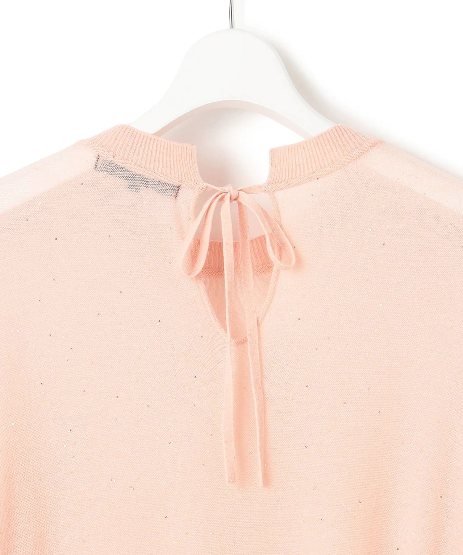 Это трикотажное изделие создает нежный и женственный образ, максимально подчеркивая красоту материала. Лента из того же материала, что и лиф, добавляет изюминку в стиль спинки. Мягкий и деликатный материал обеспечивает свободную посадку, гарантируя комфорт. Ребристый низ заканчивается на талии, что позволяет создать изысканный образ с приспущенным подолом. Это изделие легко сочетается с различными вариантами низа, от брюк для аккуратного образа до юбки для более женственного образа, а его элегантное мерцание украсит любой наряд. Доступно в двух цветах: черном (#005) с эффектными пайетками и нежном, элегантном розово-бежевом (#033).