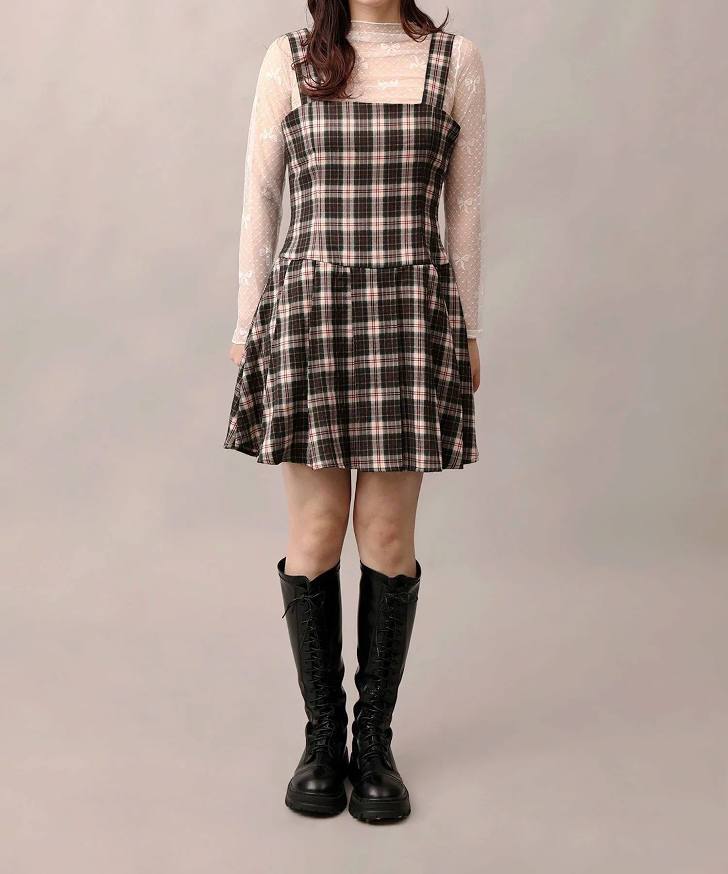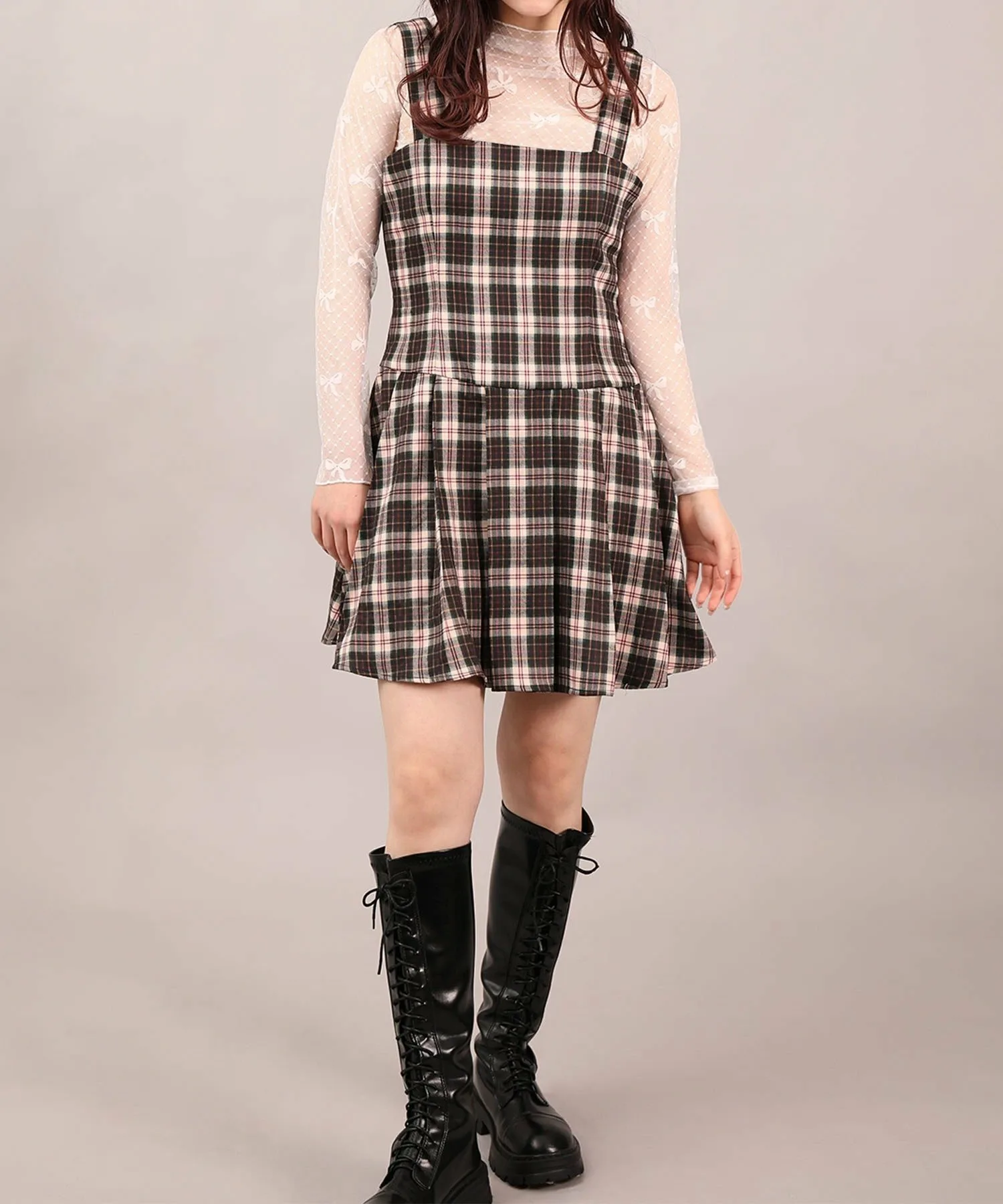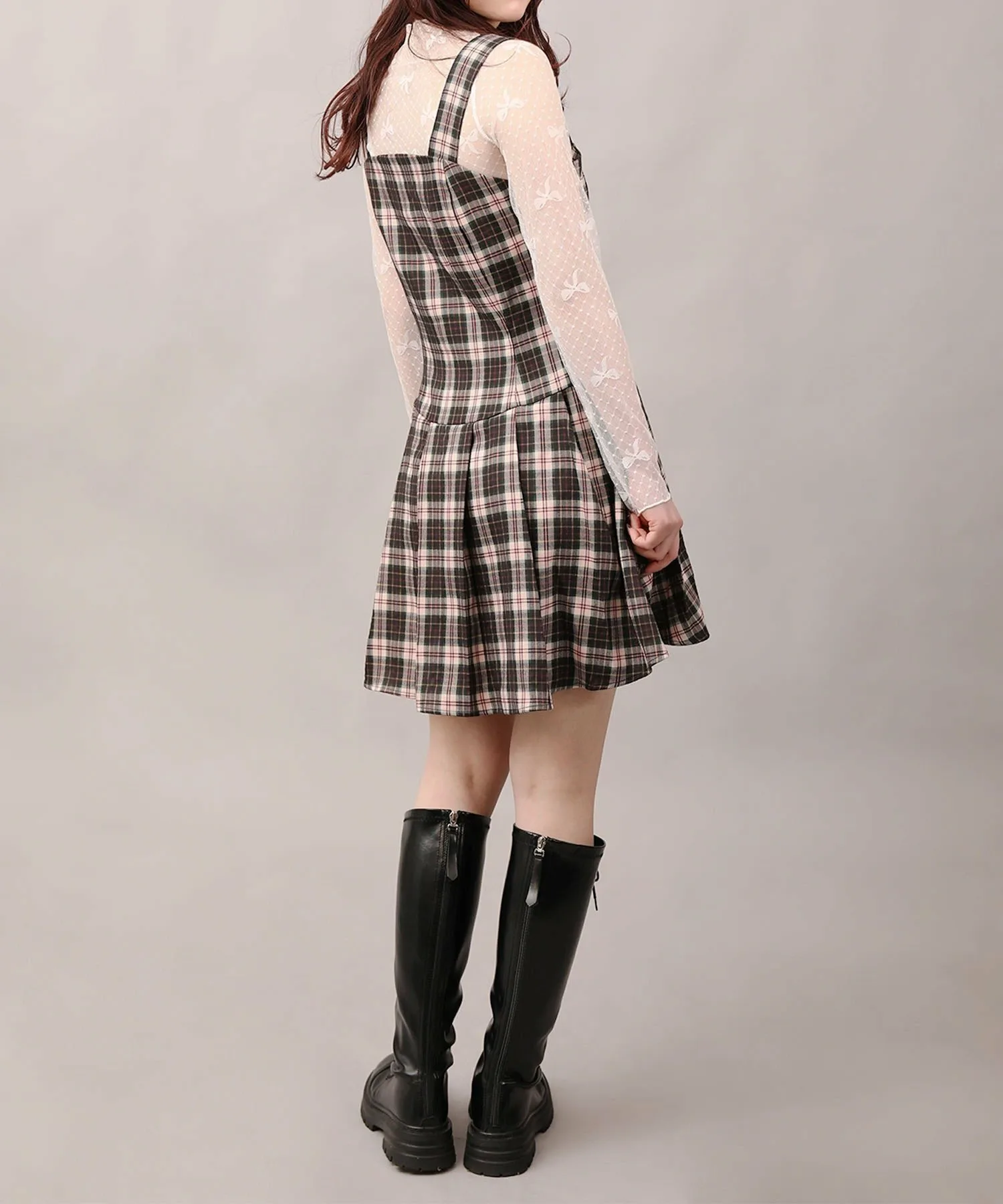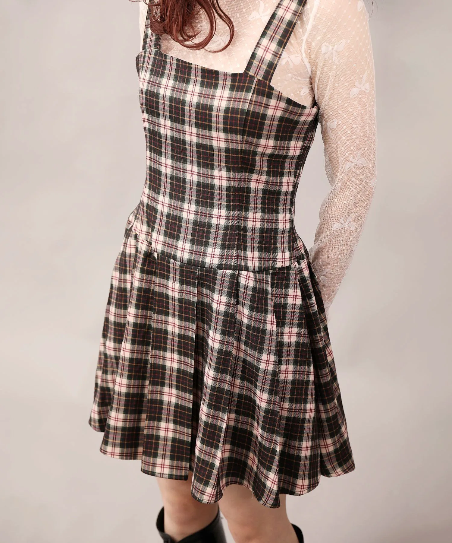Милый ретро-стиль 2000 года? Сарафан из тюля с лентами и клетчатым узором, который можно сочетать с другими вещами.