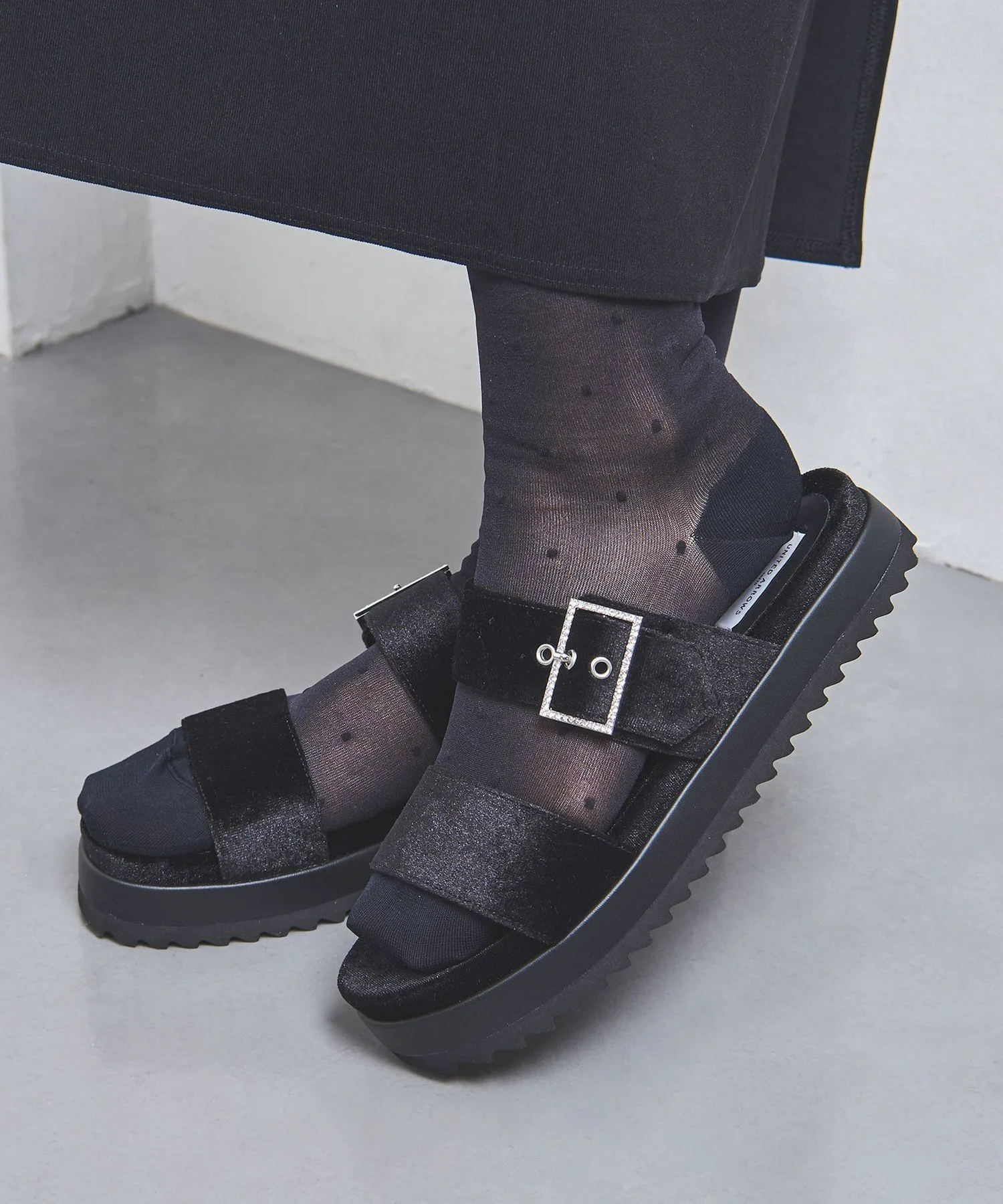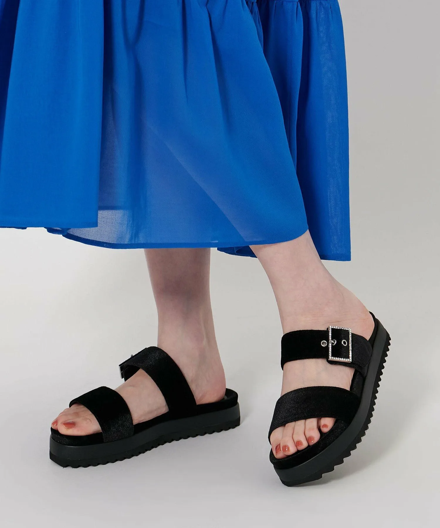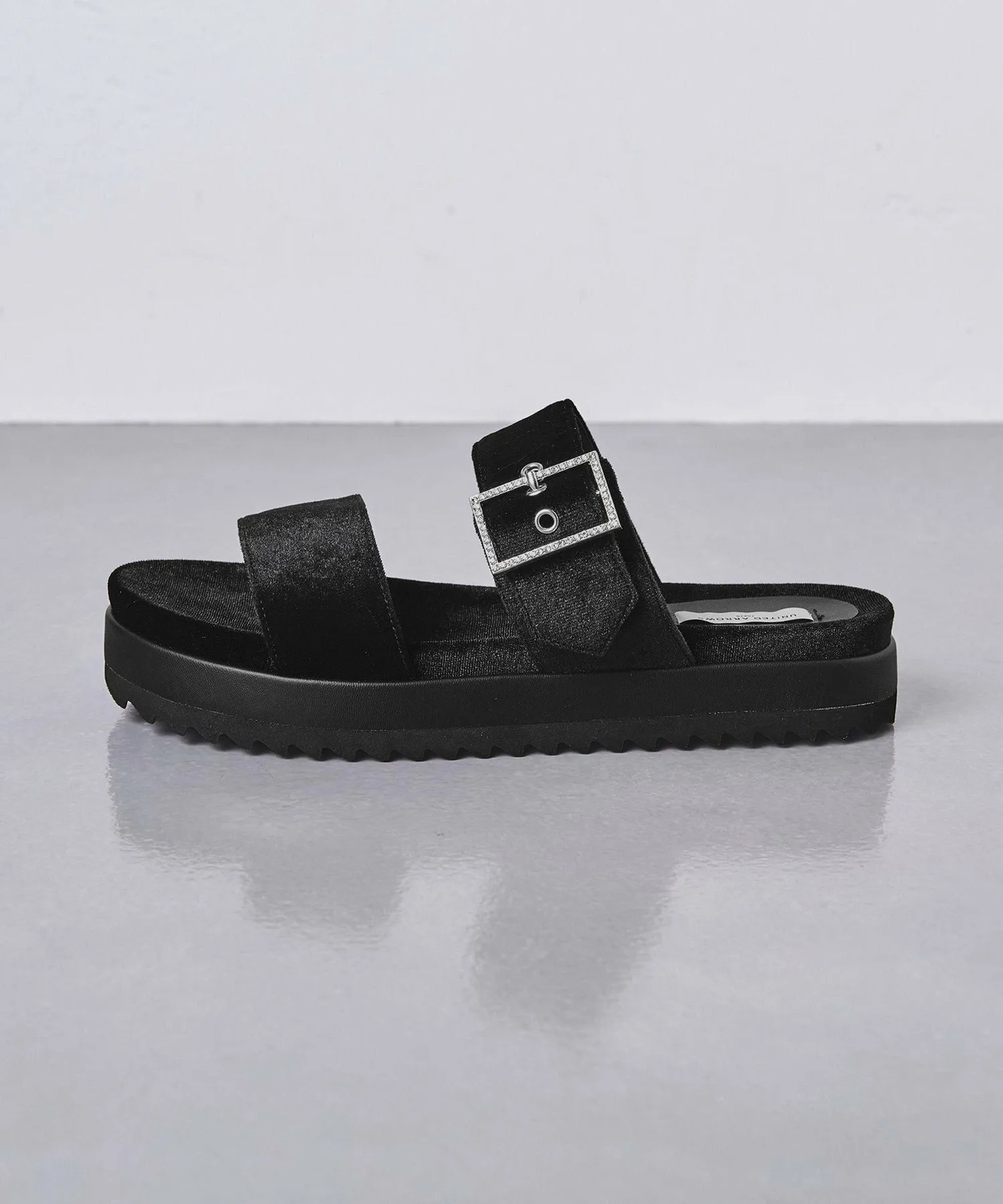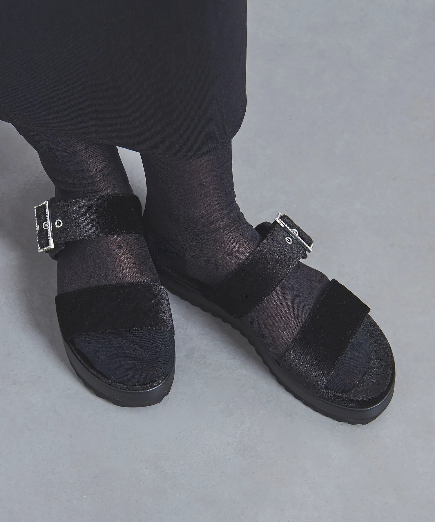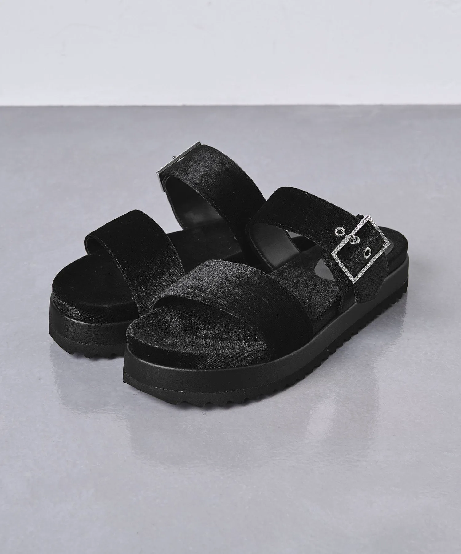 Эти сандалии с ворсистой поверхностью создают элегантное впечатление и подходят для ношения круглый год. Изящная пряжка, украшенная драгоценными камнями, добавляет утонченности. Пряжка регулируется.