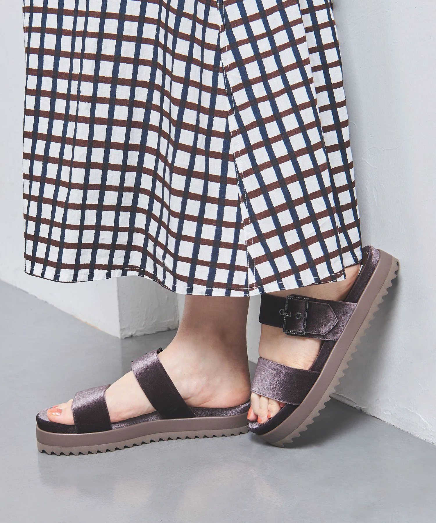 Эти сандалии с ворсистой поверхностью создают элегантное впечатление и подходят для ношения круглый год. Изящная пряжка, украшенная драгоценными камнями, добавляет утонченности. Пряжка регулируется.