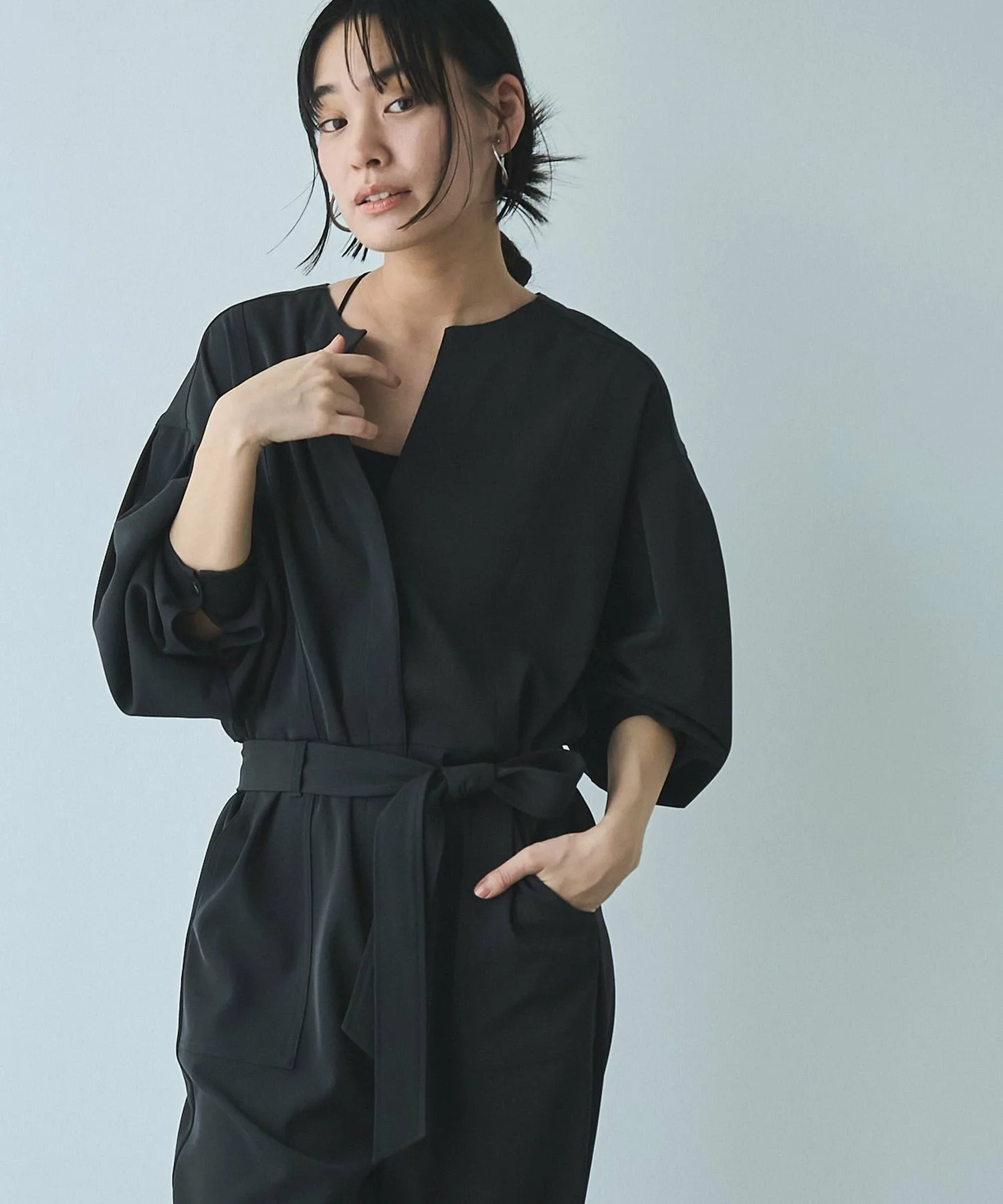 В дизайне преобладают повседневные элементы, такие как объемные заправленные рукава, а также вставки и карманы в стиле милитари.
