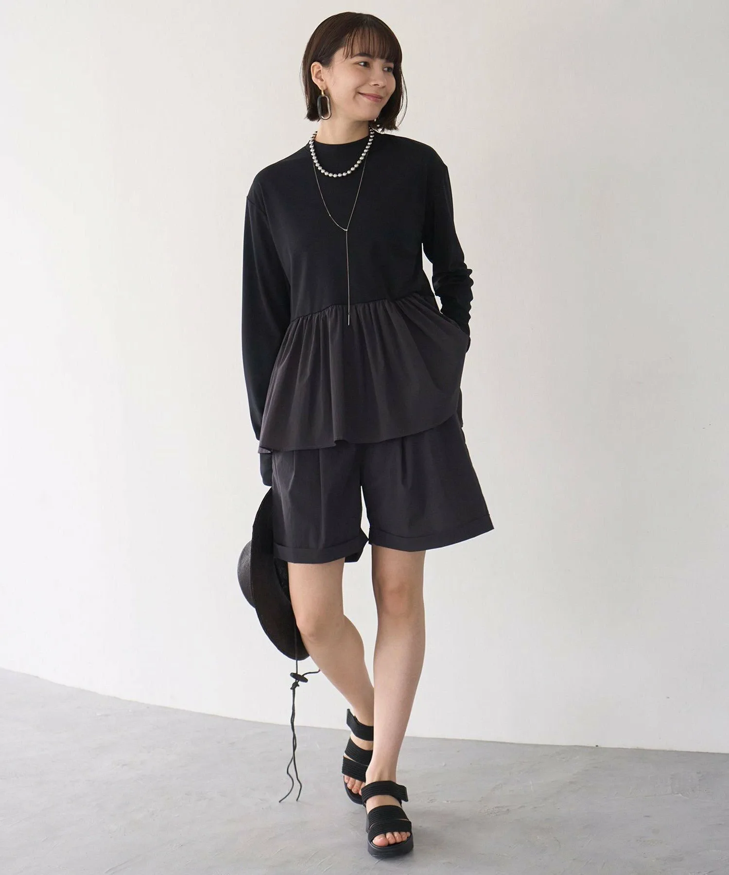 Дизайн: Эта вещь идеально подходит для летних прогулок, где важны ультрафиолетовые лучи, а также для отдыха на воде. Длинные рукава закрывают тыльную сторону ладоней. Слегка высокий воротник обеспечивает небольшую защиту шеи. Застежка-молния сзади, которую иногда трудно открывать и закрывать, имеет ленточную застежку для удобства надевания и снимания. Объемная баска также обеспечивает защиту бедер, что делает эту вещь универсальной. Ее также можно носить в комплекте с шортами из того же материала, что и баска. Цвет баски черного цвета (005) — угольно-серый. Песочный (043) и кремовый (001) цвета совпадают с цветом рашгарда.