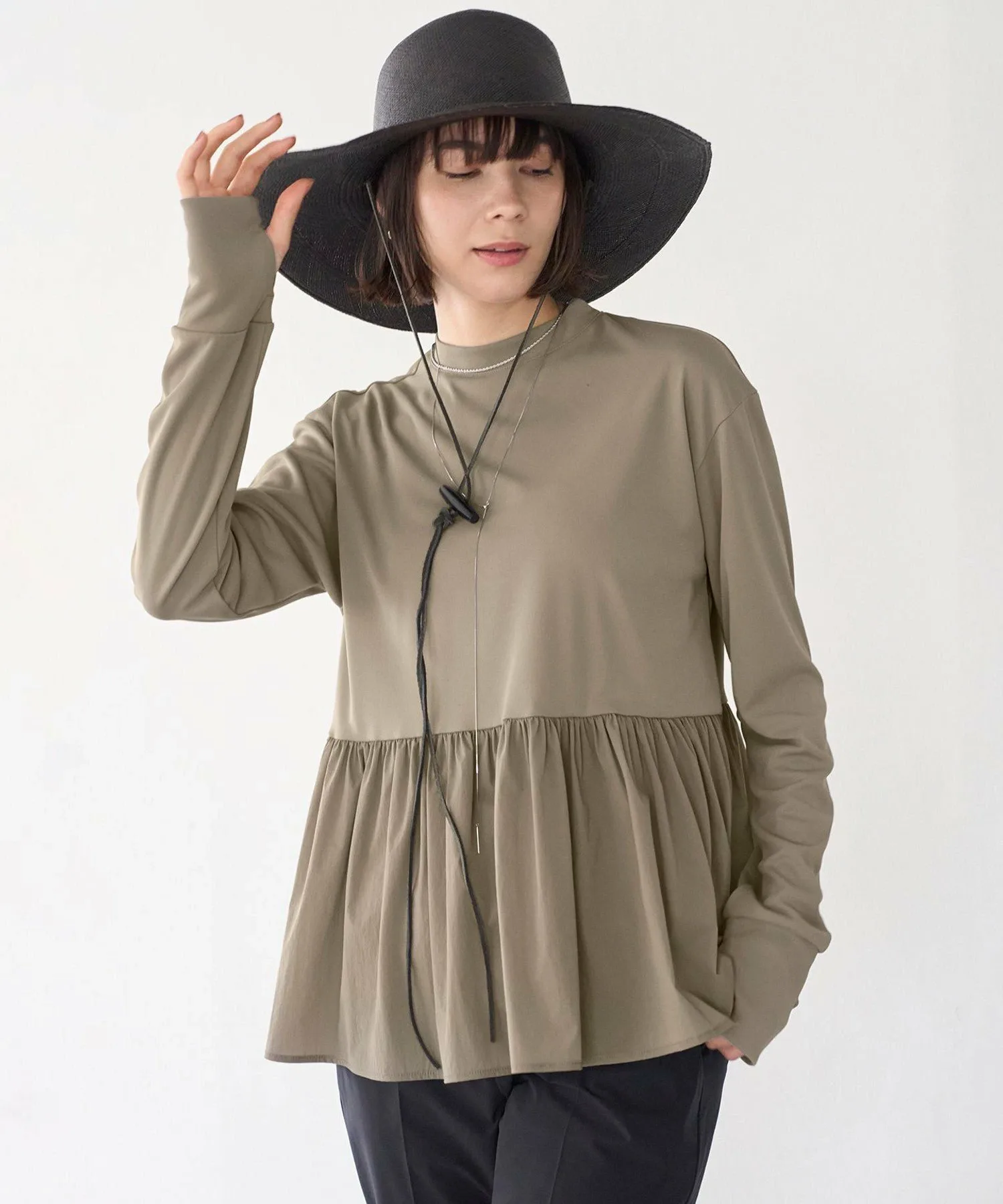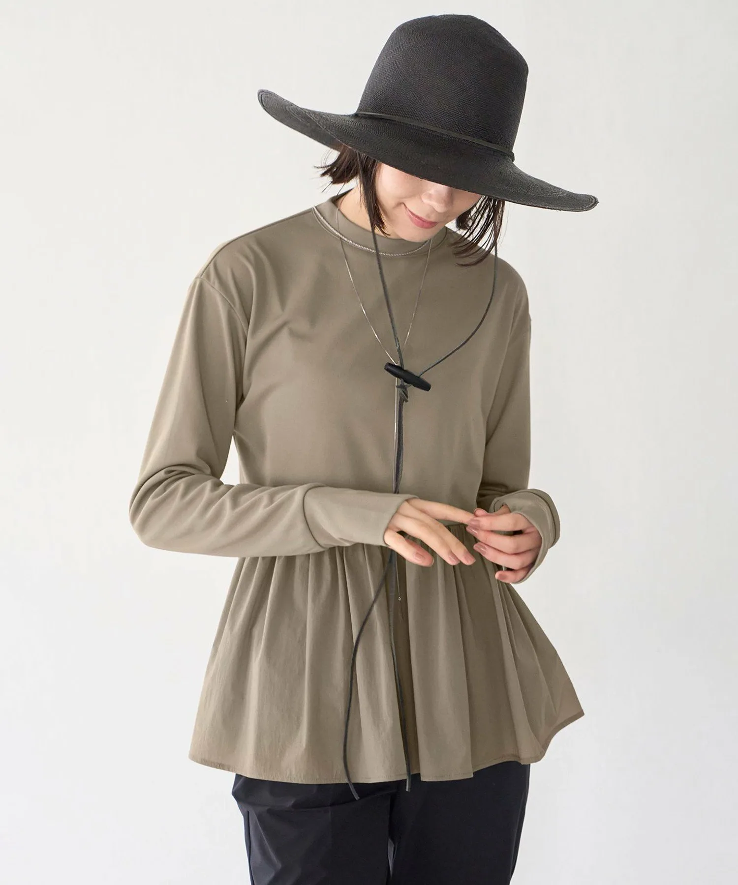 Материал: Изготовлено из специальной ткани под названием SPF. Этот элегантный материал обладает естественной эластичностью и легким блеском. Его также можно носить на пляже или у бассейна. Этот простой в уходе материал устойчив к смятию (соответствует стандартам устойчивости к воздействию сильно хлорированной воды), что делает его идеальным для ношения в летние месяцы. Баска изготовлена из многофункционального материала, невероятно легкого и эластичного. Она выполнена из матового нейлона с сухим на ощупь плетением мини-рипстоп, обеспечивающим превосходную воздухопроницаемость.