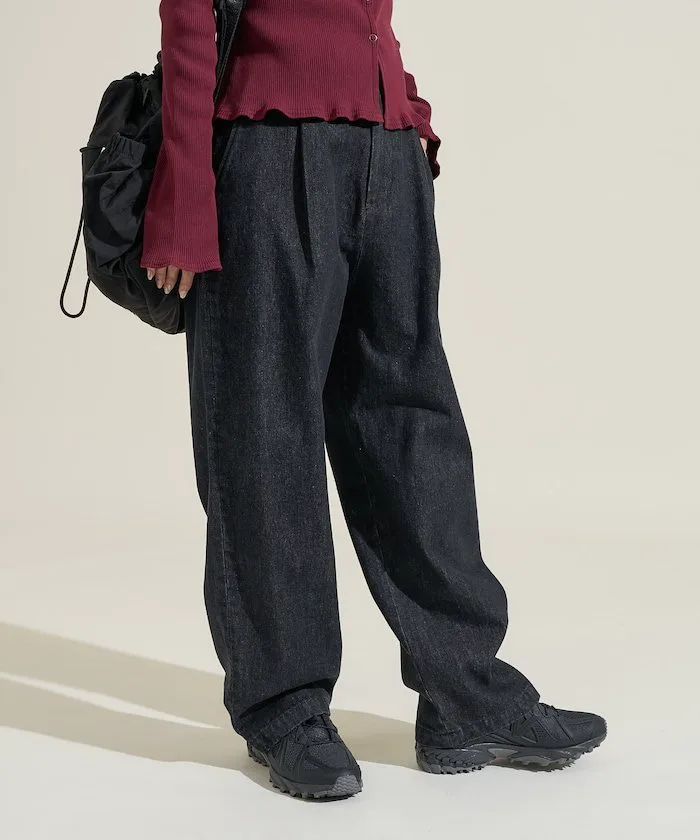 ●Джинсовые брюки с широким силуэтом, которые выглядят так же аккуратно, как брюки