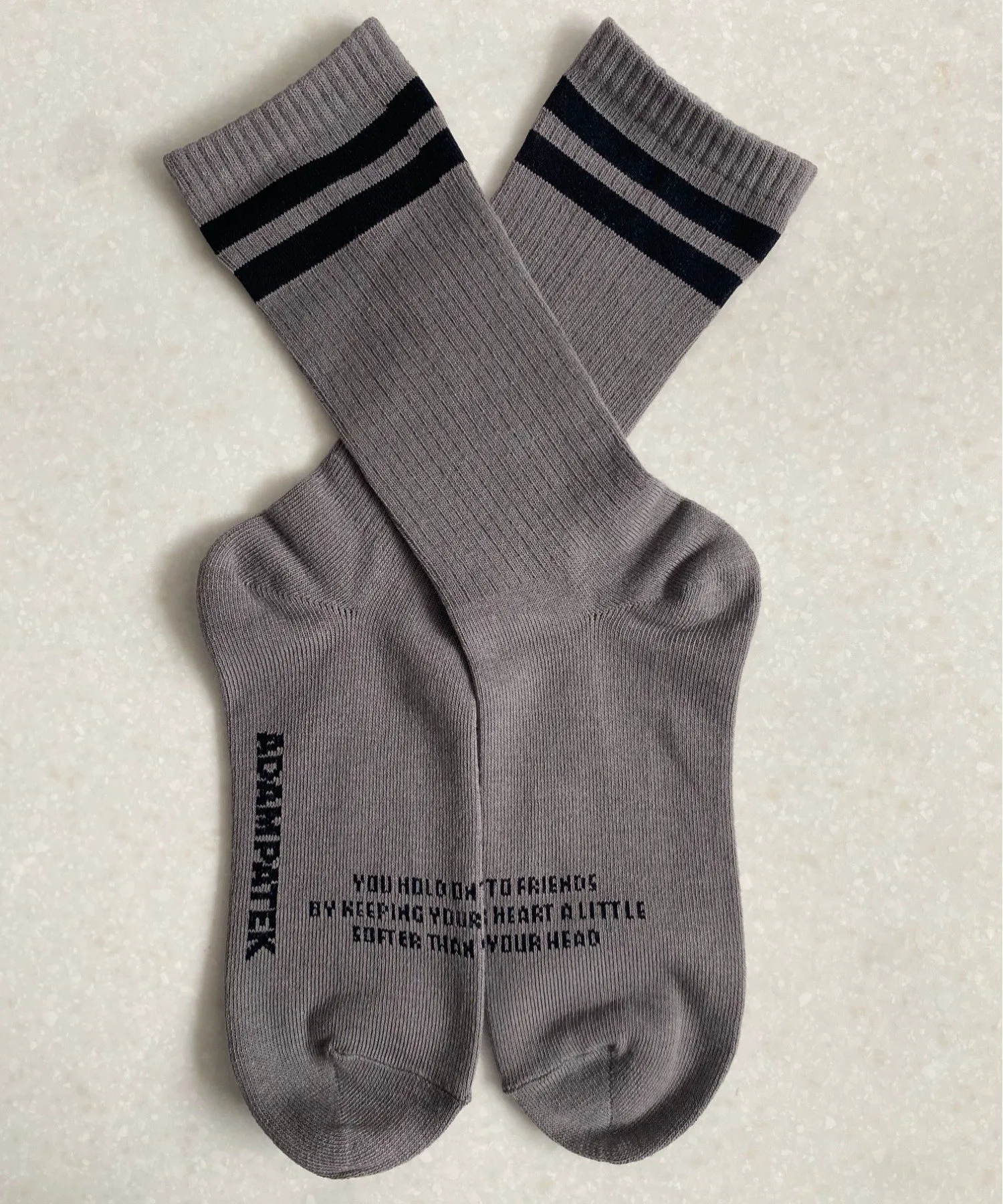Просто сочетайте эти привлекательные носки с надписями с парой, которая подчеркнет ваш повседневный стиль.