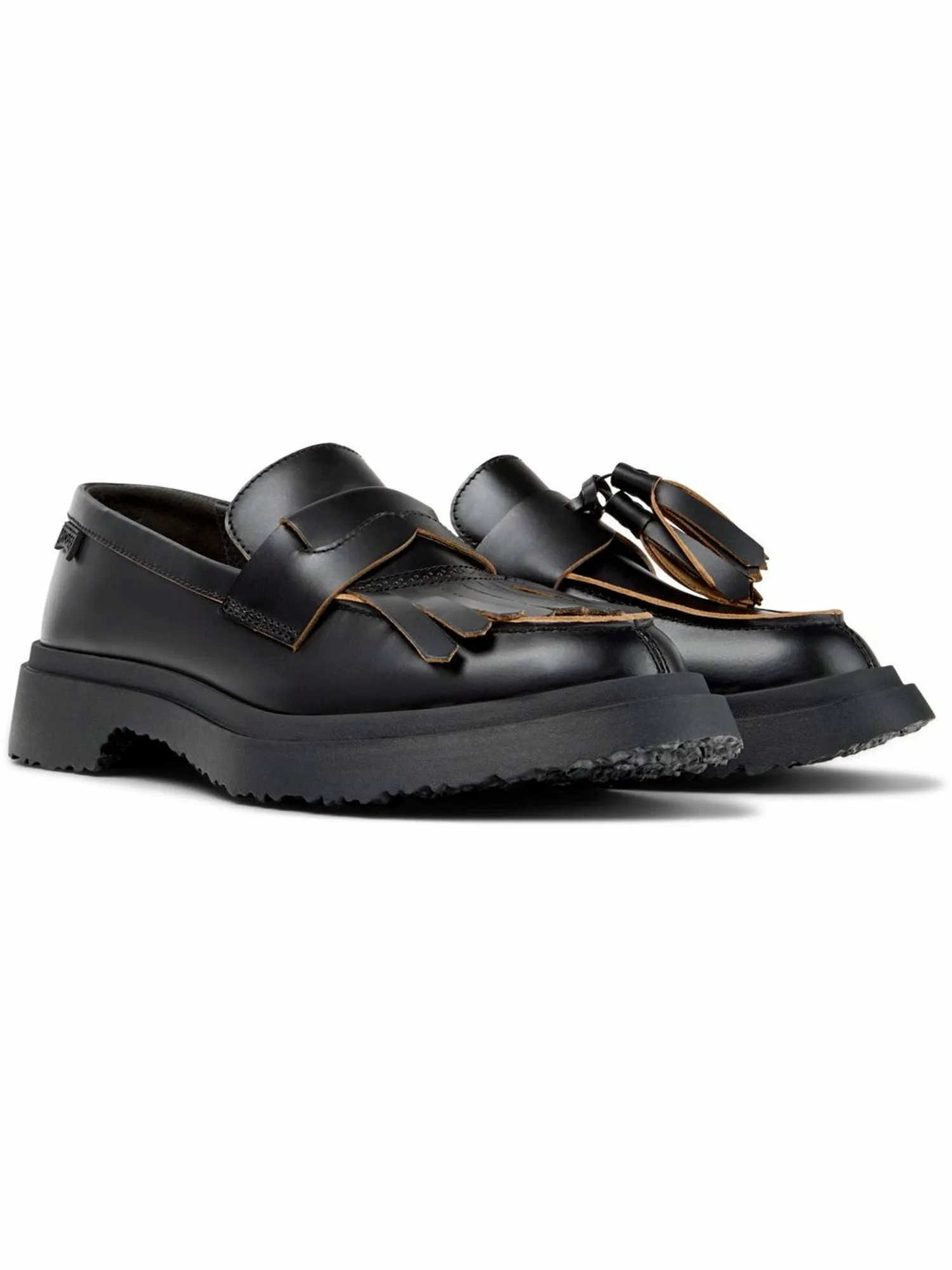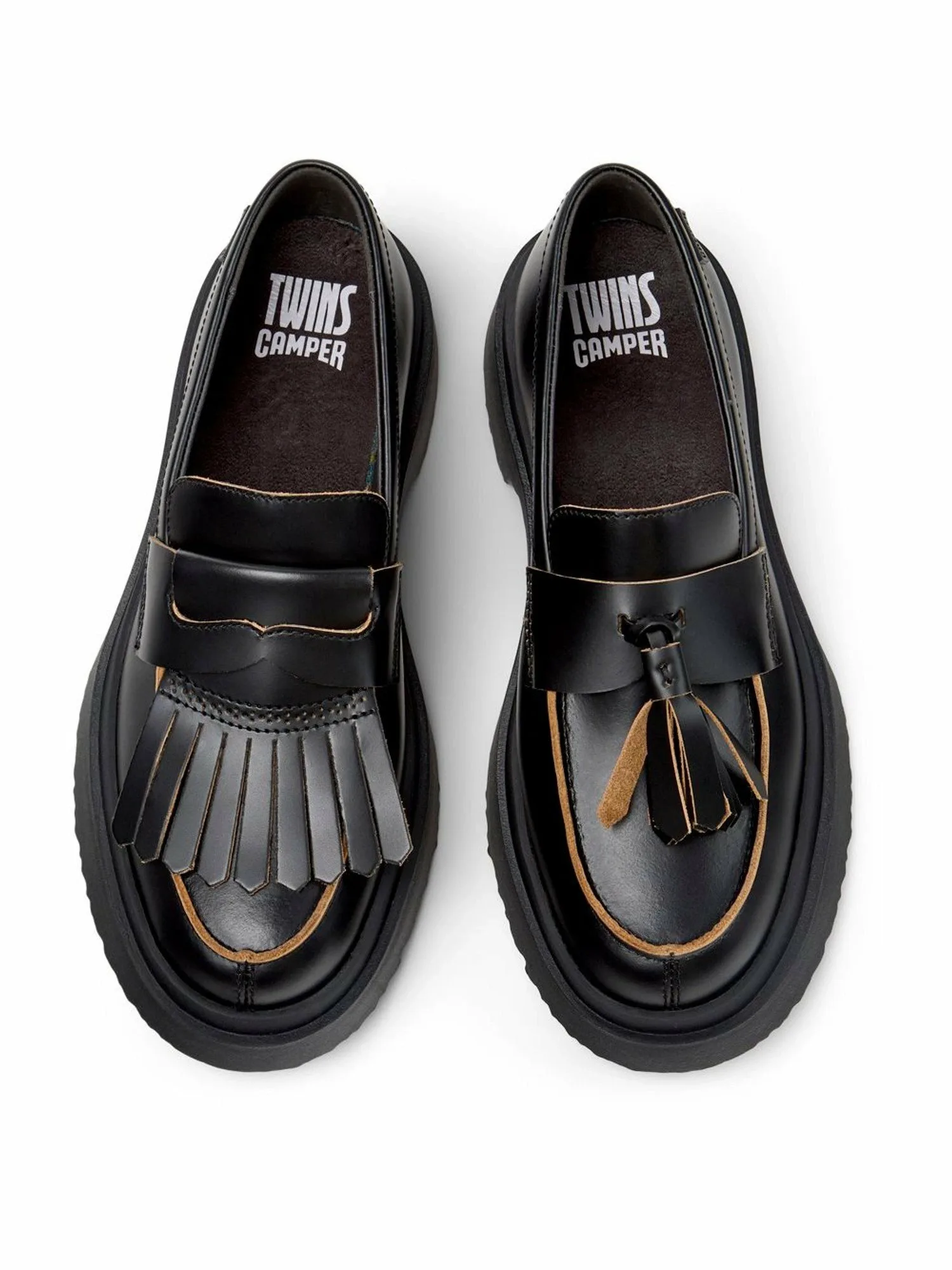 Представленная в 1988 году, серия "TWINS" — это то, чему Camper продолжает удивлять инновационными дизайнами, основанными на концепции, что "правая и левая нога обладают своим уникальным характером, но вместе они образуют идеальную пару". Эта культовая концепция, с уникальными дизайнами, появляющимися каждый сезон, является визитной карточкой Camper. Версия Twins модели "Walden", известная своими игривыми деталями, отличается асимметричными украшениями, создающими игривый и элегантный дизайн. Стежка на правой ноге и кисточка на левой делают эти аутентичные лоферы особенным изделием, добавляющим фирменный юмор Camper.