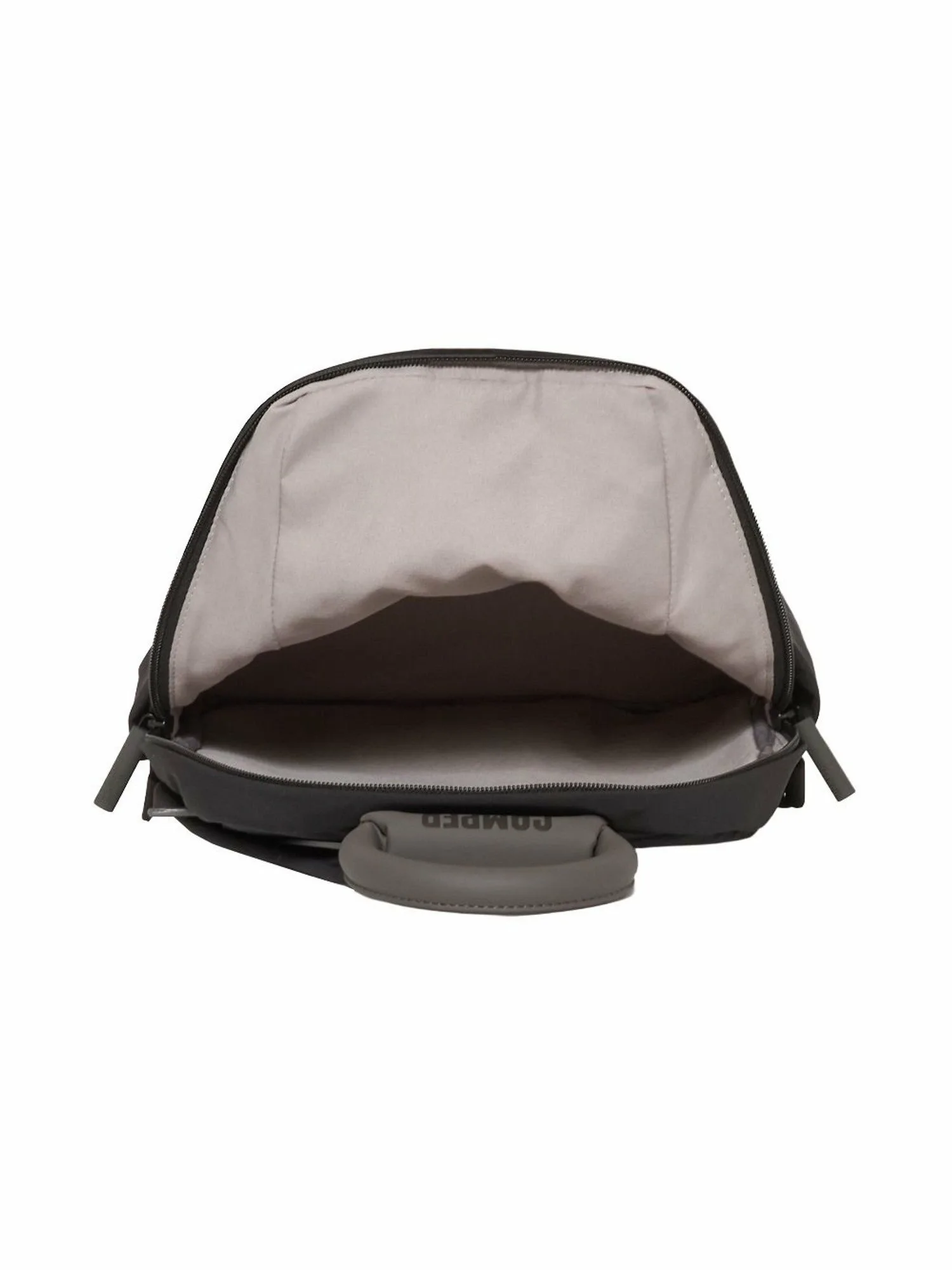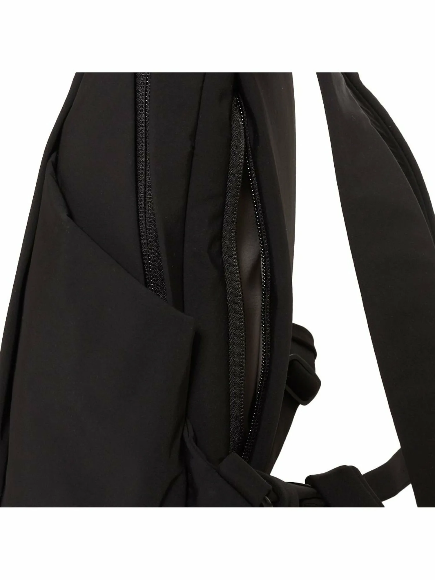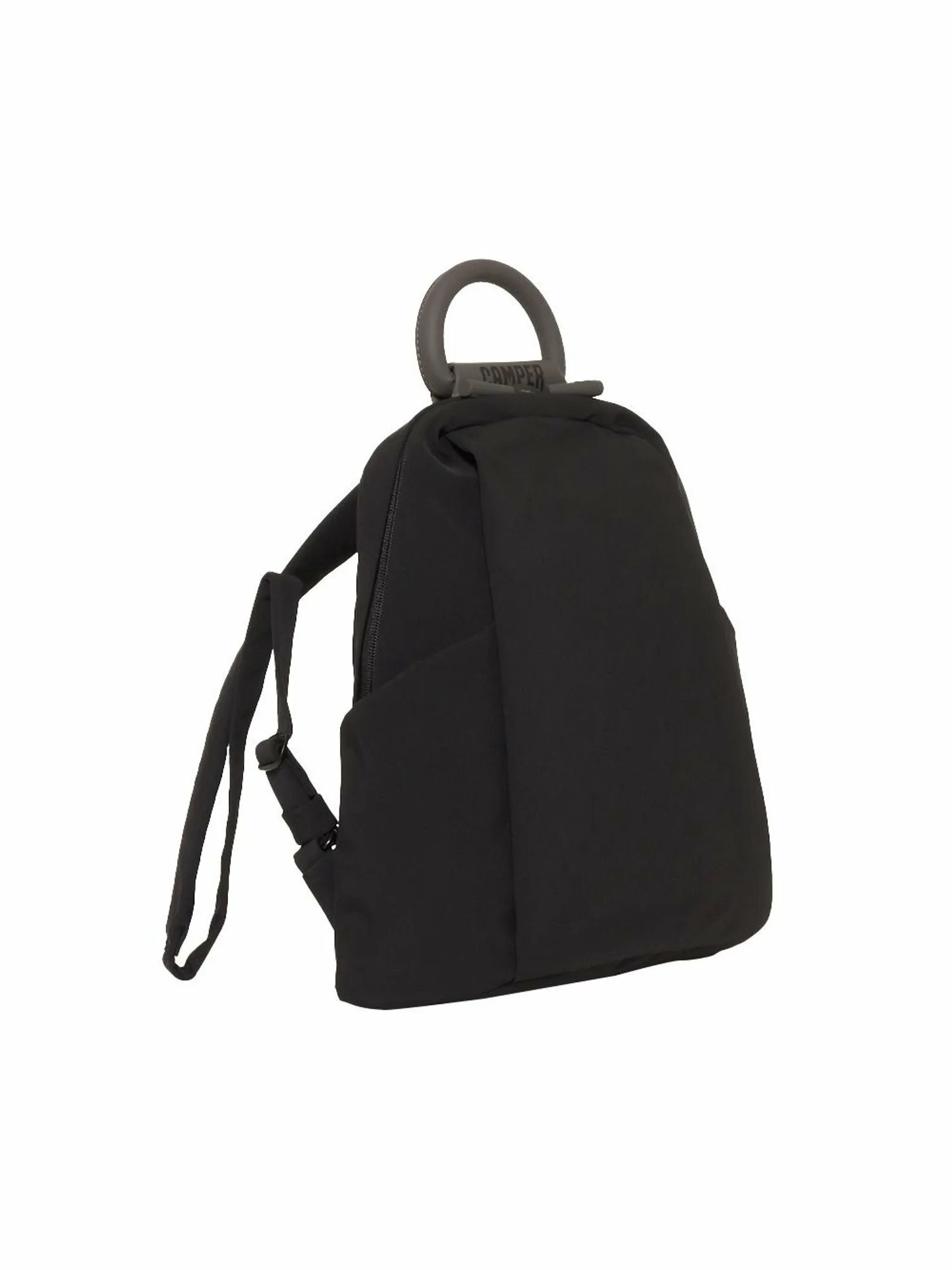 Дизайн рукоятки вдохновлен силуэтом плавательного круга, который можно увидеть на подошвах обуви из коллекции. Застежка-молния на основном отделении имеет характерную форму палочки, напоминающую трубку. Материал изготовлен из переработанной нейлоновой ткани с матовой поверхностью и легкой складкой, что снижает спортивный вид. Молния также спроектирована таким образом, чтобы быть максимально незаметной, что позволяет легко сочетать рюкзак с офисной одеждой. Карманы расположены с обеих сторон основного отделения и на спине, что делает этот рюкзак также функциональным.