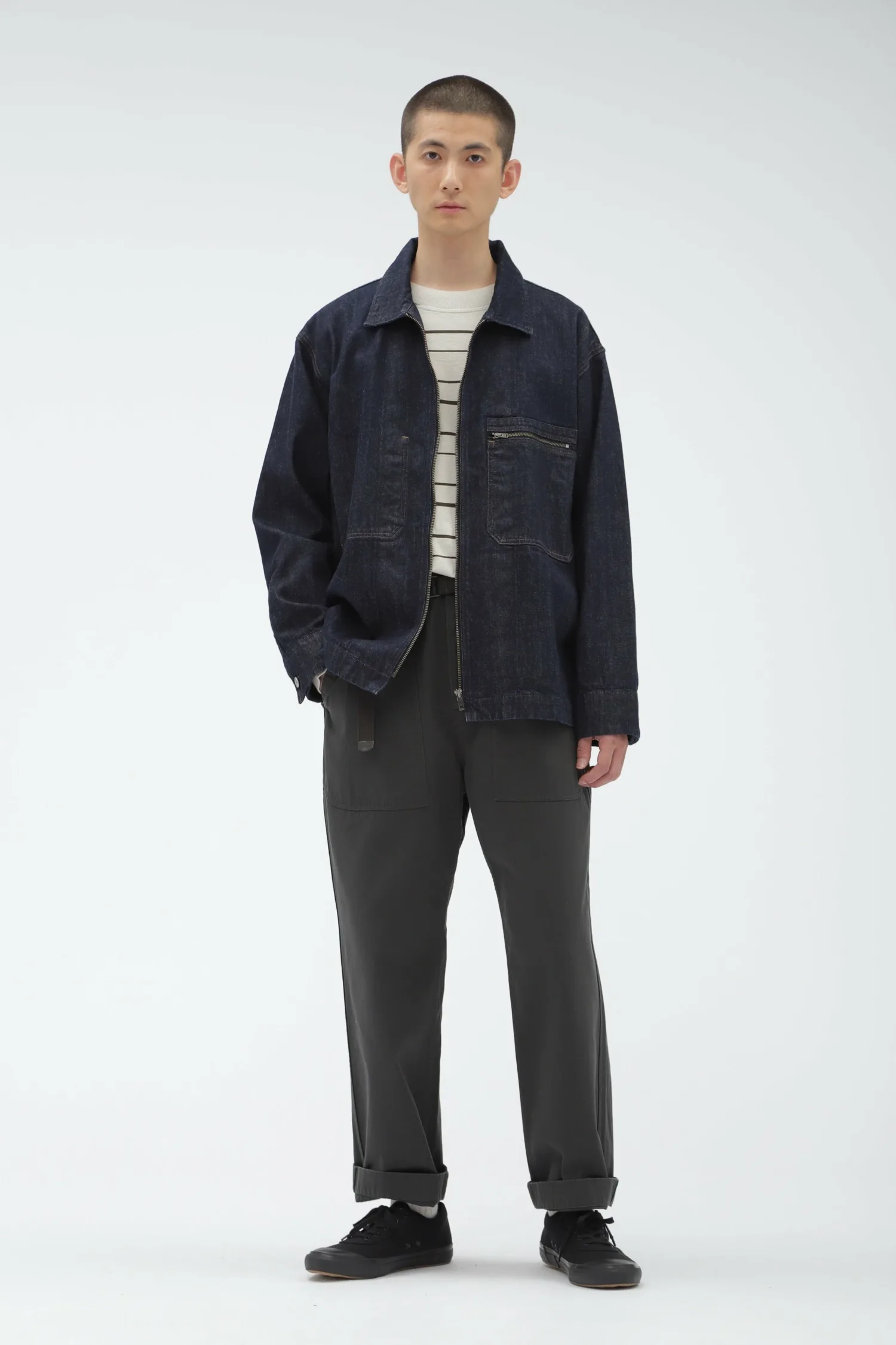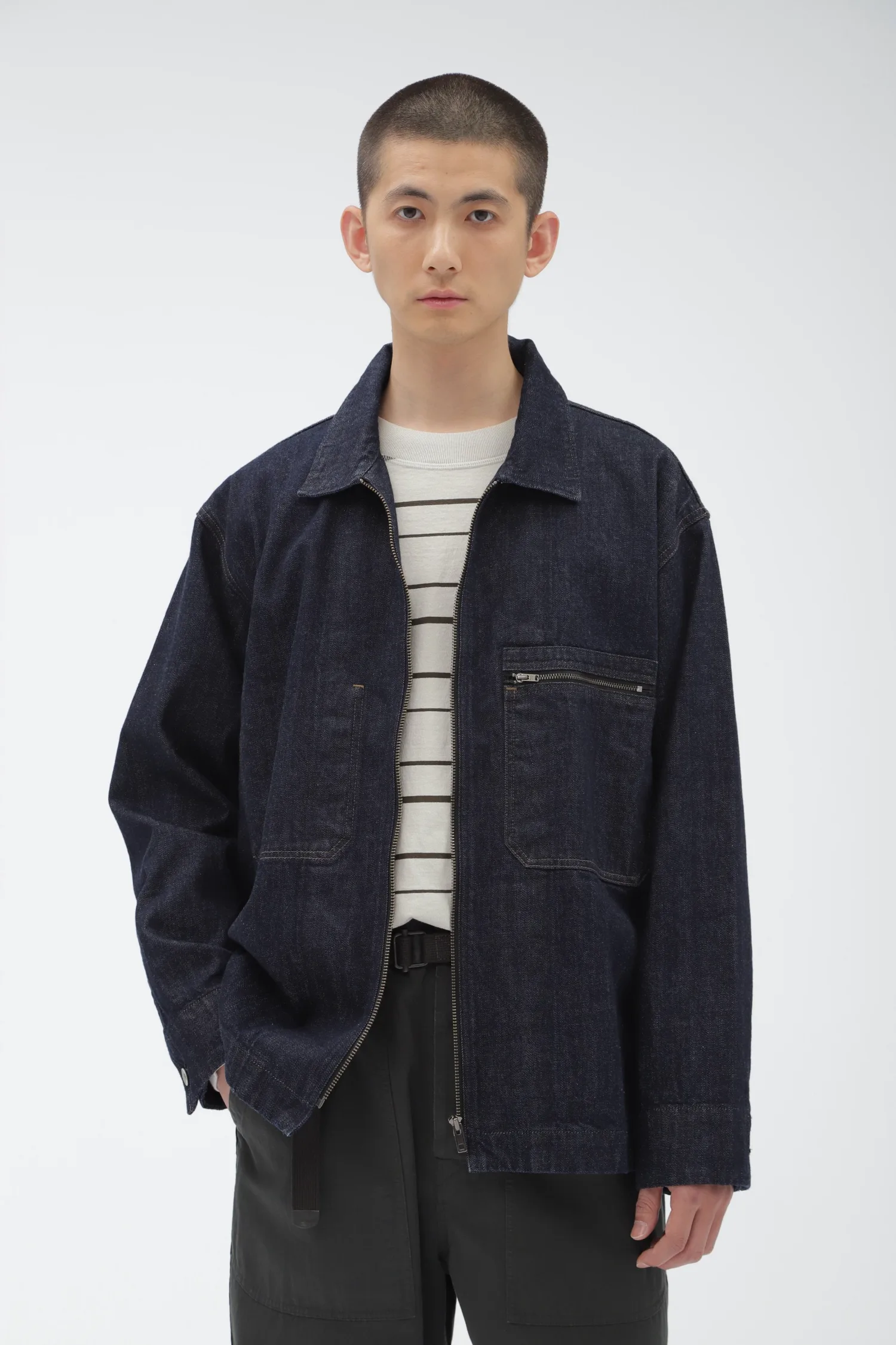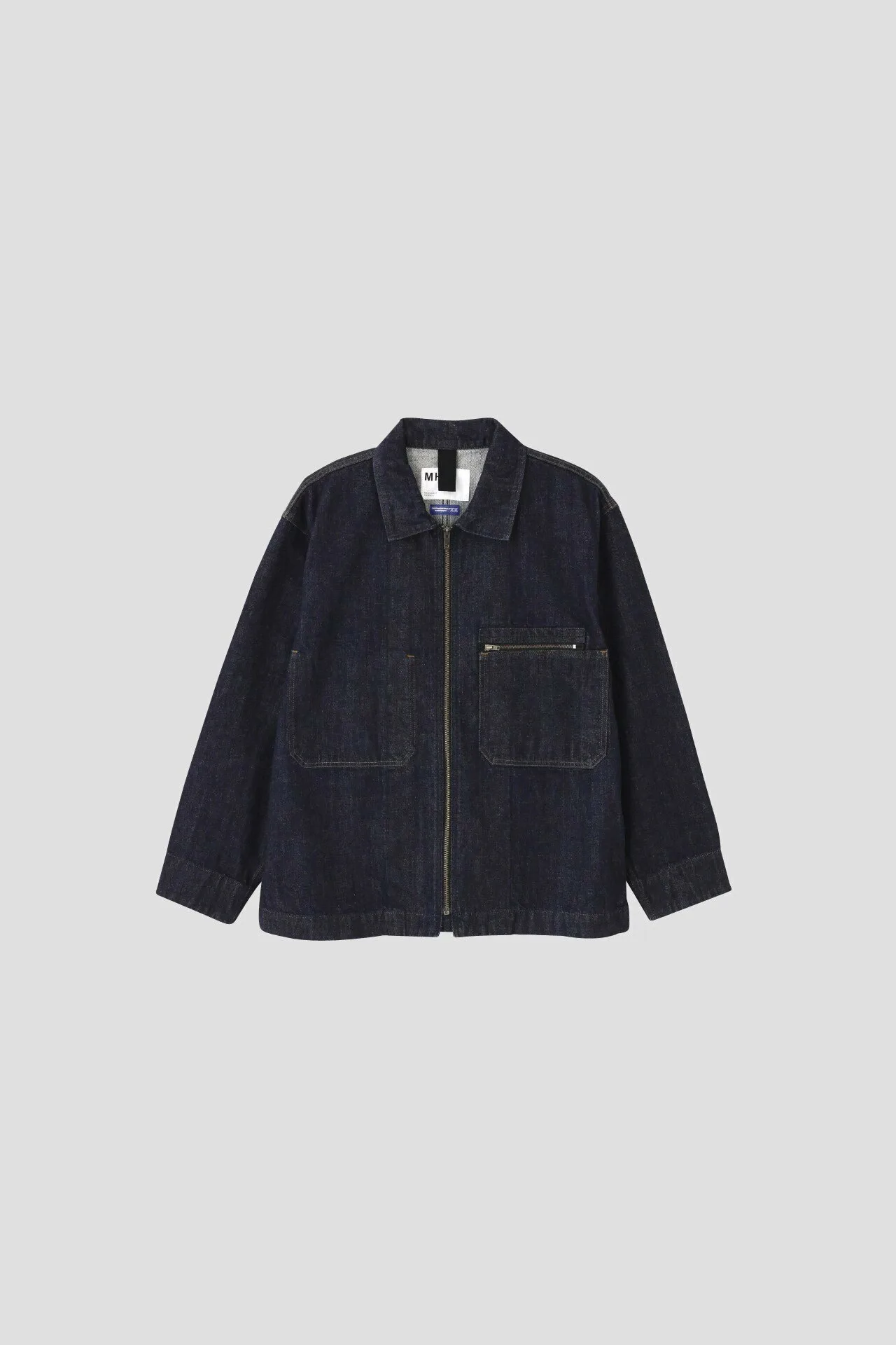 Джинсовая куртка с характерными для MHL брутальными деталями. Она сочетает в себе характер и функциональность, например, нагрудный карман на молнии и держатель для ручки.