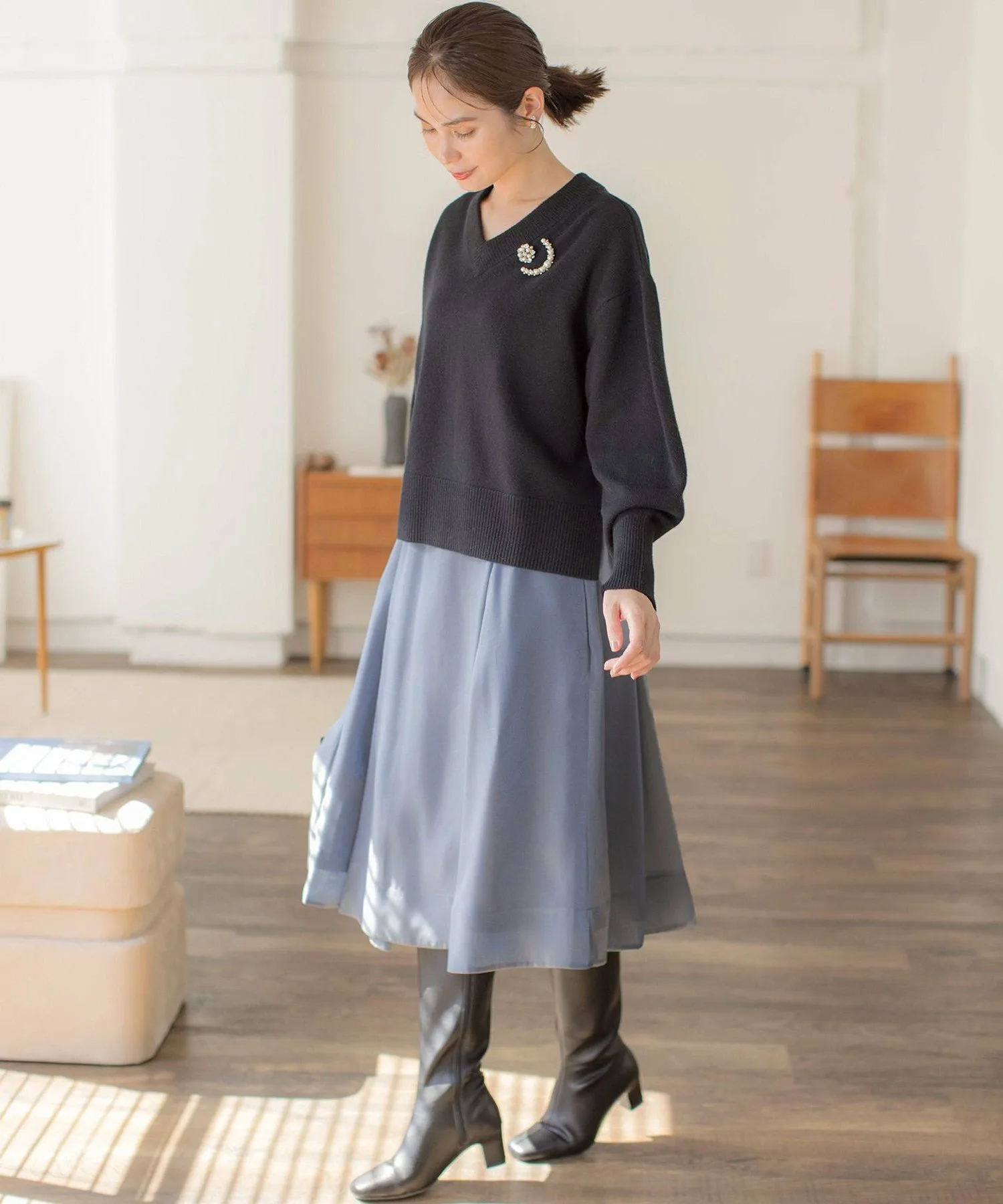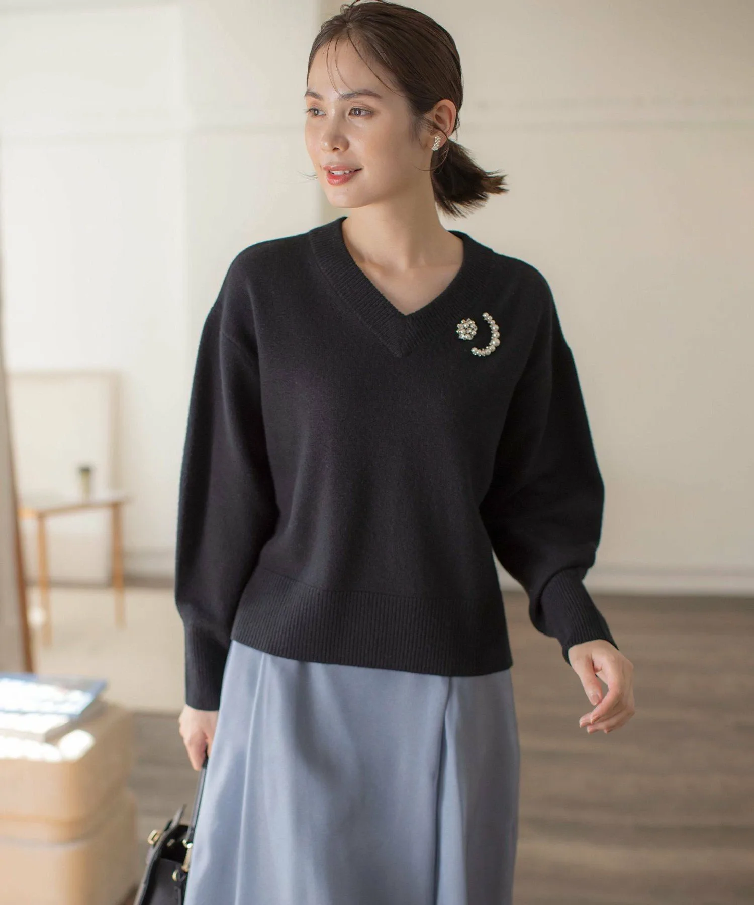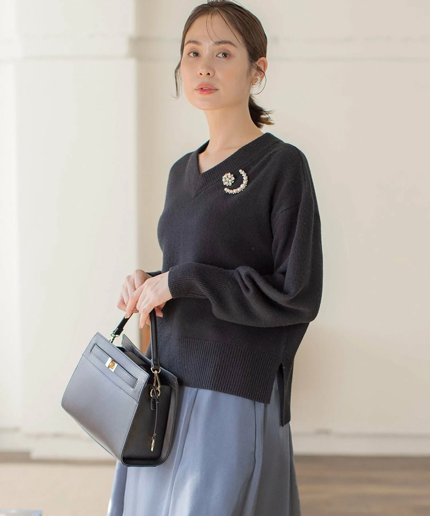 Серия «Шерсть-кашемир» \ Высококачественная смесь кашемира предлагает элегантные, красивые цвета. / Женственный V-образный вырез создает аккуратный, привлекательный образ. Дизайн: Этот женственный пуловер имеет неглубокий V-образный вырез спереди и сзади, создавая аккуратный, привлекательный образ. Рукава удобно сидят на некотором расстоянии от тела, а длинные манжеты с диагональной ребристой отделкой и глубокие боковые разрезы создают компактный, сбалансированный вид, придавая образу естественную изысканность. Задняя панель обеспечивает идеальный обзор спины, делая этот свитер простым, но эффектным. В зависимости от аксессуаров, которые вы с ним сочетаете, его можно носить как в повседневной жизни, так и на более торжественных мероприятиях. Материал: В этой смеси используется только лучший кашемир. Шерсть – это сверхтонкая шерсть, известная своей деликатной текстурой. Благодаря скручиванию двух типов пряжи достигается легкая, мягкая и пушистая текстура. Элегантные, яркие цвета, которые можно получить только с помощью высококачественной пряжи, также привлекательны.