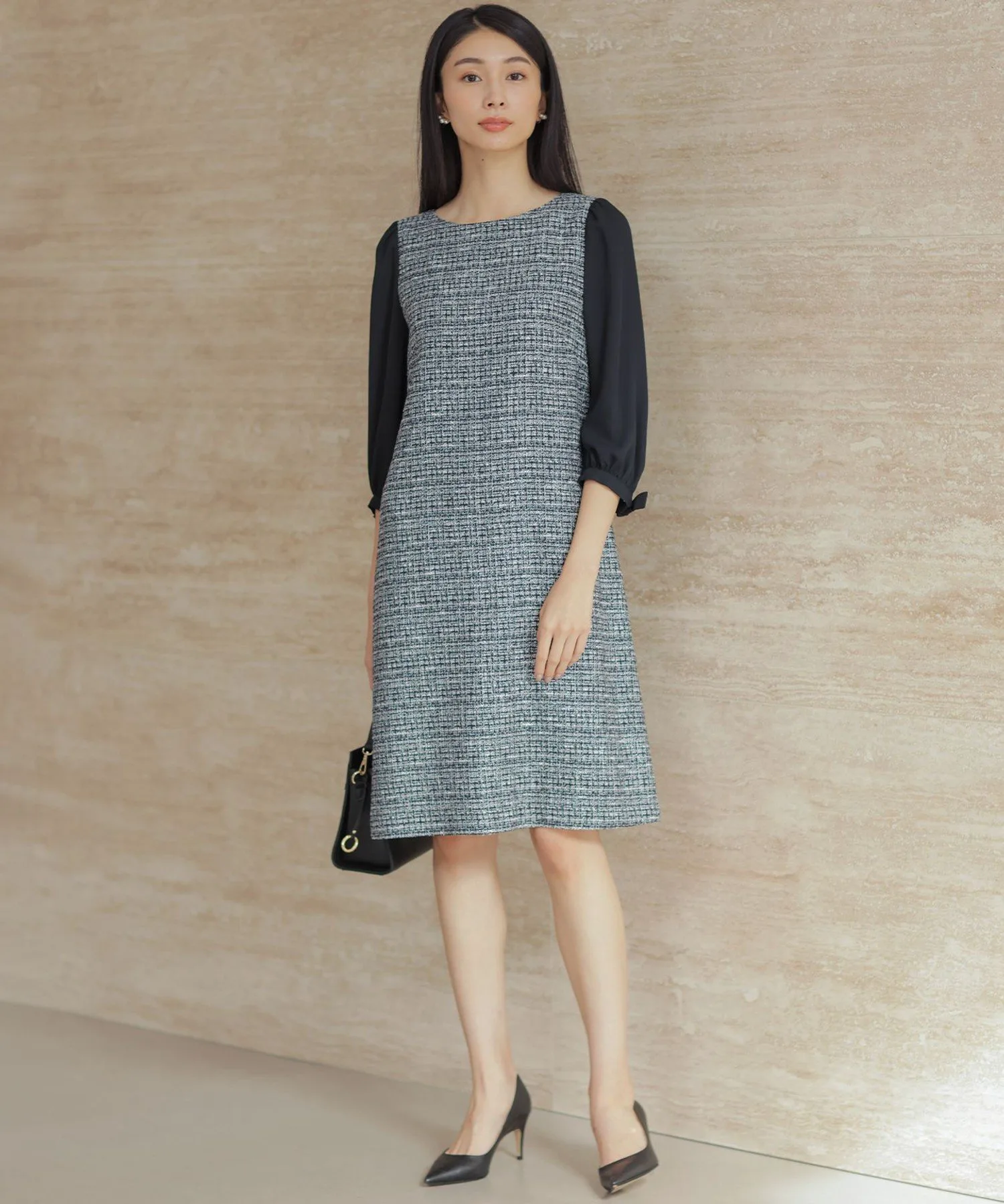 Дизайн: Это платье сшито из элегантного твида, который великолепно выделяется. Непрозрачные, полуматовые атласные рукава сзади создают женственный образ. Дизайн не слишком обтягивающий, с достаточным запасом свободного пространства, поэтому вы можете подчеркнуть свой стиль. Это платье само по себе излучает изысканность, что делает его идеальным вариантом для повседневной носки.