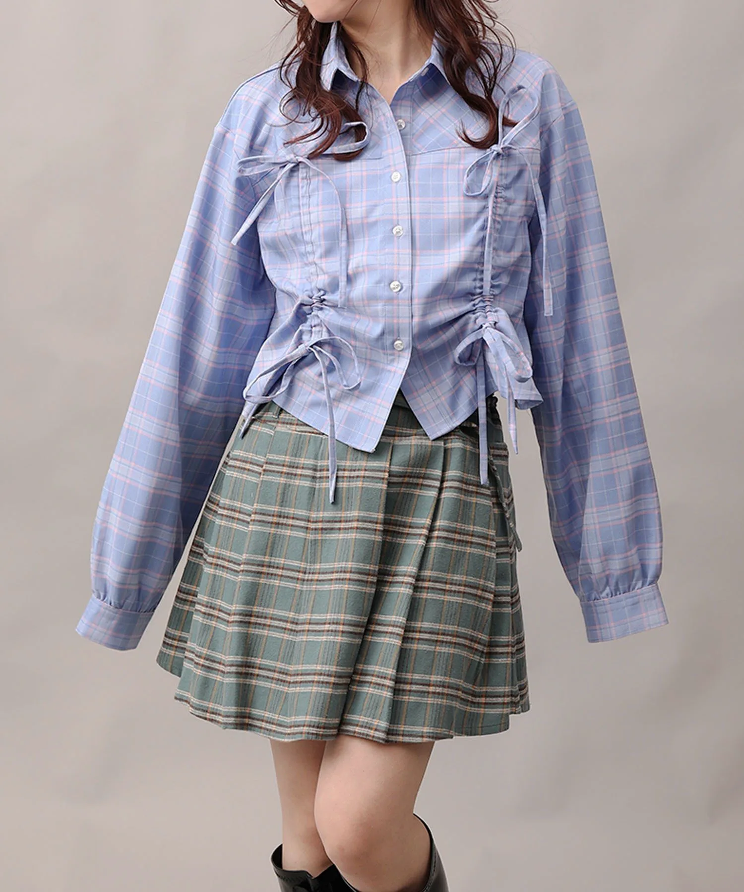 Рубашка с двойной сборкой в стиле Y2K