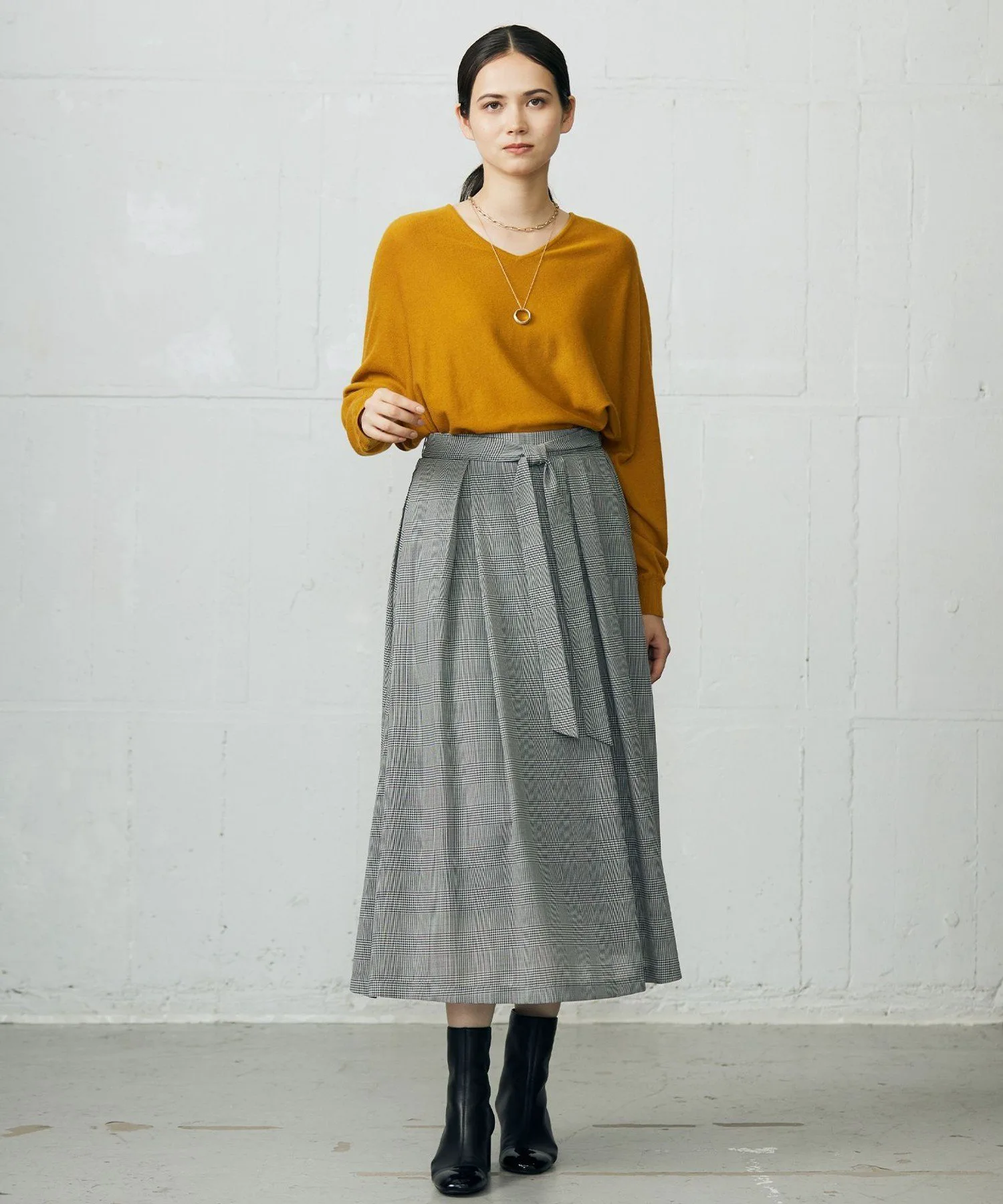 Трикотажное изделие с женственным силуэтом «летучая мышь». Дизайн: Этот трикотаж имеет женственный силуэт «летучая мышь». Общий крой свободный, но нижний край компактный, что создает непринужденный образ, не делая его слишком свободным. Бордовый (015) и горчичный (040) — однотонные цвета, а серый (703) и верблюжий (734) — контрастные цвета спереди и сзади. Несмотря на то, что изделие достаточно привлекательно, чтобы носить его самостоятельно, однотонная передняя часть также позволяет легко использовать его в качестве базового нижнего слоя. Материал: Смесь нежной шерсти Super Merino с 20% кашемира. Шерсть Super Merino не дает усадки, а пряжа спрядена до чрезвычайно тонкого номера для пушистого и легкого ощущения. Для создания этой тонкой шерстяной пряжи специально отбирается кашемир с длинным волокном. Изделия из одного материала: вязаный свитер с круглым вырезом (KRWRGW0462) и палантин (AA2VGW0462)