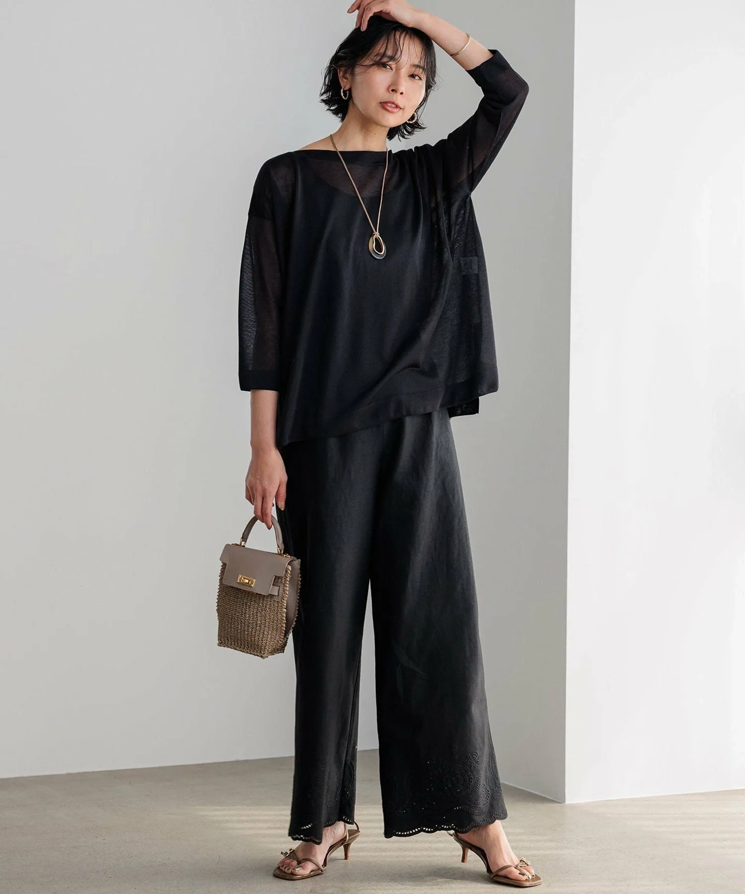 Этот трикотаж с вырезом-лодочкой отличается легкостью и прохладой благодаря легкому блеску и полупрозрачности. Его свободный, квадратный силуэт делает его привлекательным и идеально подходит для жаркой погоды. Он хорошо сочетается с майкой для простого многослойного образа, а также с топом или платьем для расслабленного, женственного образа. Доступен в пяти цветах: нежно-серый (#003), золотистый с легким блеском (#090), приятный для кожи коричневый (#030), универсальный черный (#005) и новый, эксклюзивный для интернет-магазина темно-синий (#075).