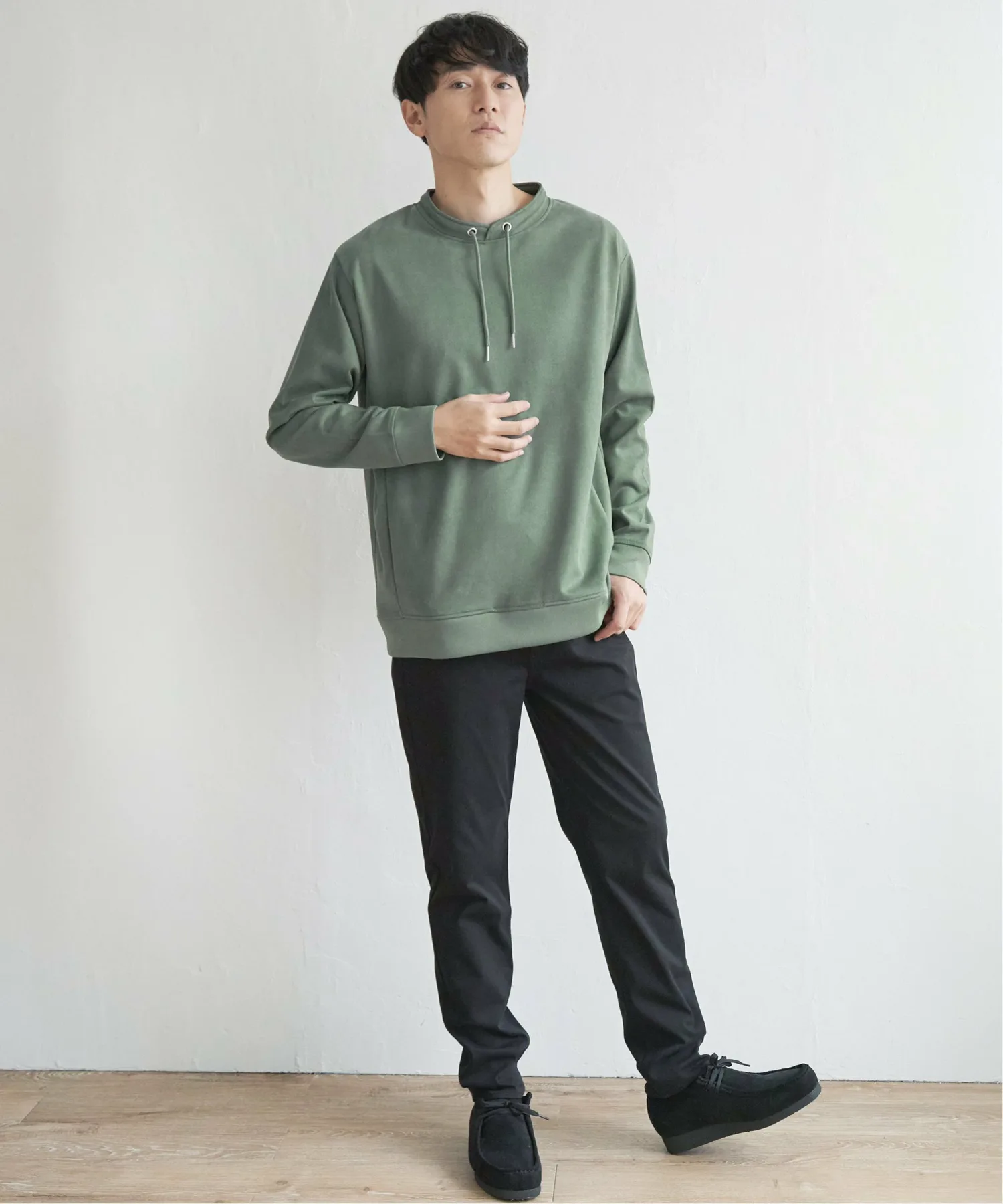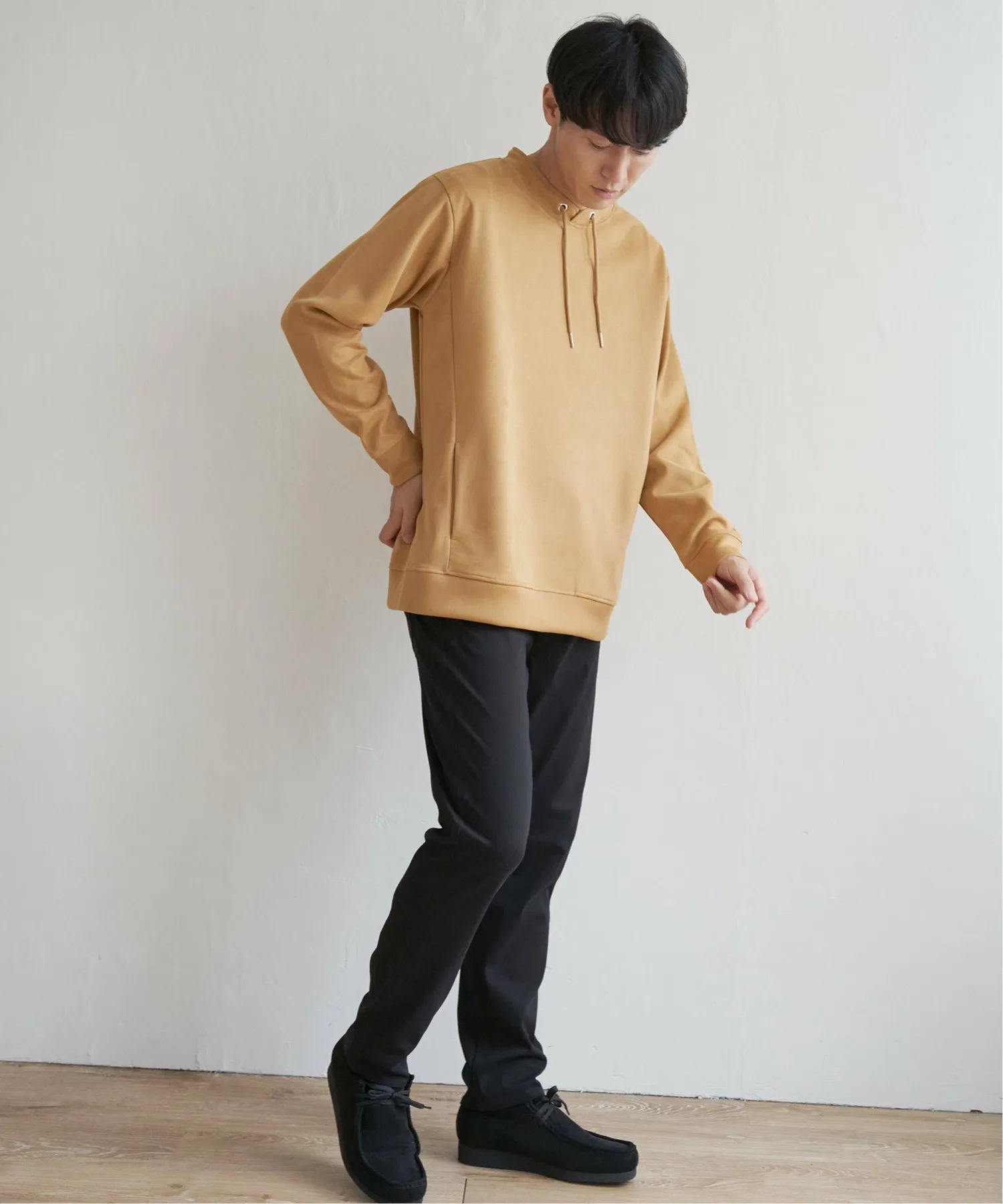 Изготовлен из эластичного трикотажного материала, имитирующего замшу.