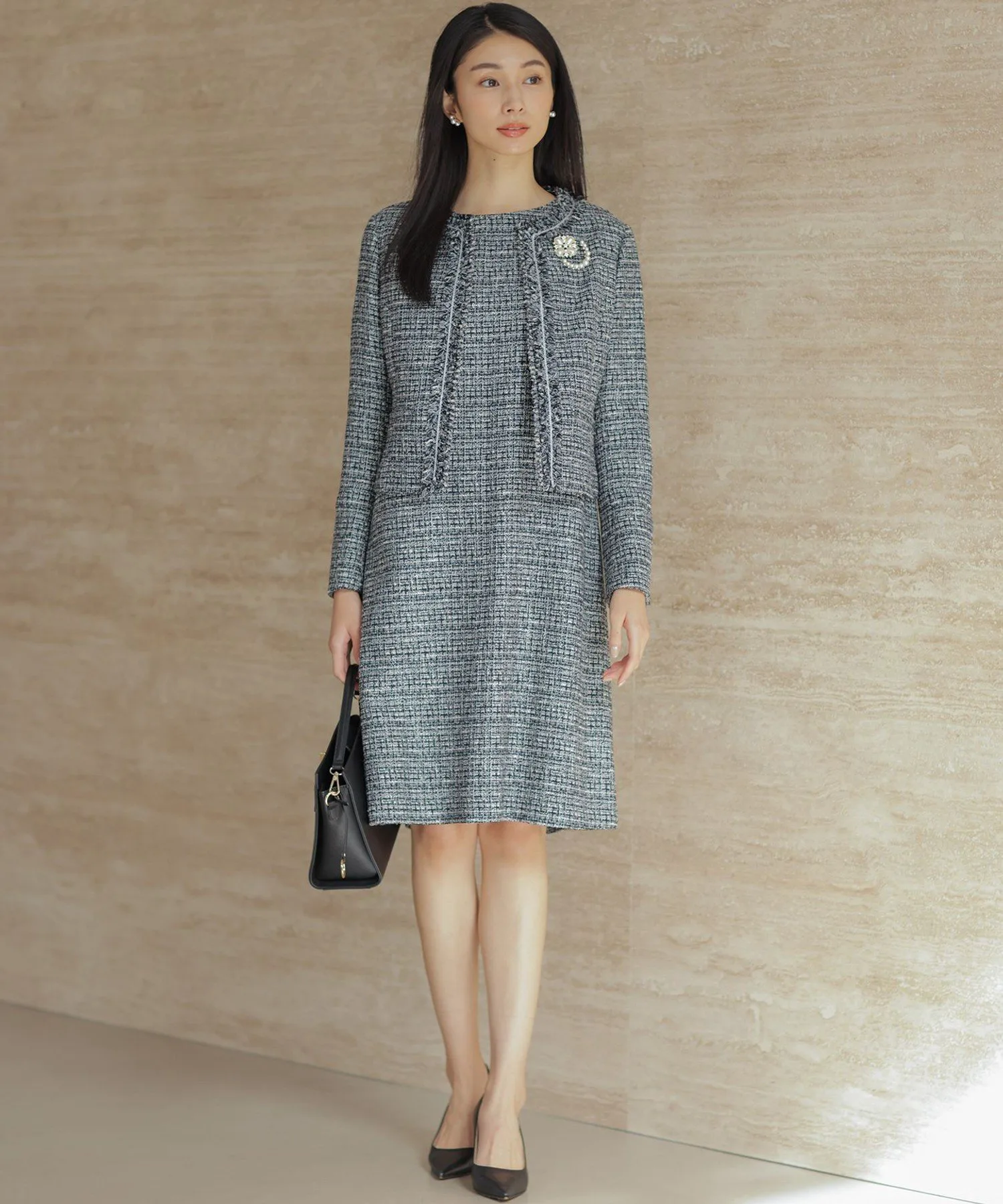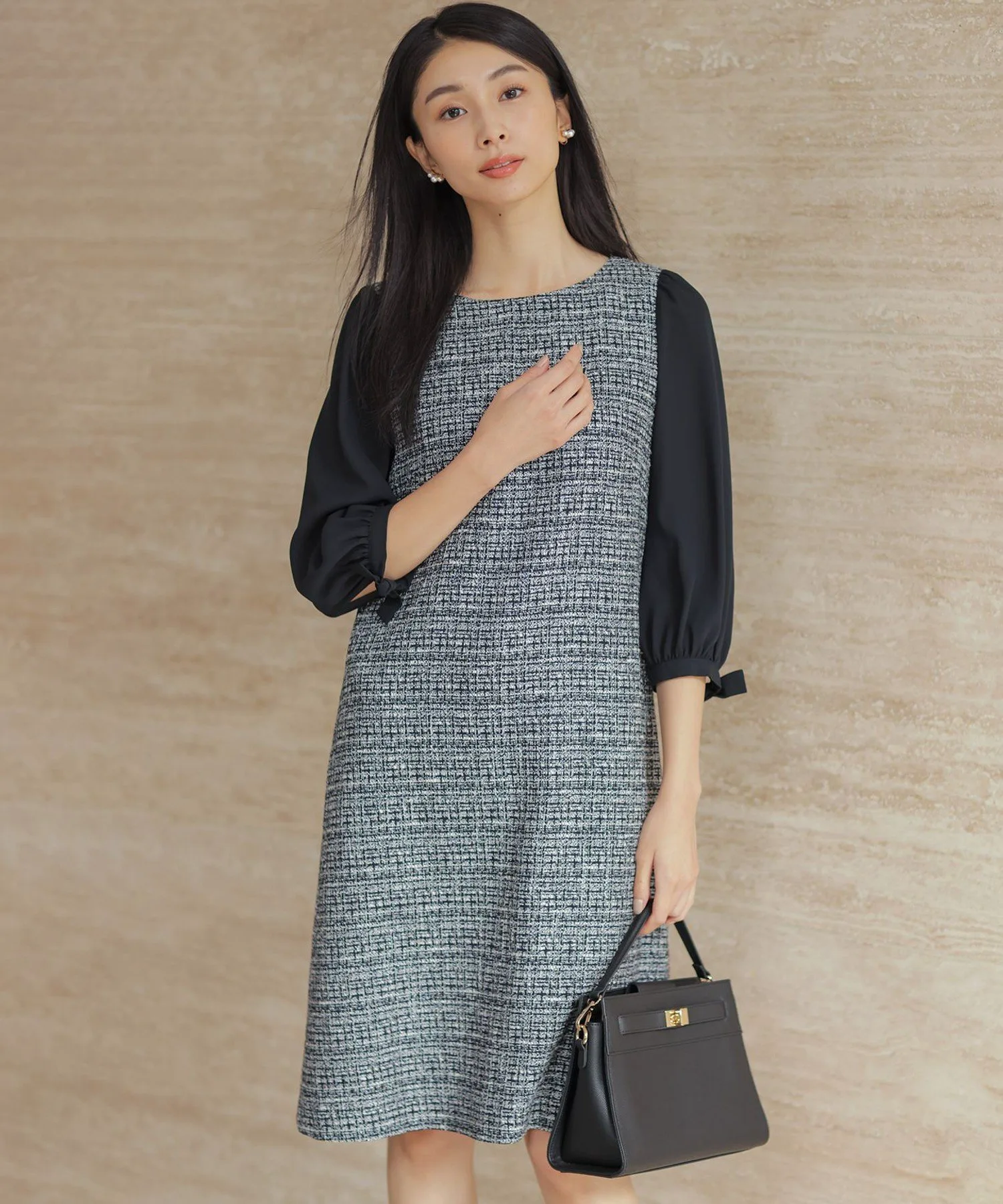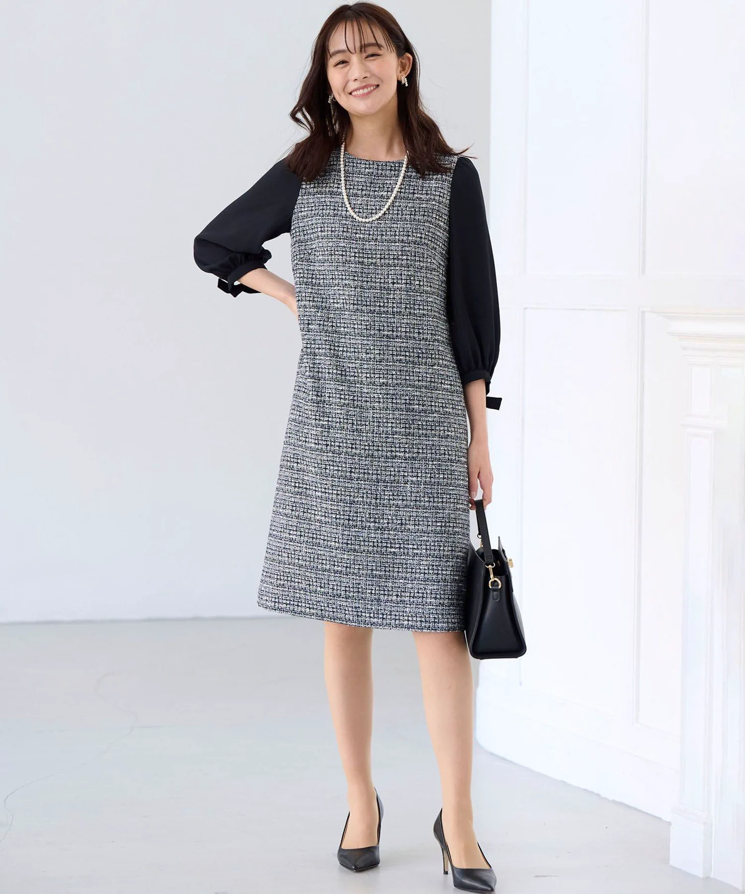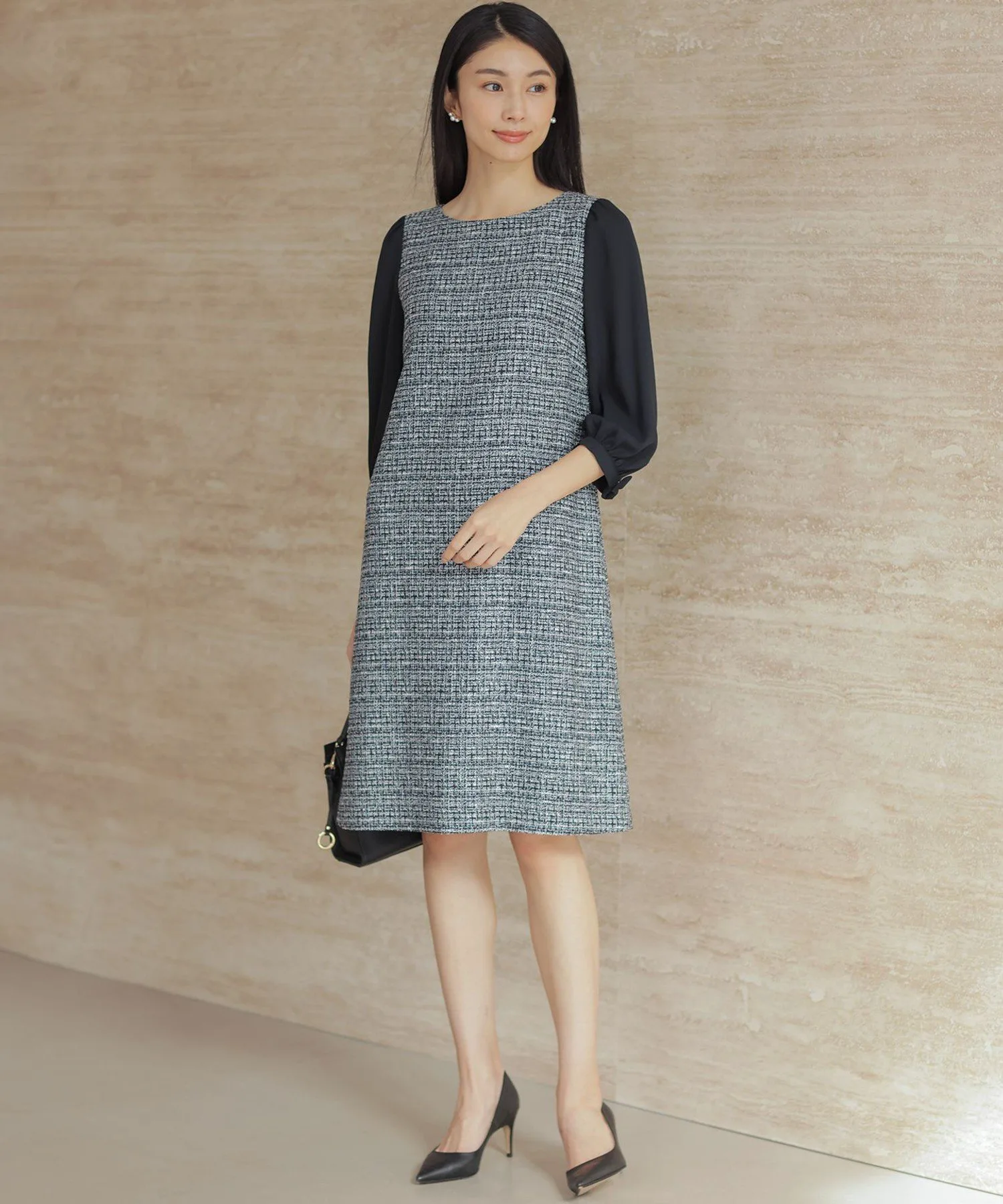 Дизайн: Это платье сшито из элегантного твида, который великолепно выделяется. Непрозрачные, полуматовые атласные рукава сзади создают женственный образ. Дизайн не слишком обтягивающий, с достаточным запасом свободного пространства, поэтому вы можете подчеркнуть свой стиль. Это платье само по себе излучает изысканность, что делает его идеальным вариантом для повседневной носки.