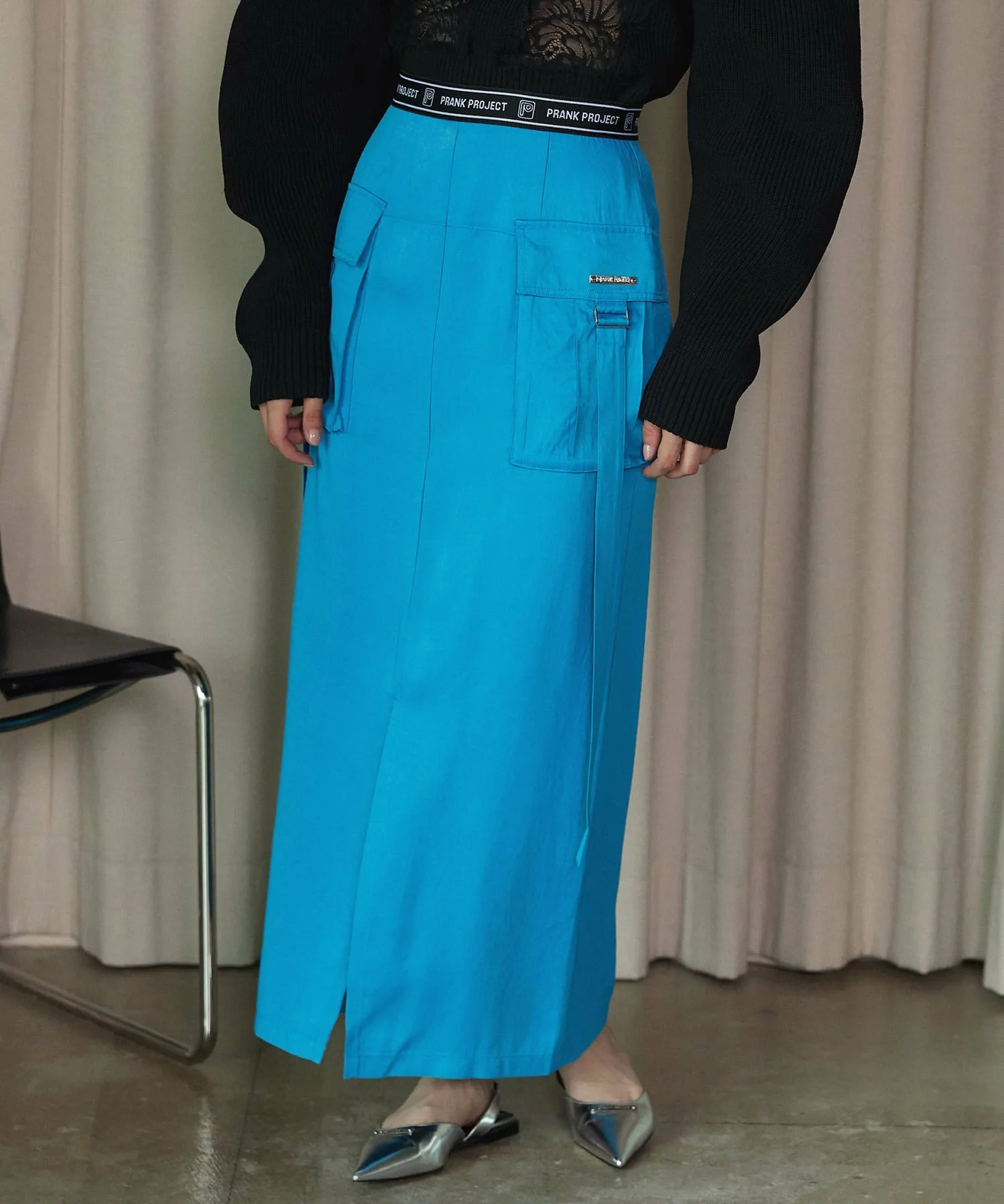 Повседневная юбка-карго из атласа с элегантной драпировкой.