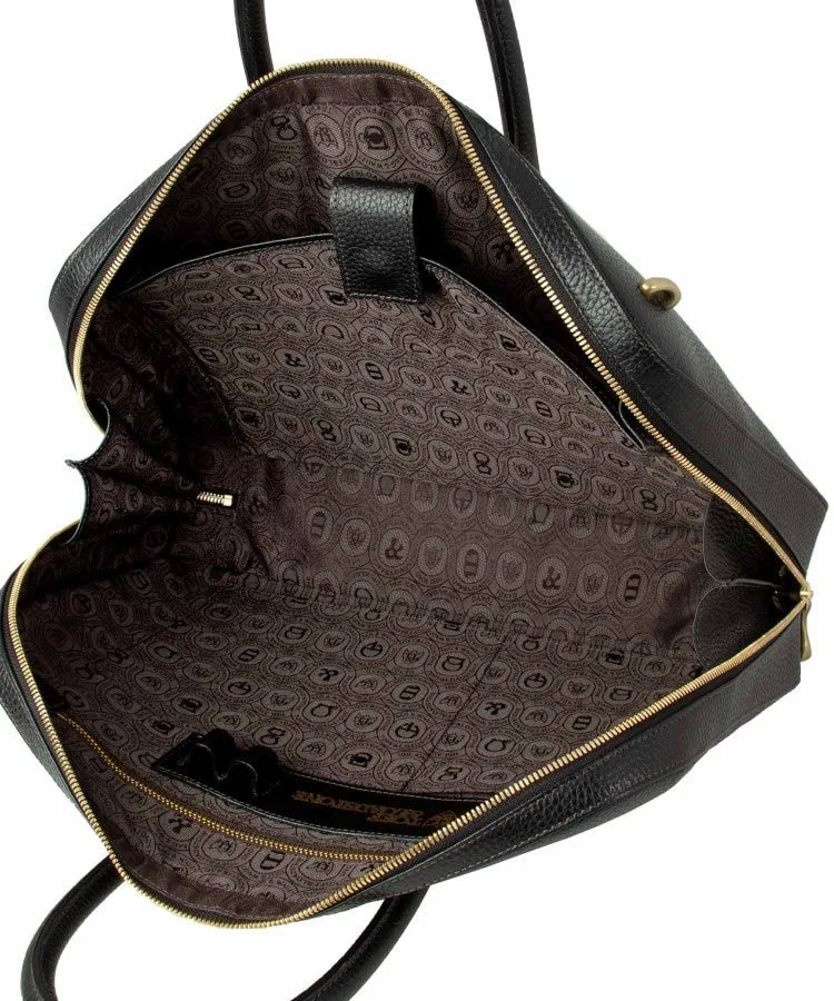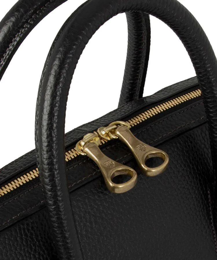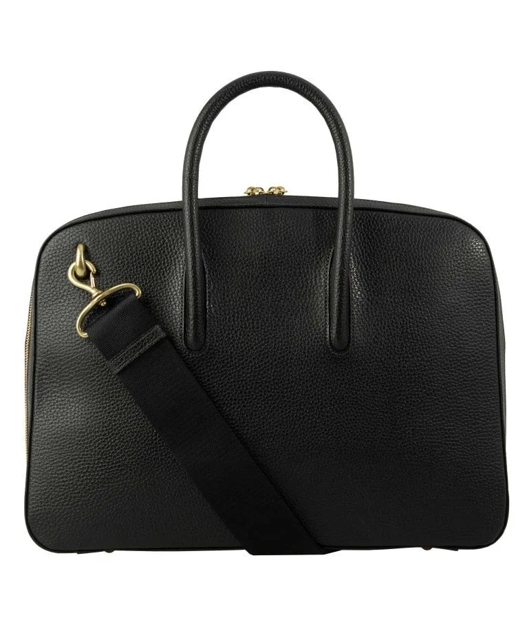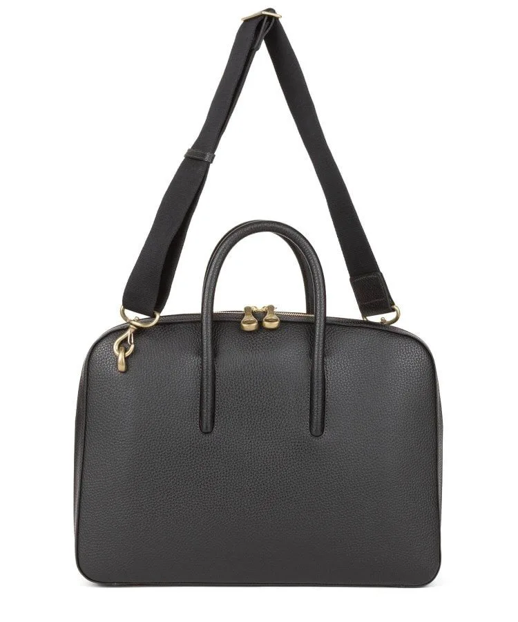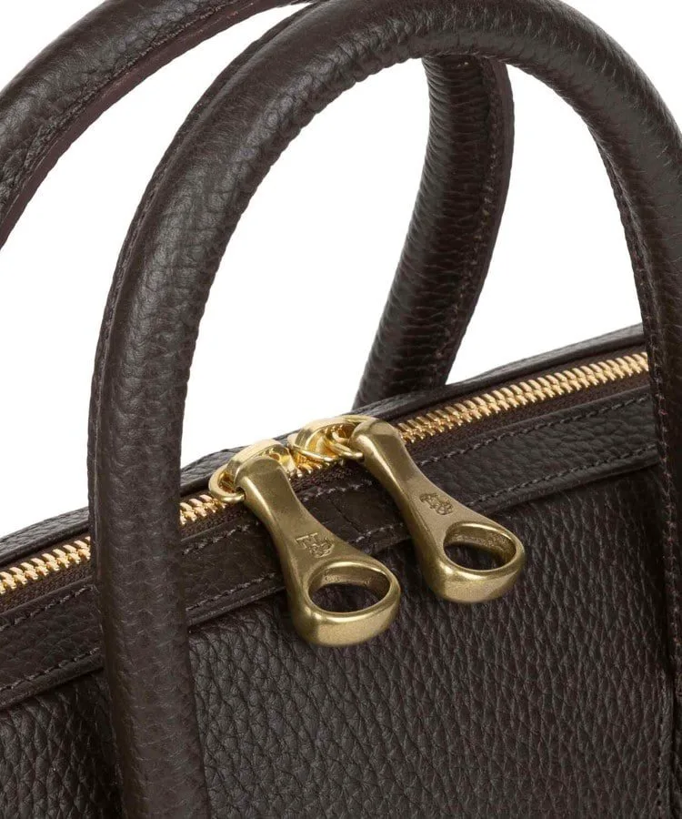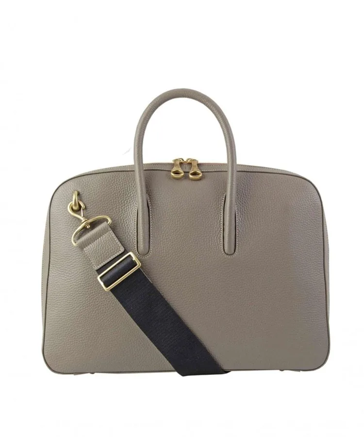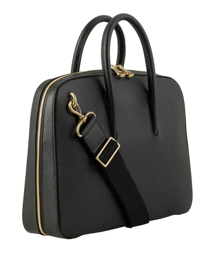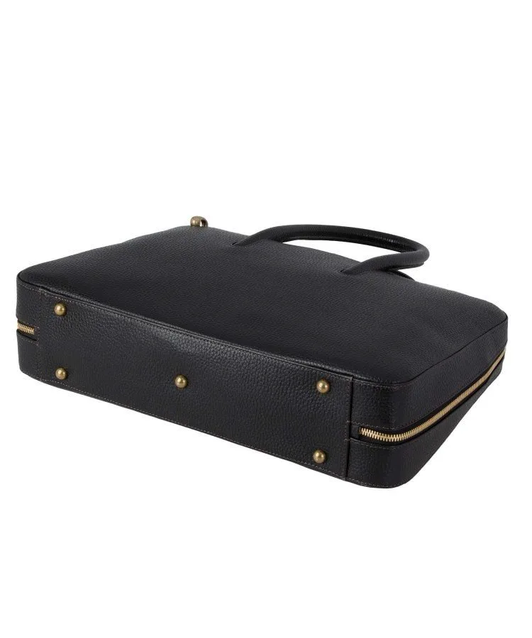 Расширение книзу плавно переходит в элегантный и стильный вид, позволяя портфелю стоять вертикально. Уникальная техника, используемая опытными мастерами для встраивания и интеграции ручки в корпус портфеля, улучшает общий вид и еще больше подчеркивает красоту литой латунной застежки-молнии.
