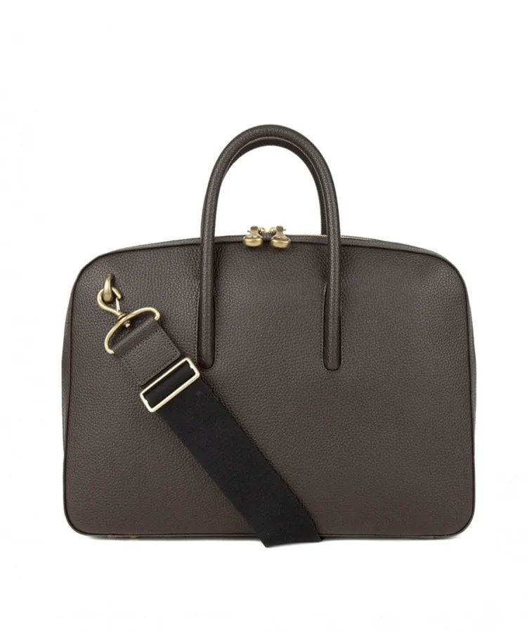 Расширение книзу плавно переходит в элегантный и стильный вид, позволяя портфелю стоять вертикально. Уникальная техника, используемая опытными мастерами для встраивания и интеграции ручки в корпус портфеля, улучшает общий вид и еще больше подчеркивает красоту литой латунной застежки-молнии.