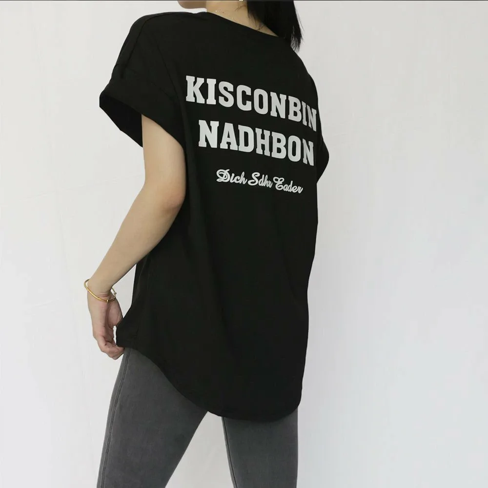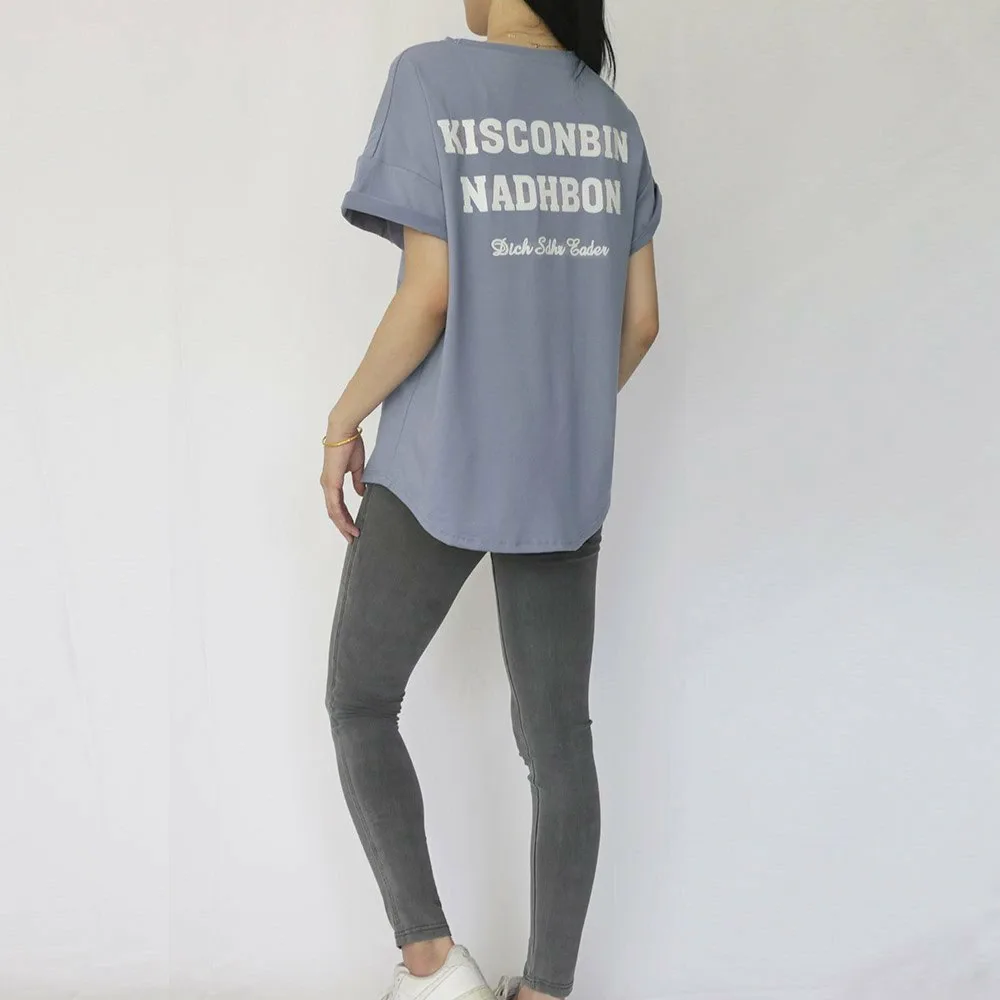 Футболка с круглым вырезом и логотипом, женская, с коротким рукавом, пуловер с английскими буквами, свободный повседневный крой