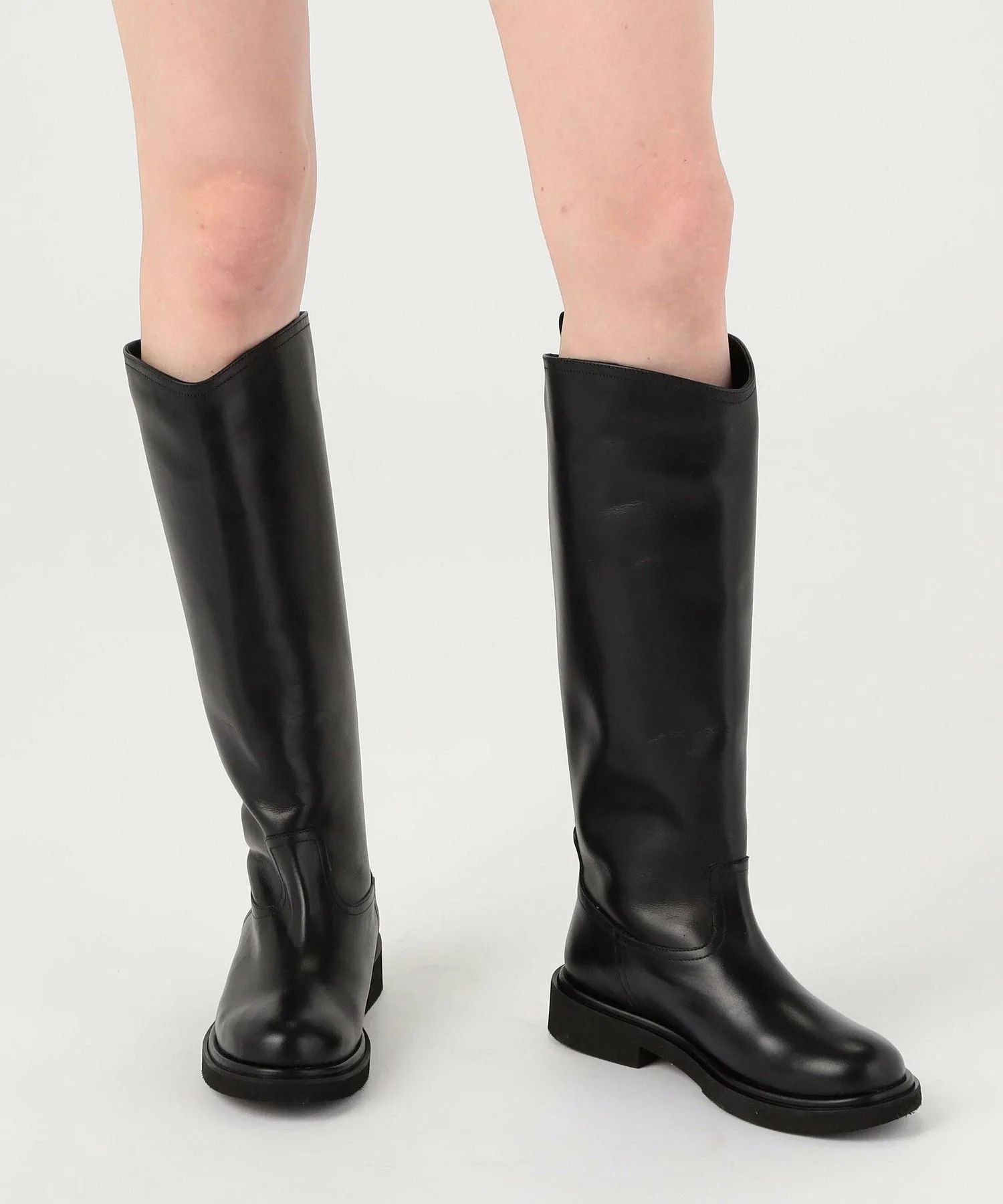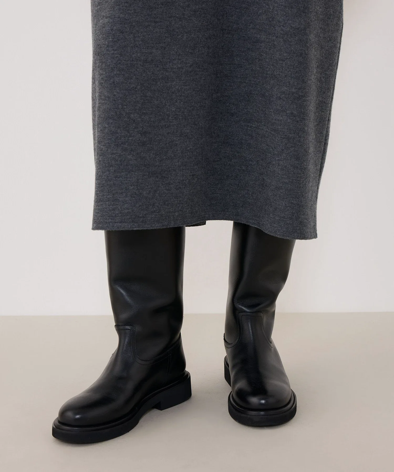 Эти высокие сапоги имеют простой прямой силуэт, благодаря чему их легко заправлять в брюки, и они универсальны для самых разных образов.