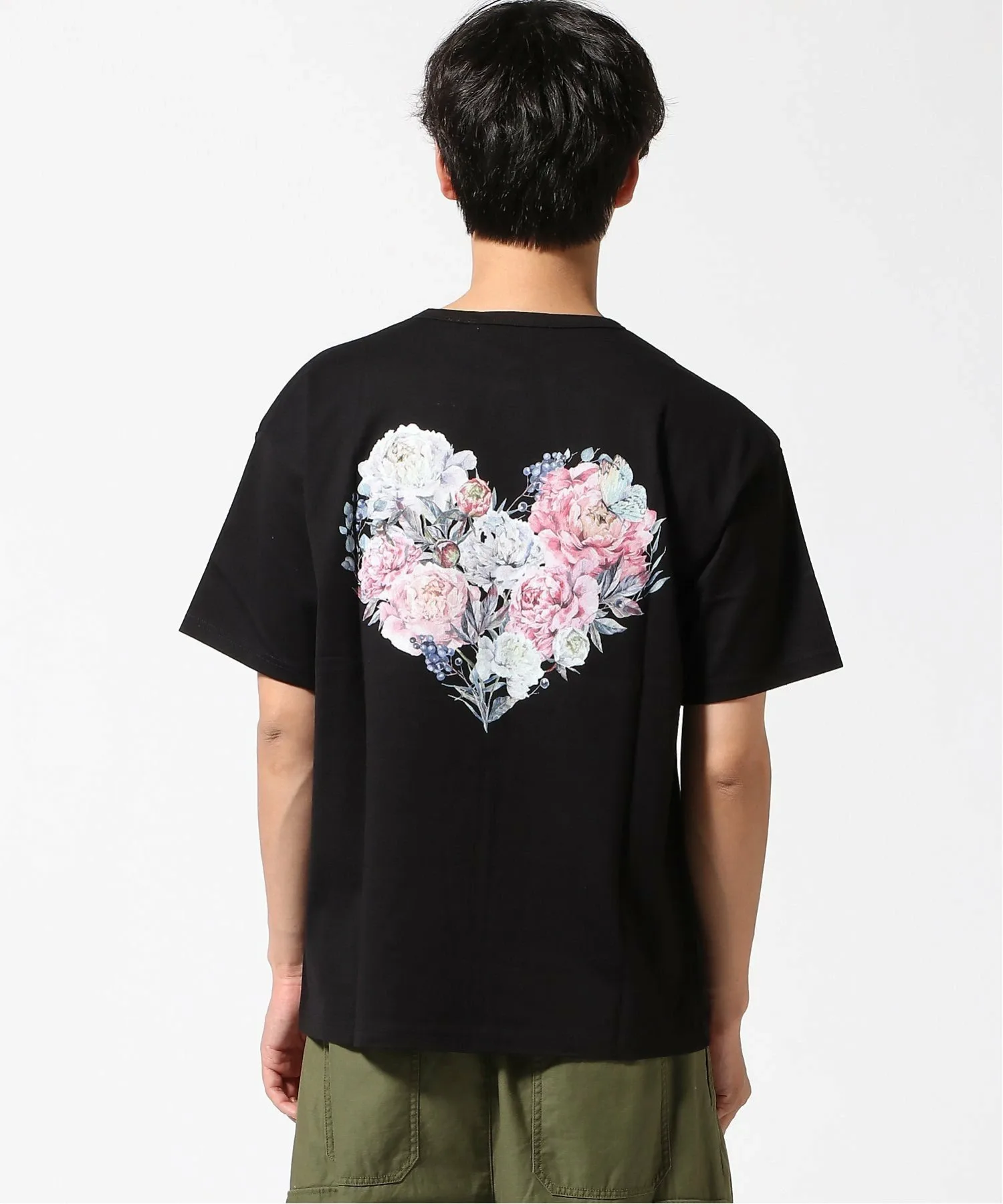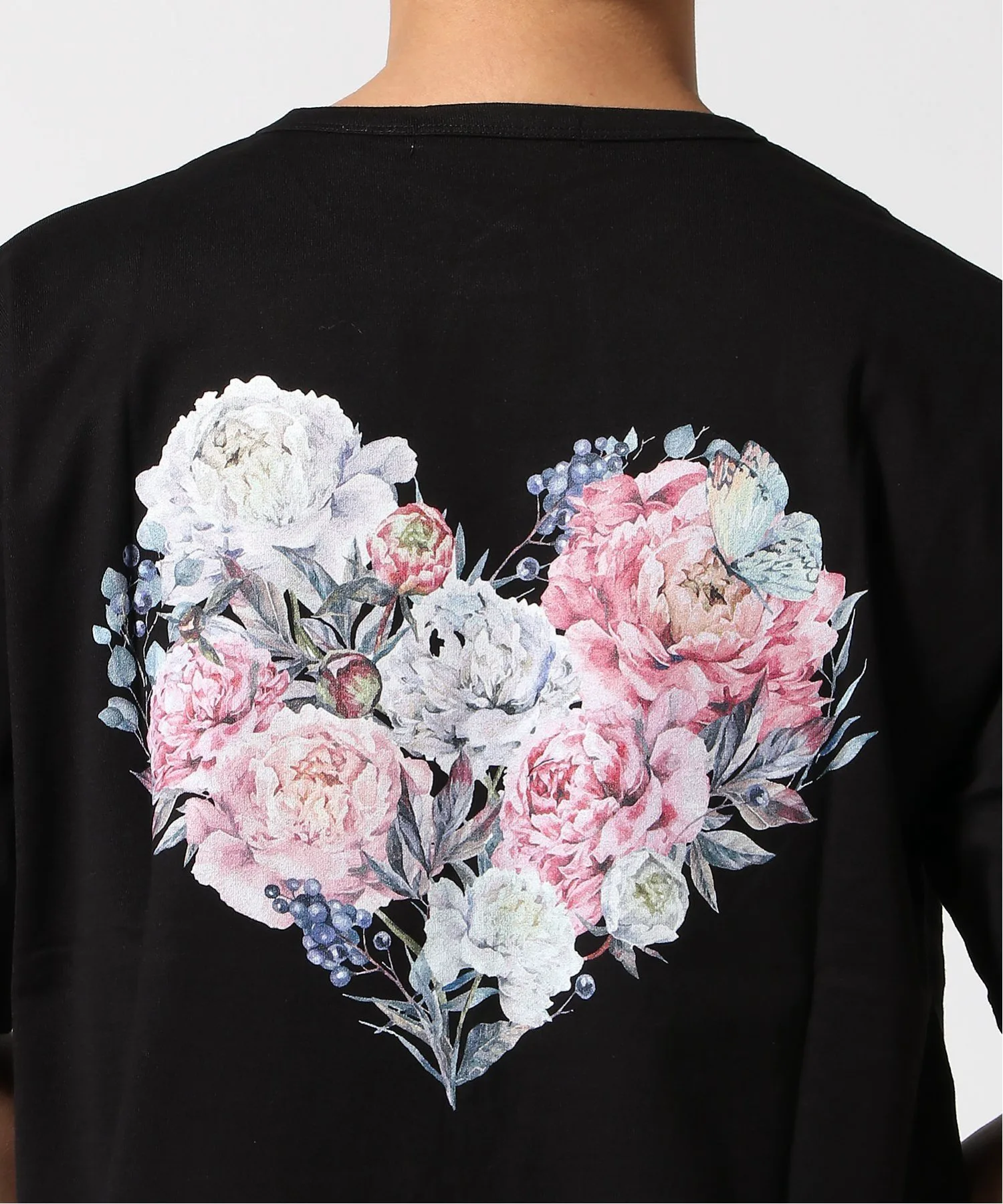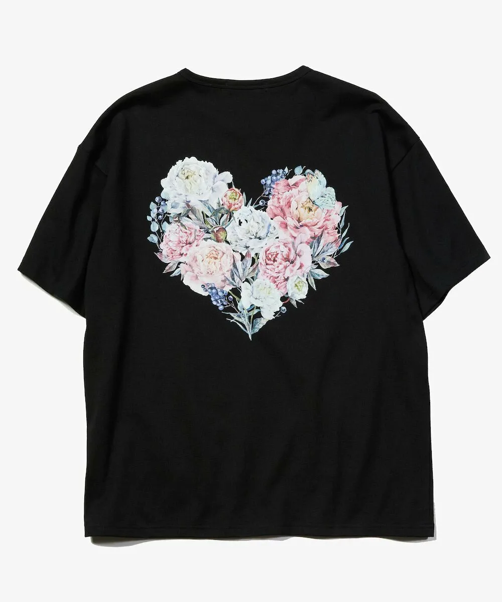 Эта футболка украшена цветочным рисунком в виде сердечек, что придает ей стильный вид.