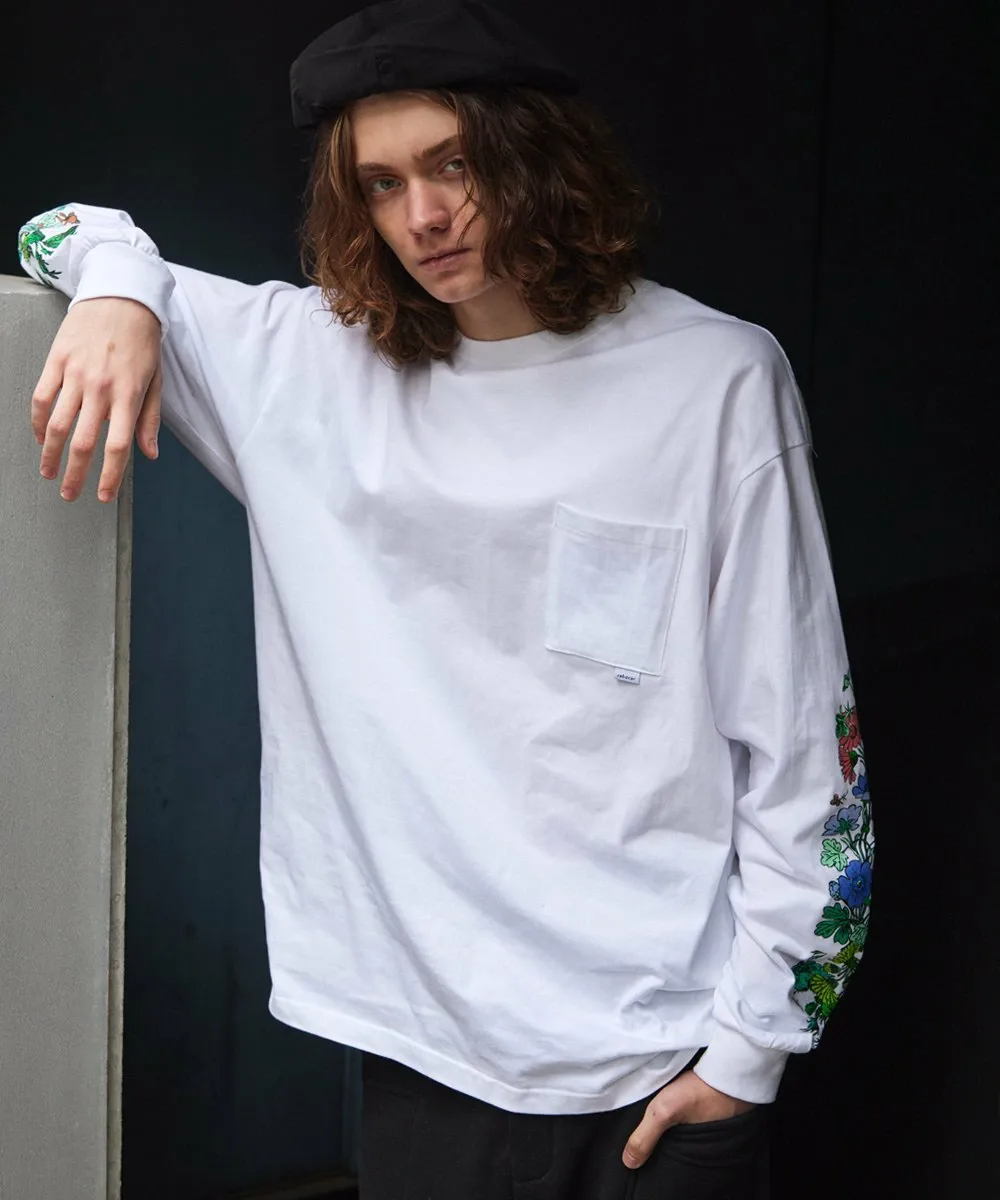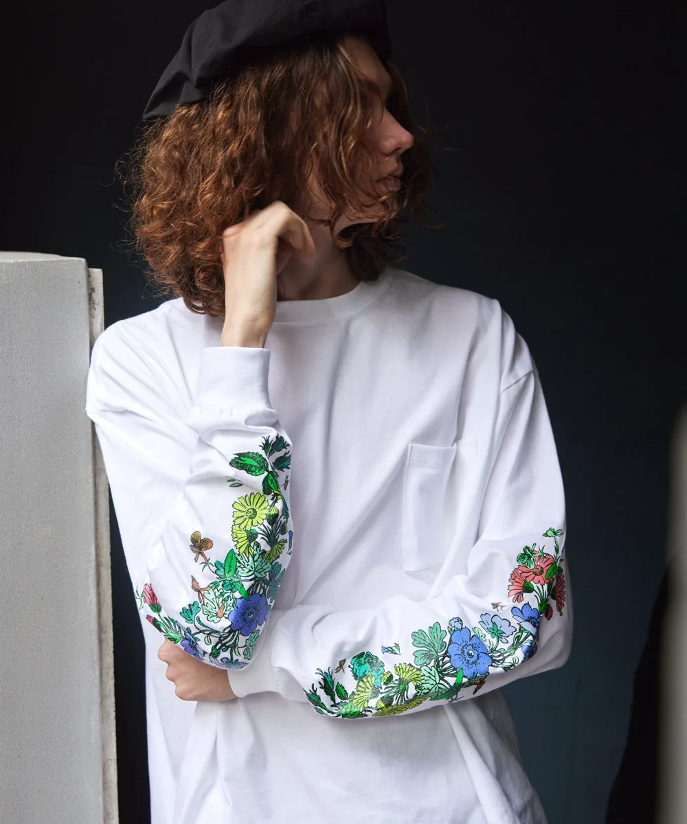 Этот свободный топ украшен эффектным цветочным принтом на рукавах. Цветовая гамма напоминает искусство «новой волны» 1980-х годов, что делает его привлекательным. Спереди имеется квадратный карман. Общий силуэт свободный, поэтому он подходит как для мужчин, так и для женщин. Рост модели: 179 см (5'1"), размер: зеленый/XLarge, синий/Large.