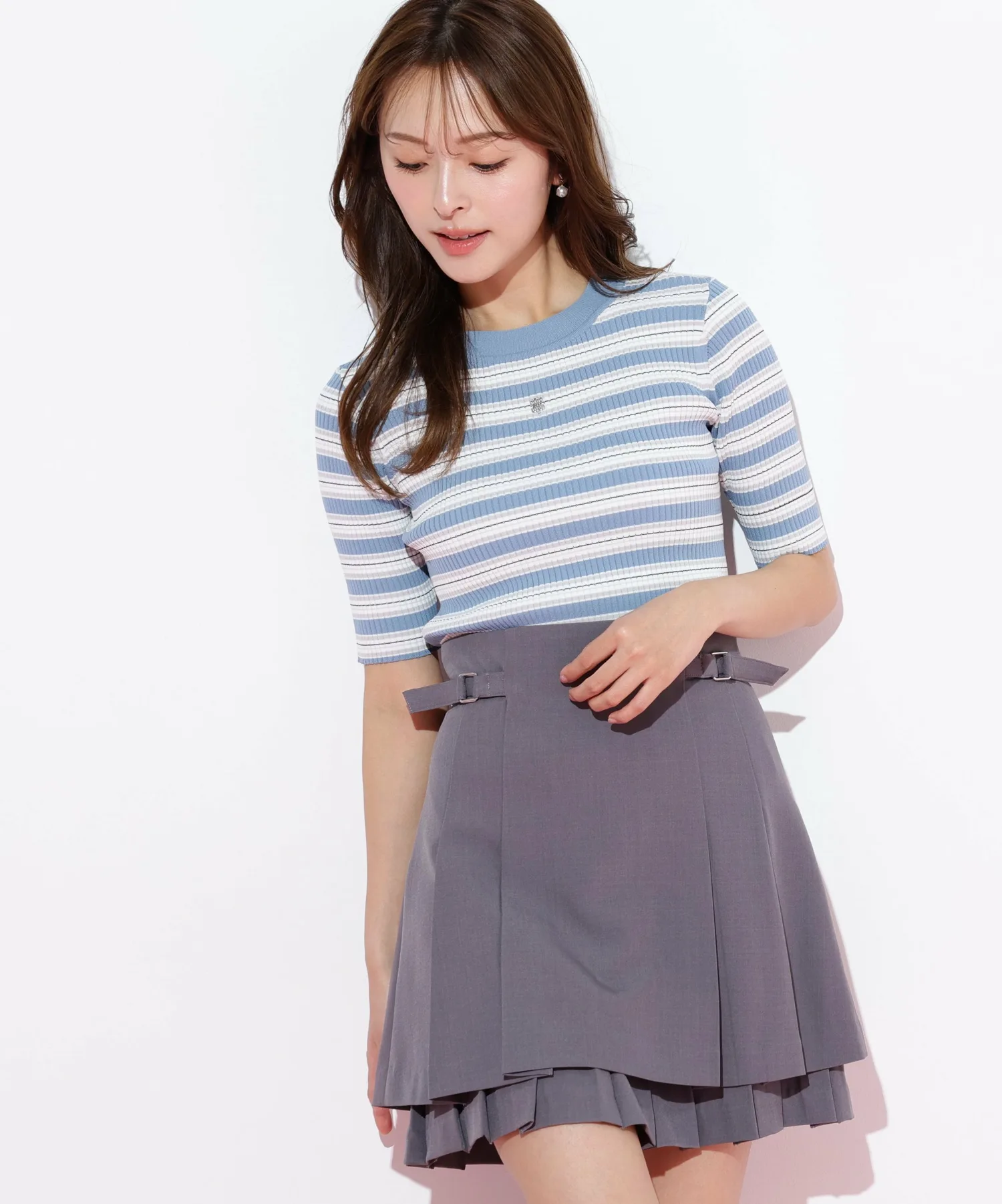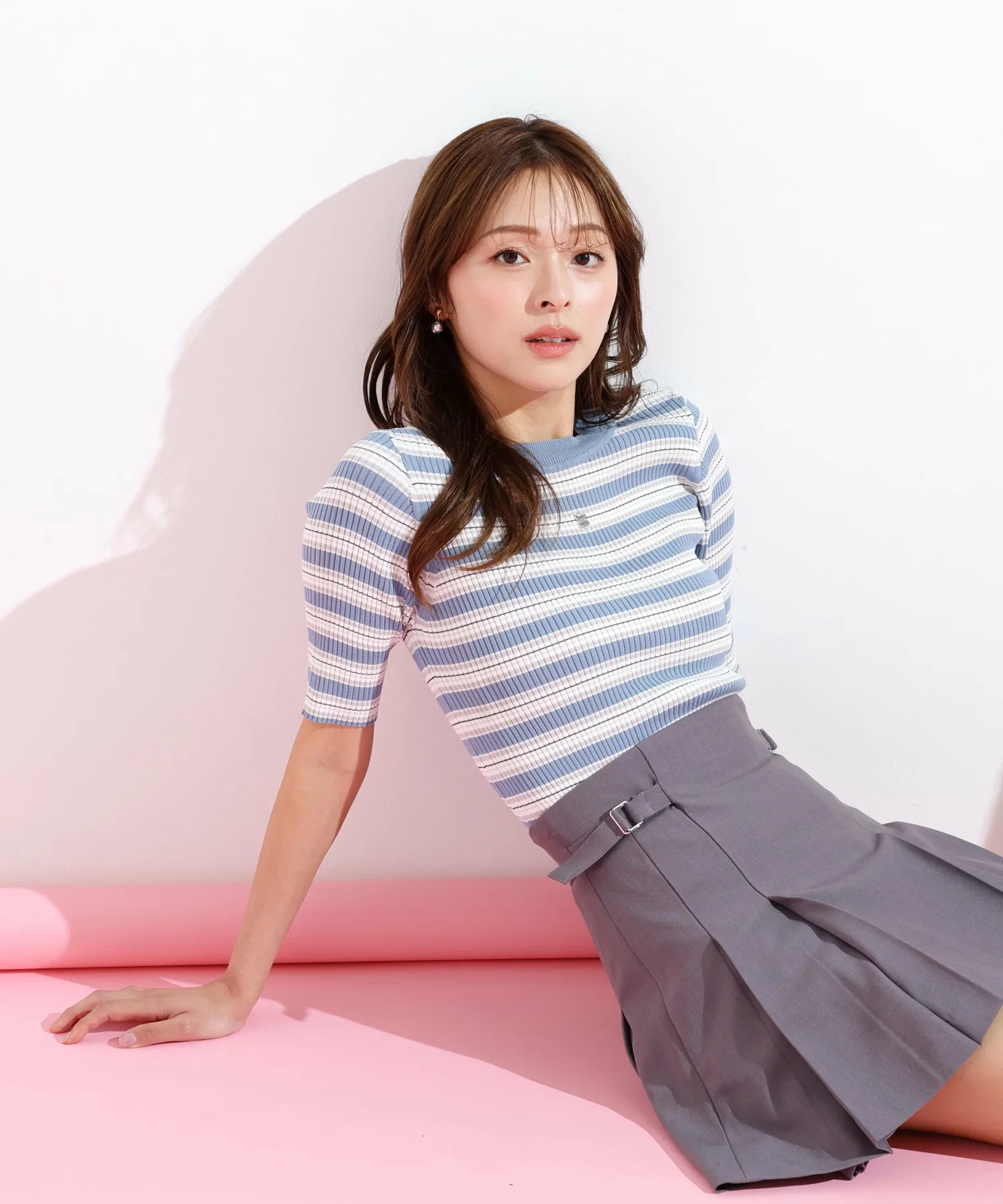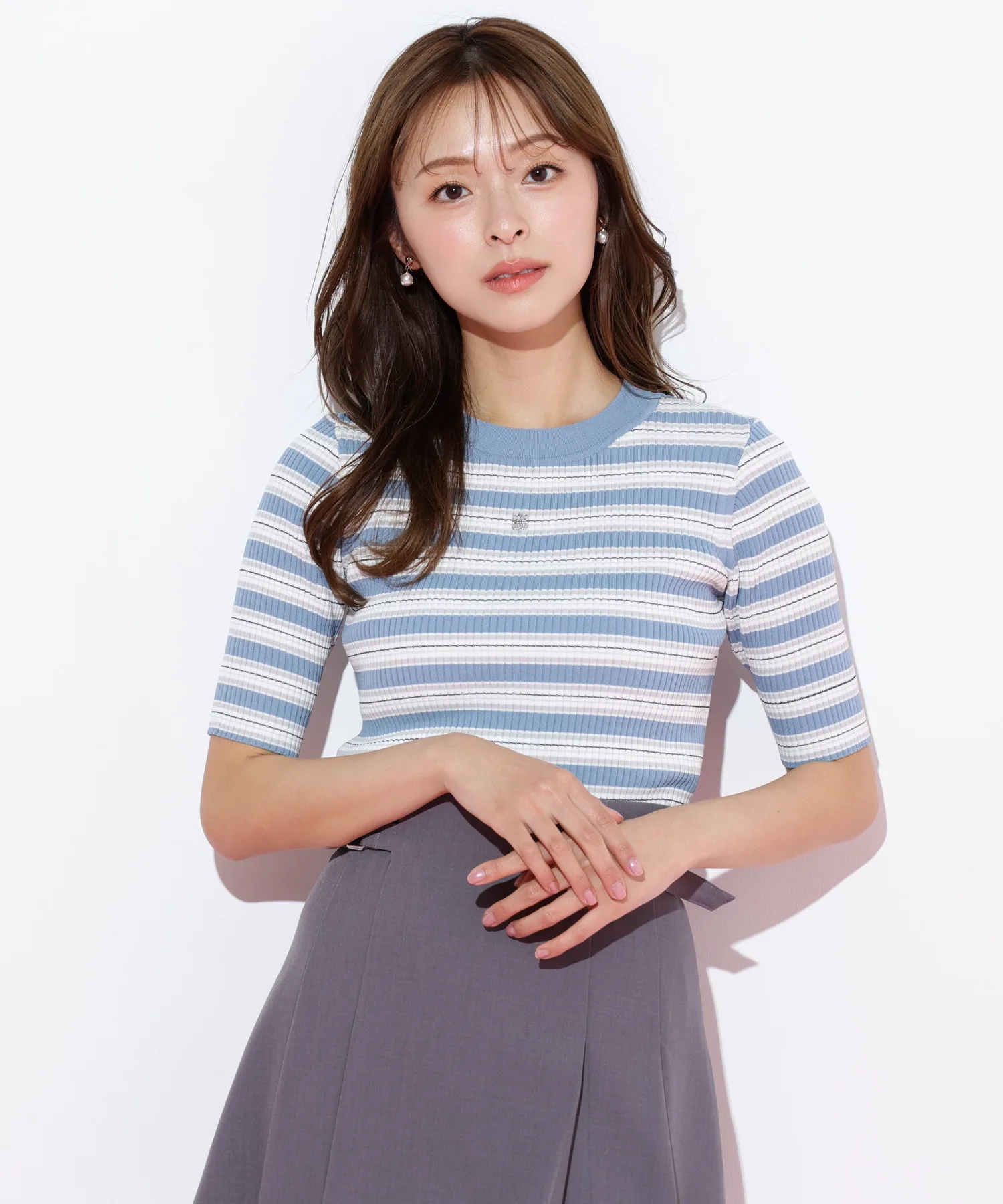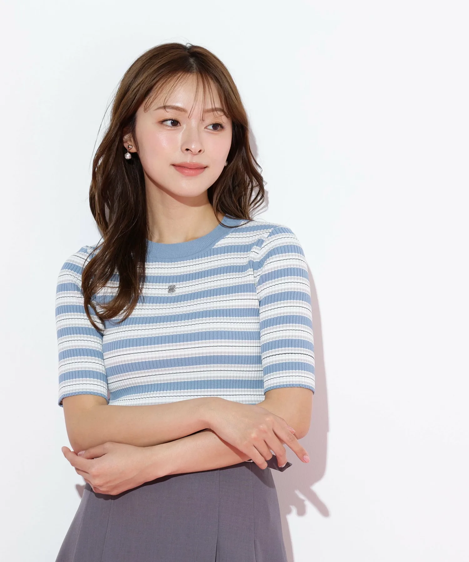 Вязаный свитер с многослойной каймой, сотканный из великолепной блестящей нити. Контрастные цвета привлекают внимание и добавляют стильный акцент вашему образу. Компактный размер этого свитера позволяет легко сочетать его с юбками или брюками, а также использовать в качестве нижнего слоя. *Цвет может выглядеть по-разному в зависимости от условий освещения во время фотосъемки.