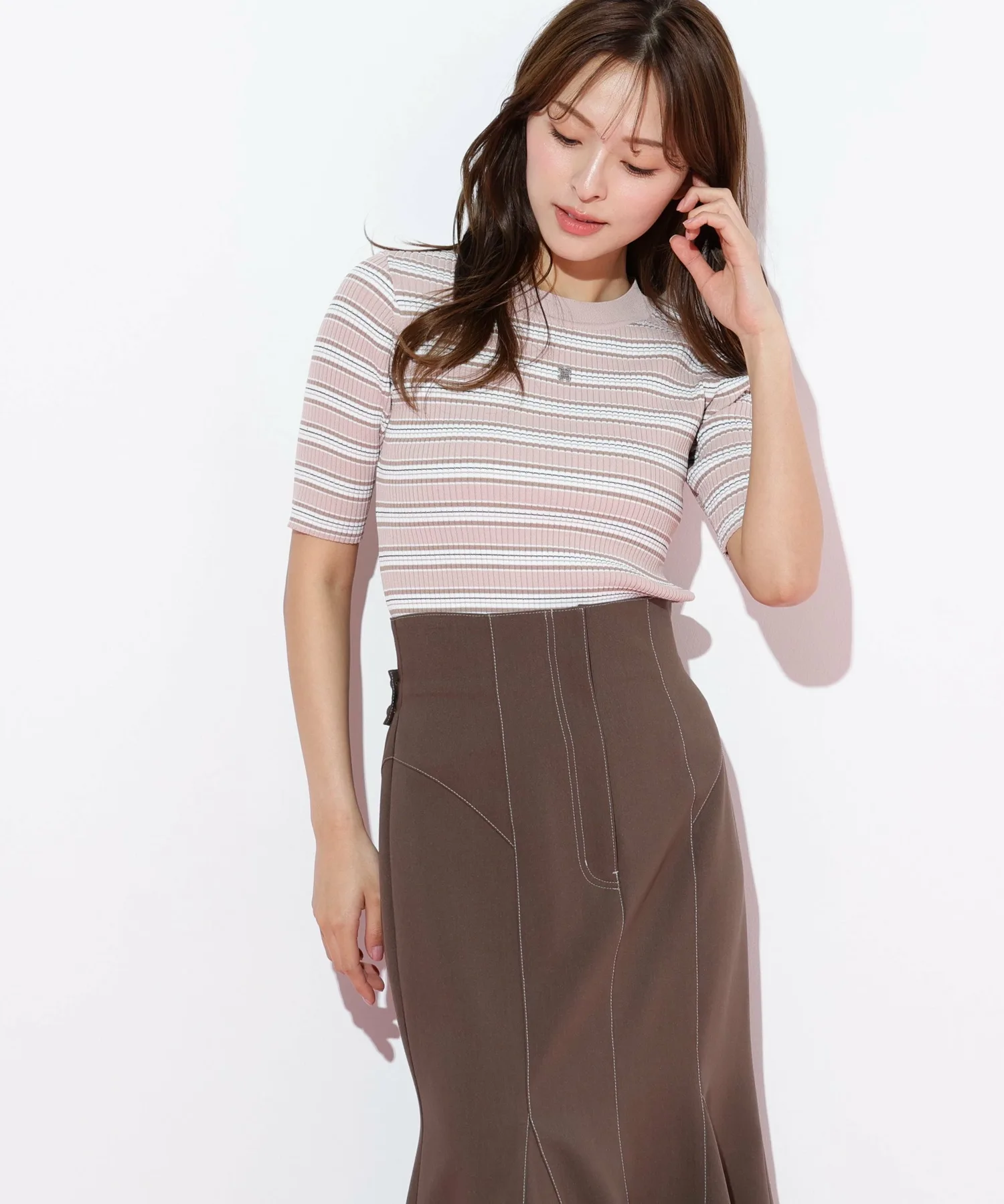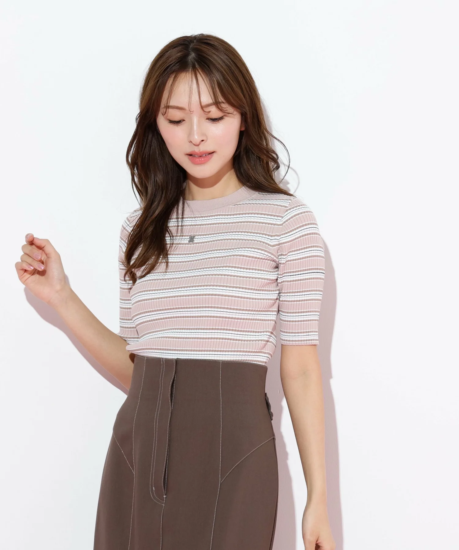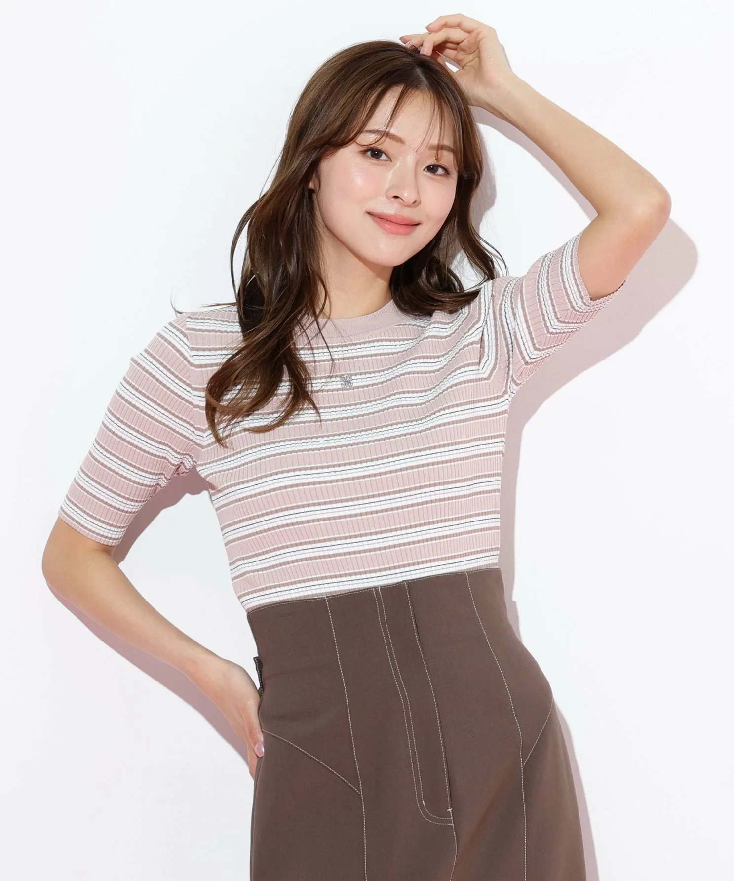 Вязаный свитер с многослойной каймой, сотканный из великолепной блестящей нити. Контрастные цвета привлекают внимание и добавляют стильный акцент вашему образу. Компактный размер этого свитера позволяет легко сочетать его с юбками или брюками, а также использовать в качестве нижнего слоя. *Цвет может выглядеть по-разному в зависимости от условий освещения во время фотосъемки.