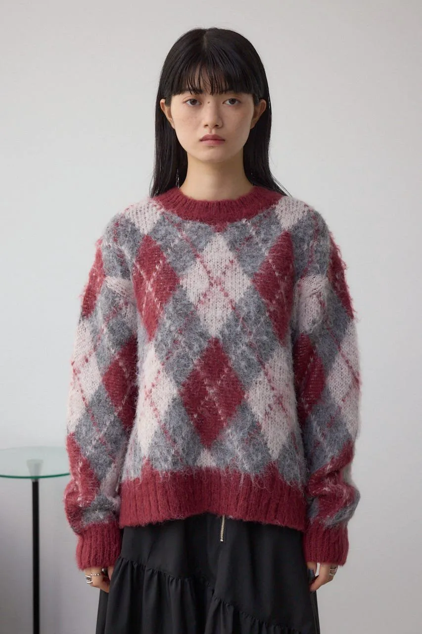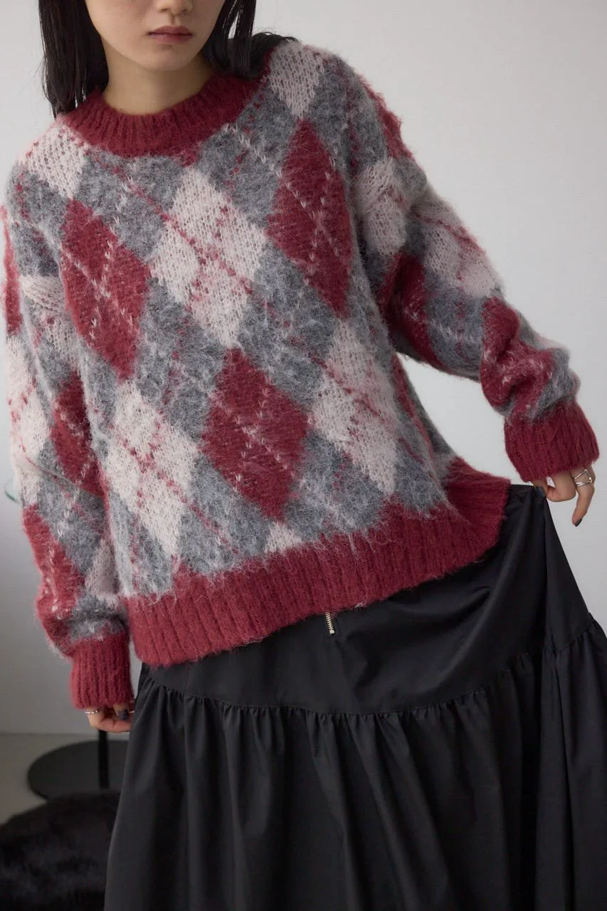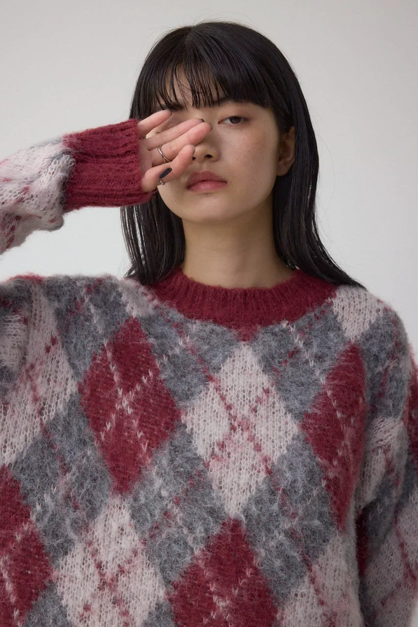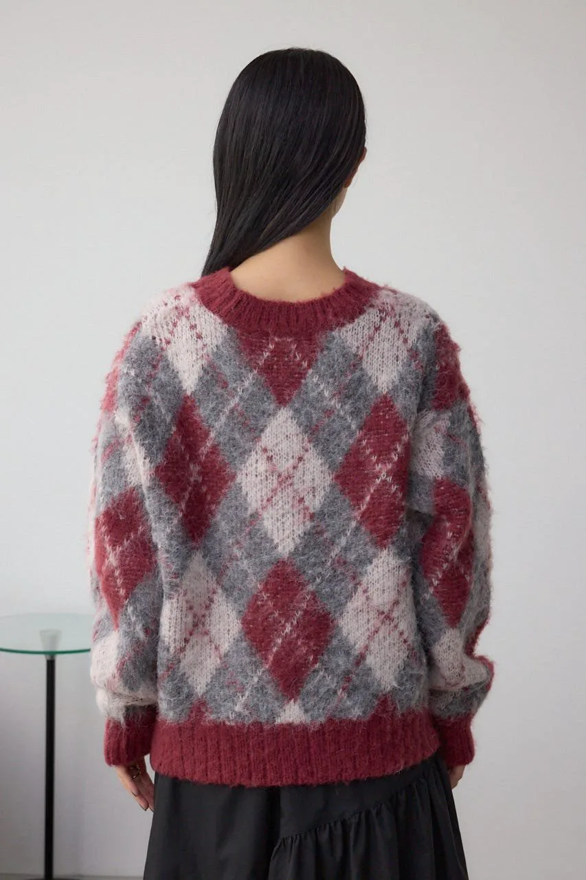 Этот вязаный пуловер украшен ромбовидным узором.