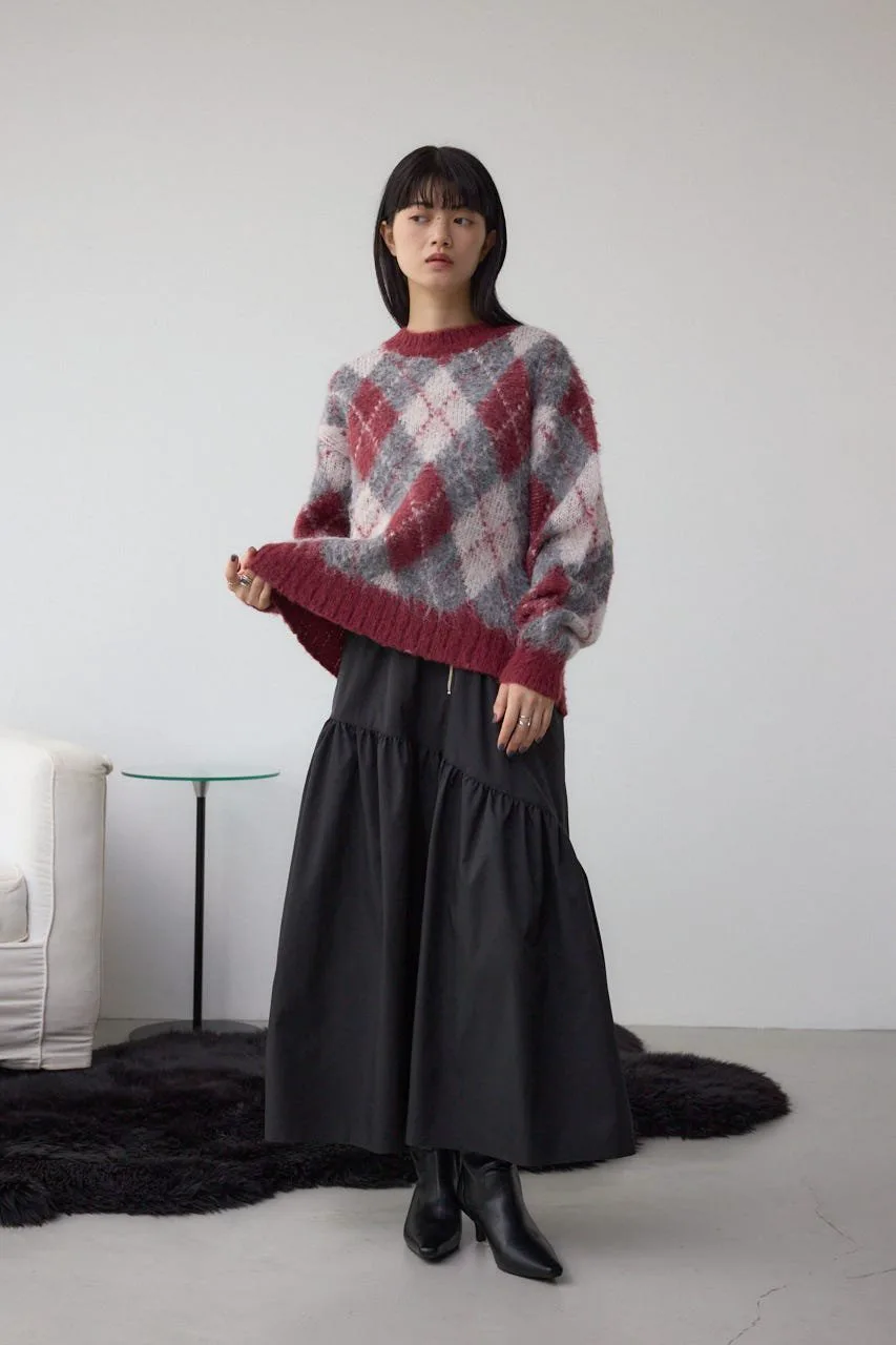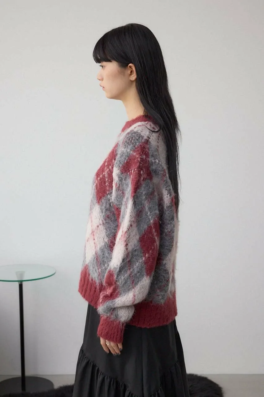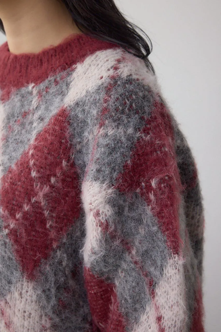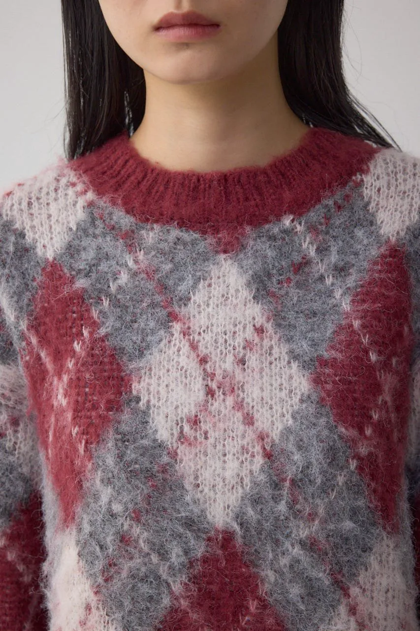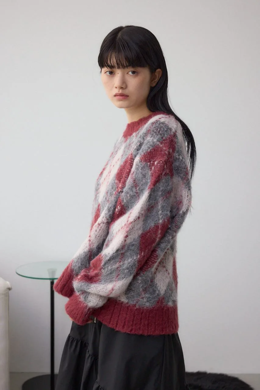 Этот вязаный пуловер украшен ромбовидным узором.