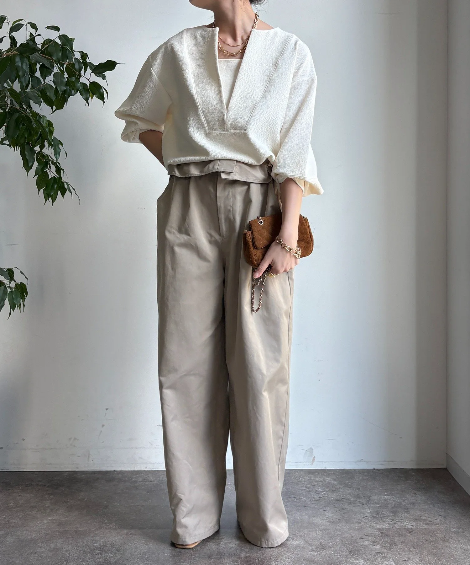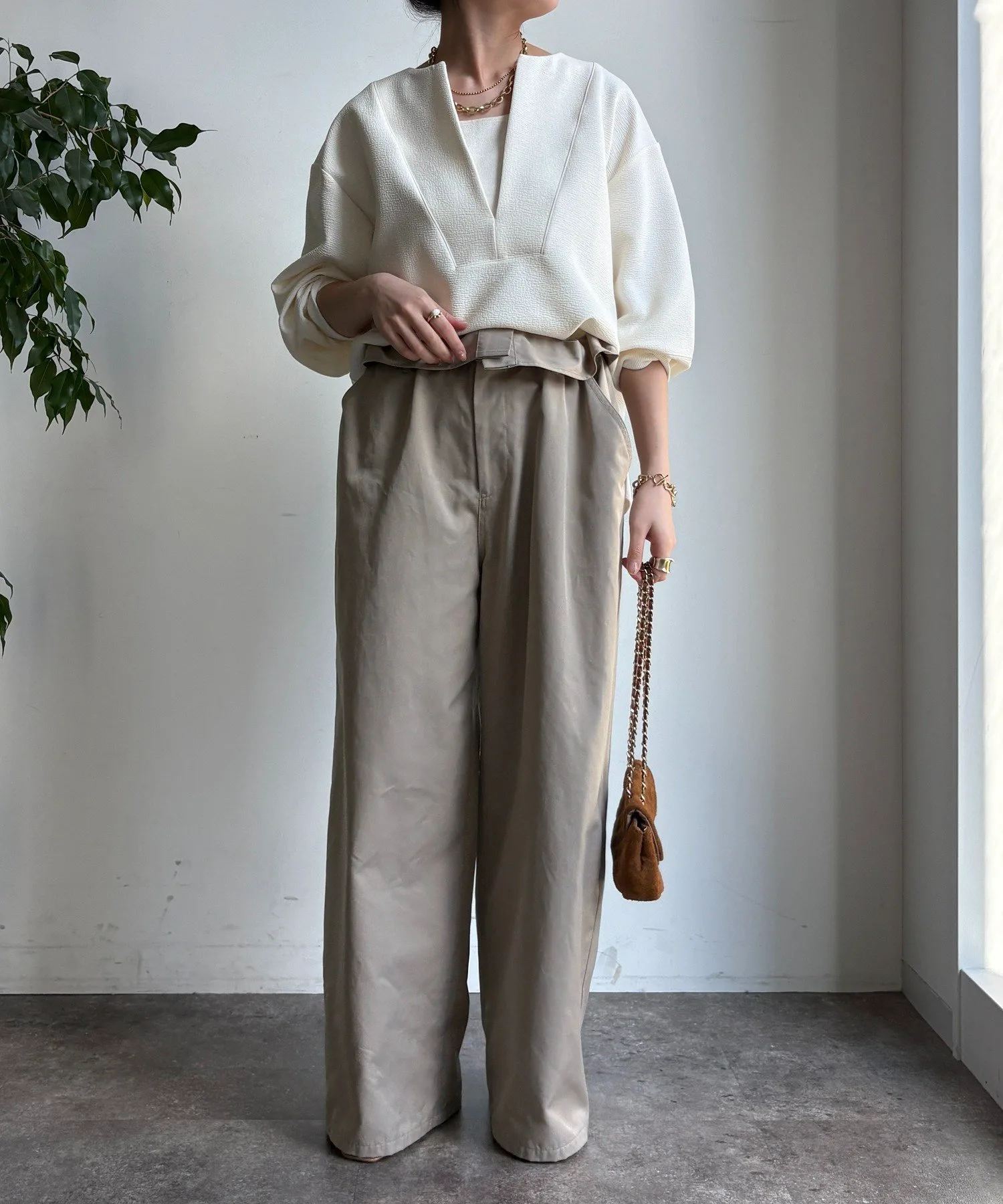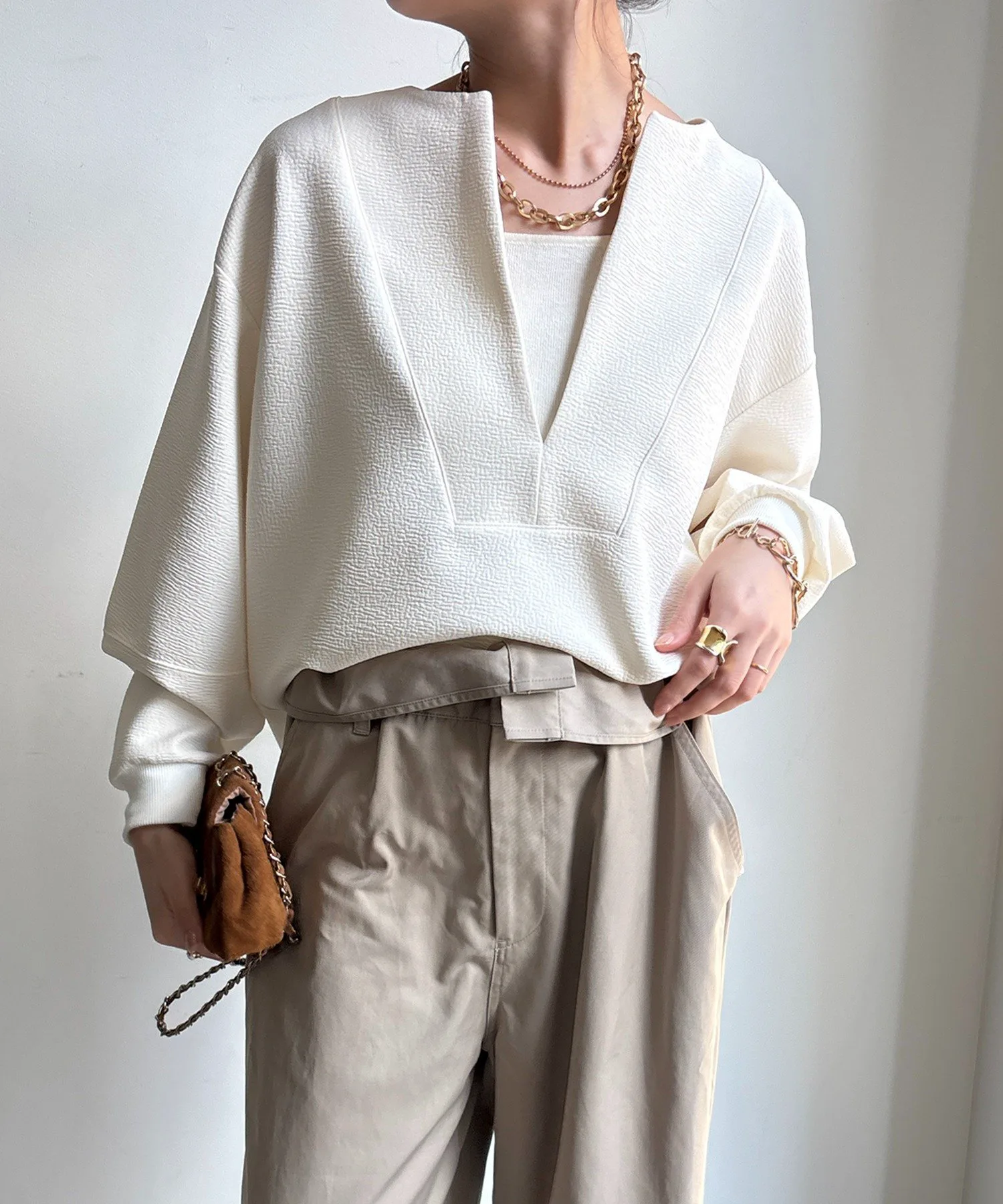 Не слишком глубокий V-образный вырез создает женственную мягкость.