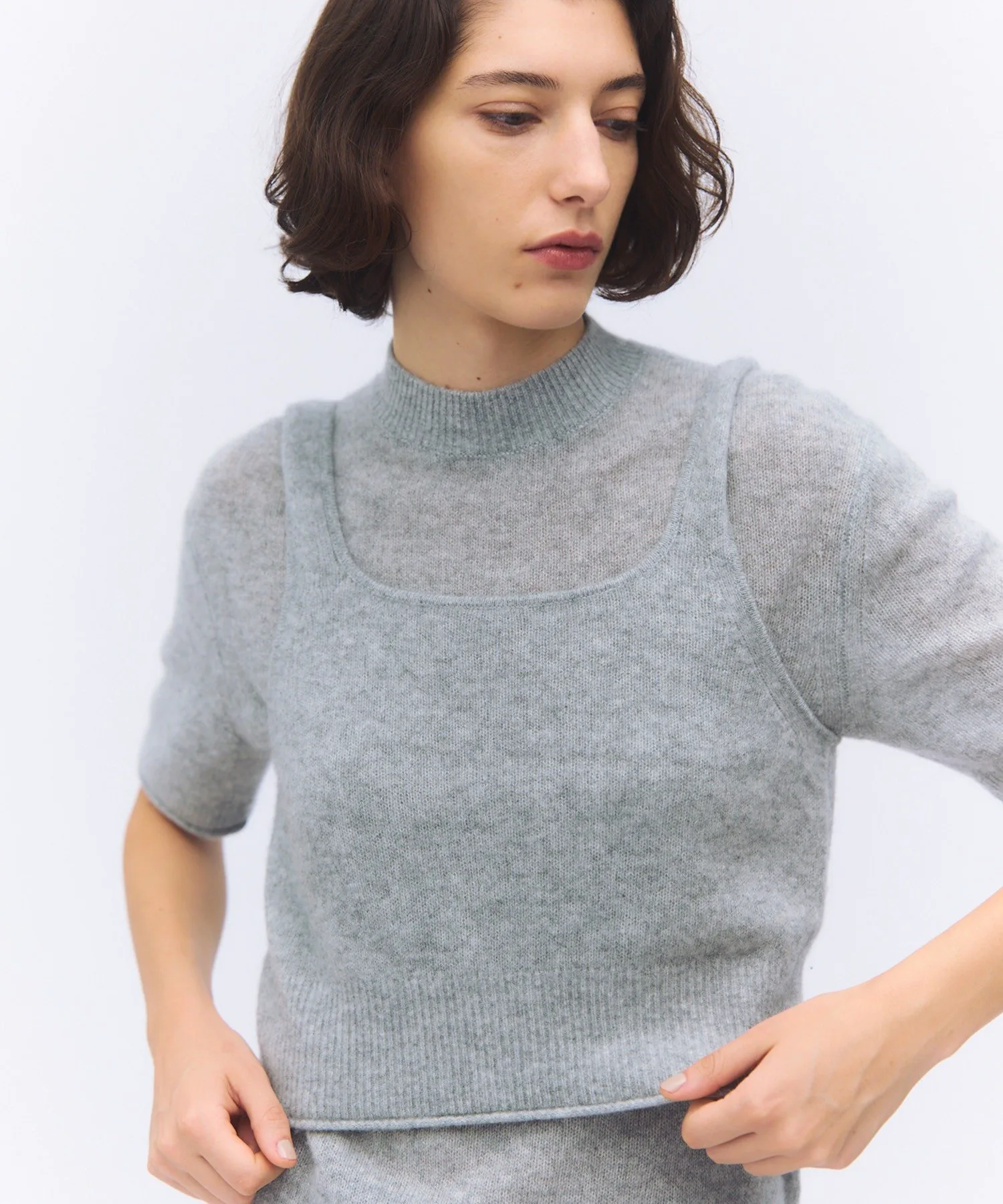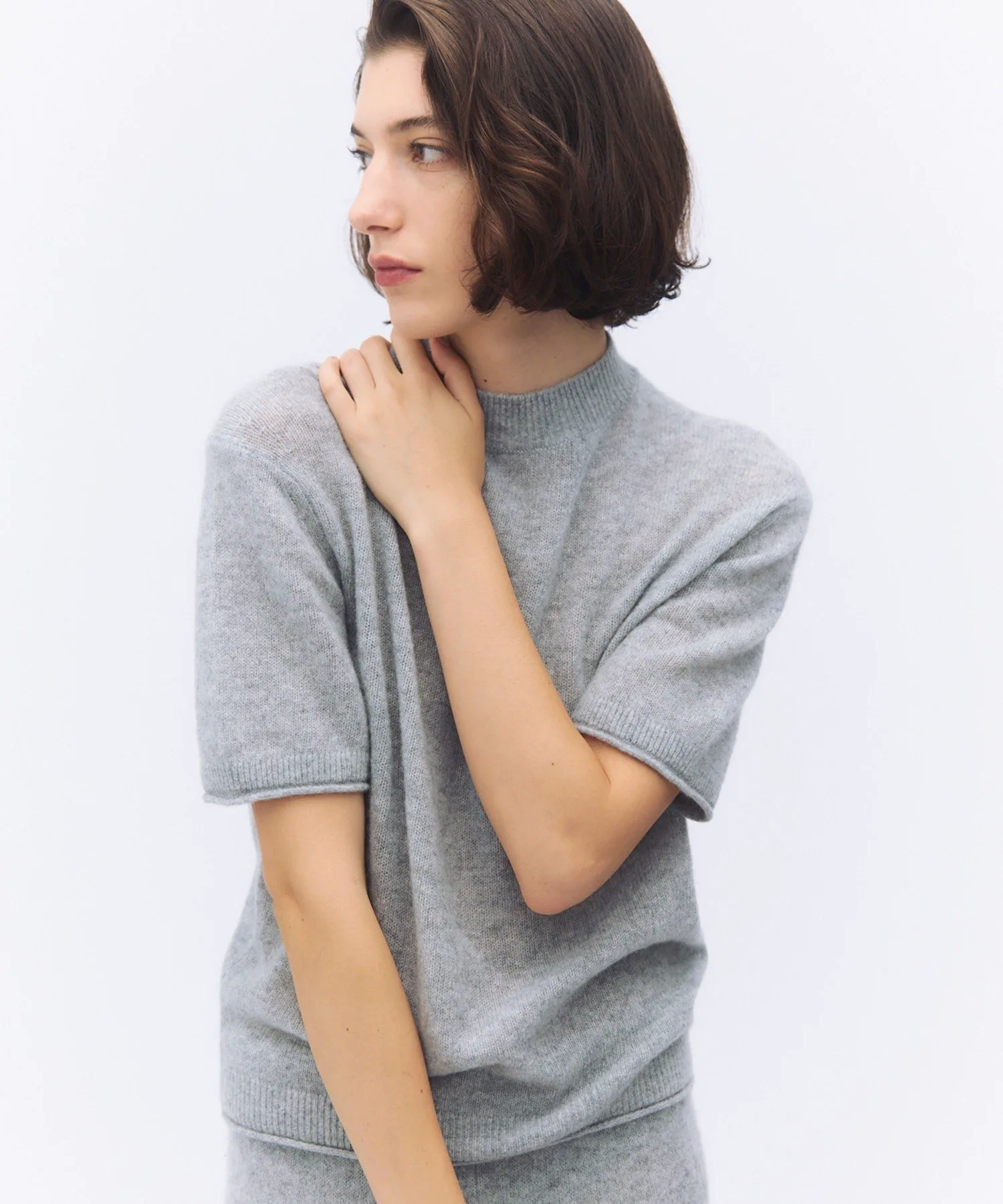 Кашемир высочайшего качества тщательно войлочный, что обеспечивает легкость и комфорт.Свободный крой и рукава до локтя делают его удобным для ношения как футболку.