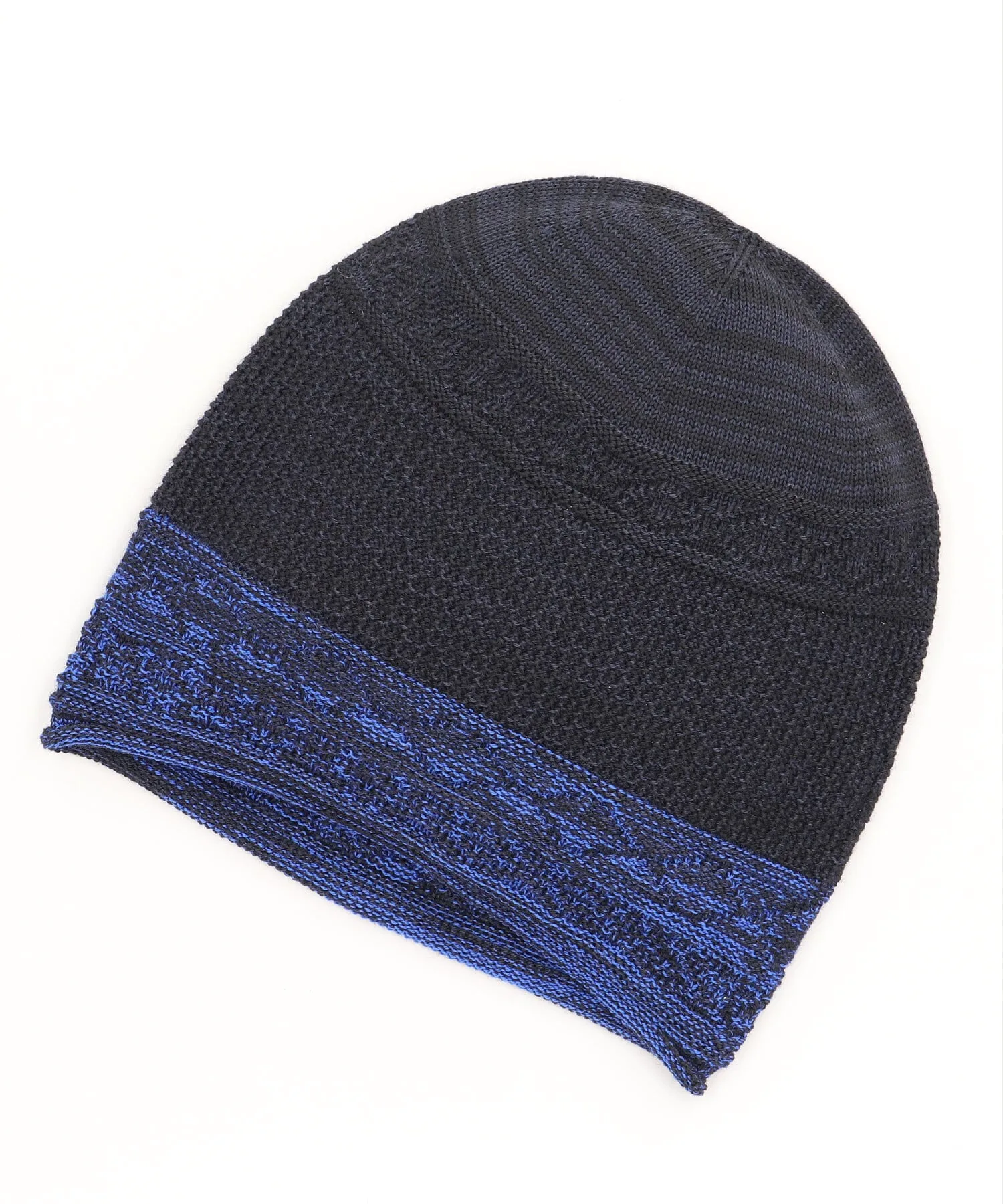Однослойная вязаная шапка свободного силуэта.