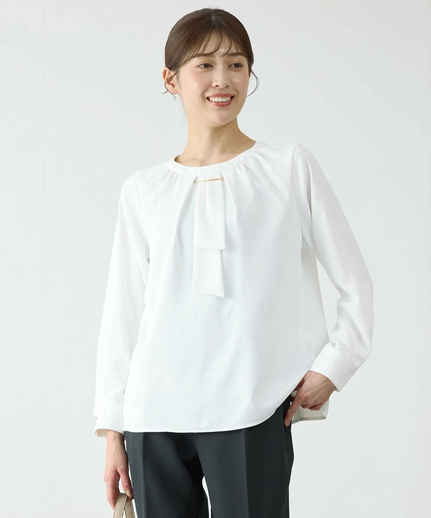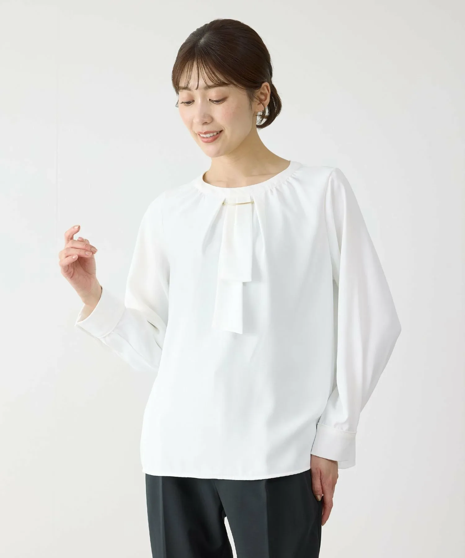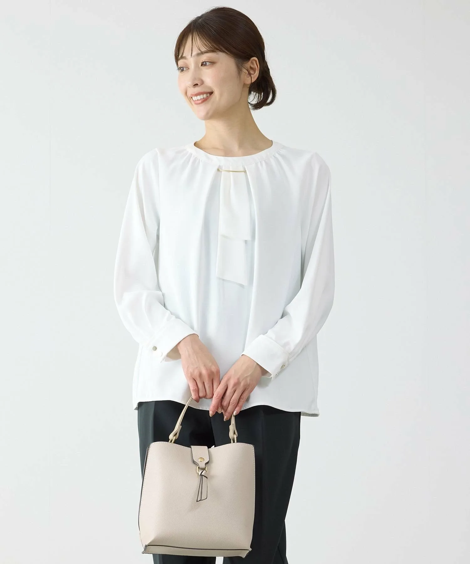 - Сочетайте с брюками со складками по центру для классического, изысканного офисного стиля, полного свежести.