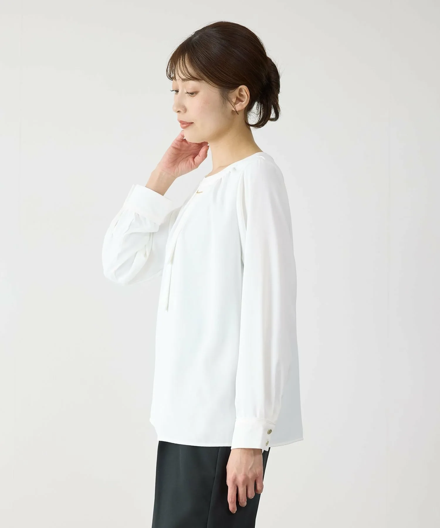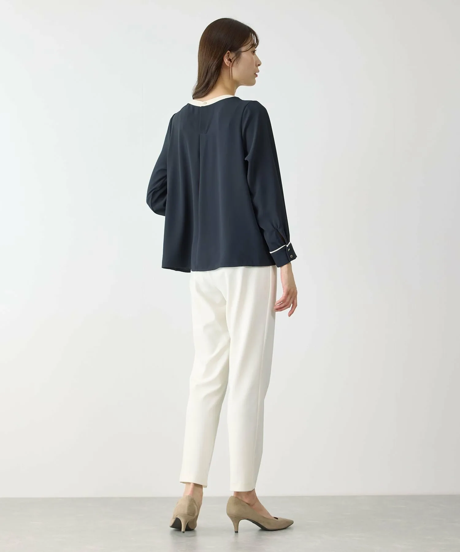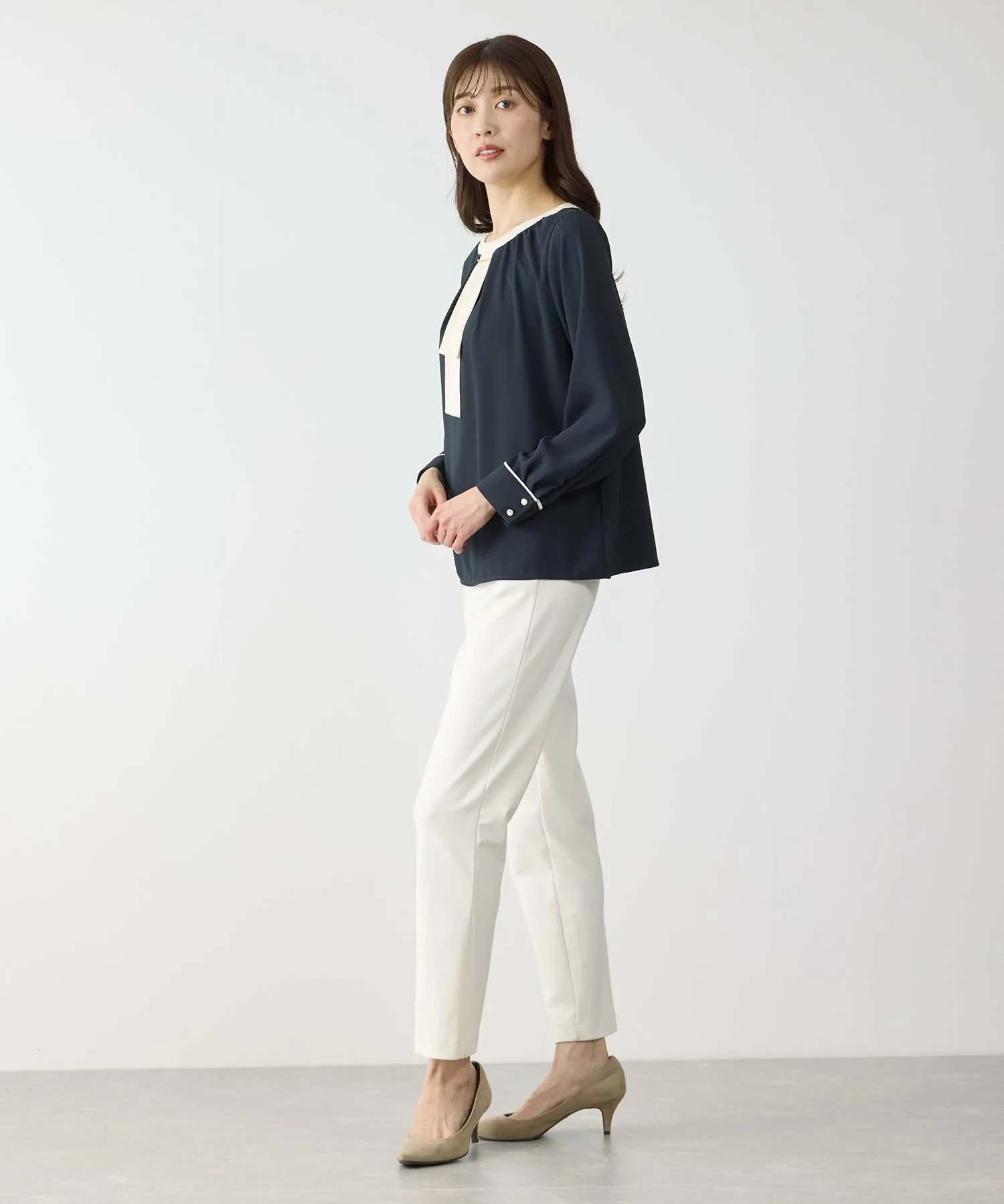 Излучая интеллект и элегантность. Двухцветная блузка, идеально подходящая для взрослых. [Дизайн/Силуэт]