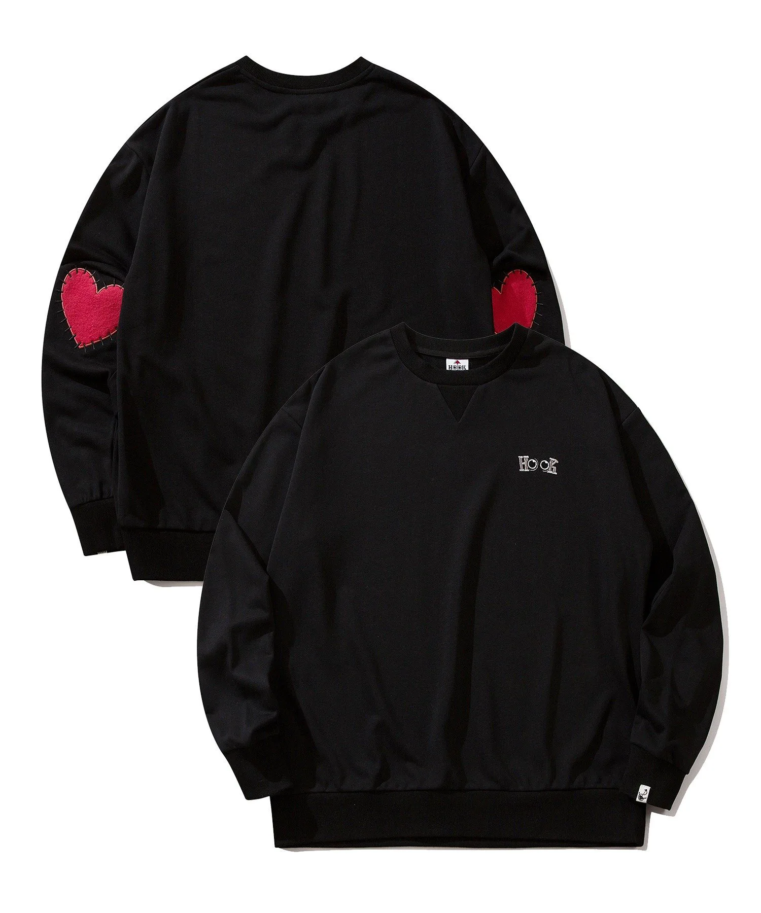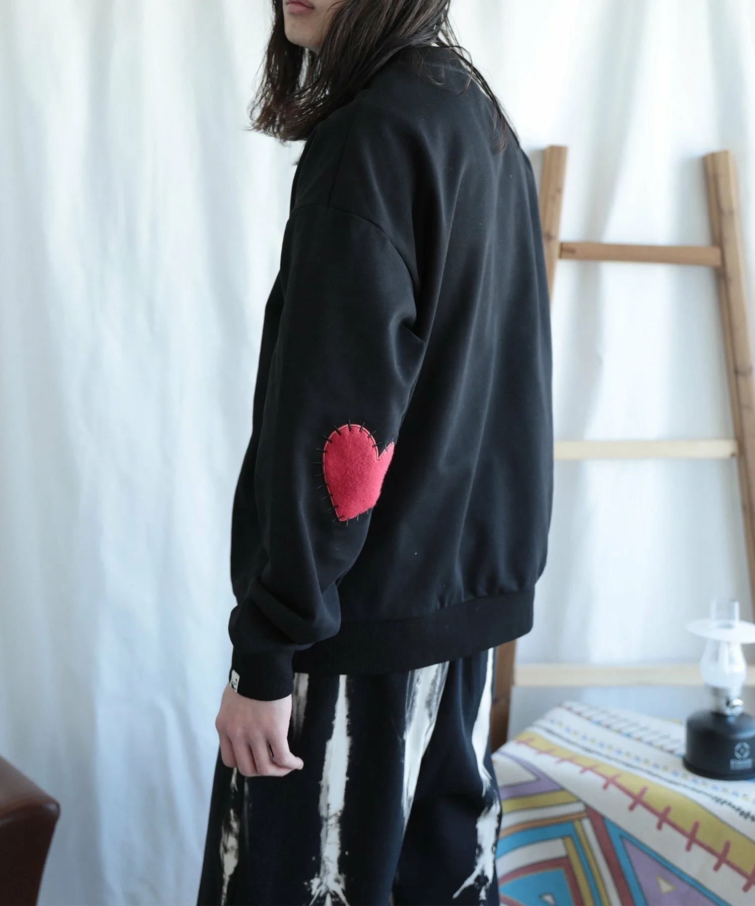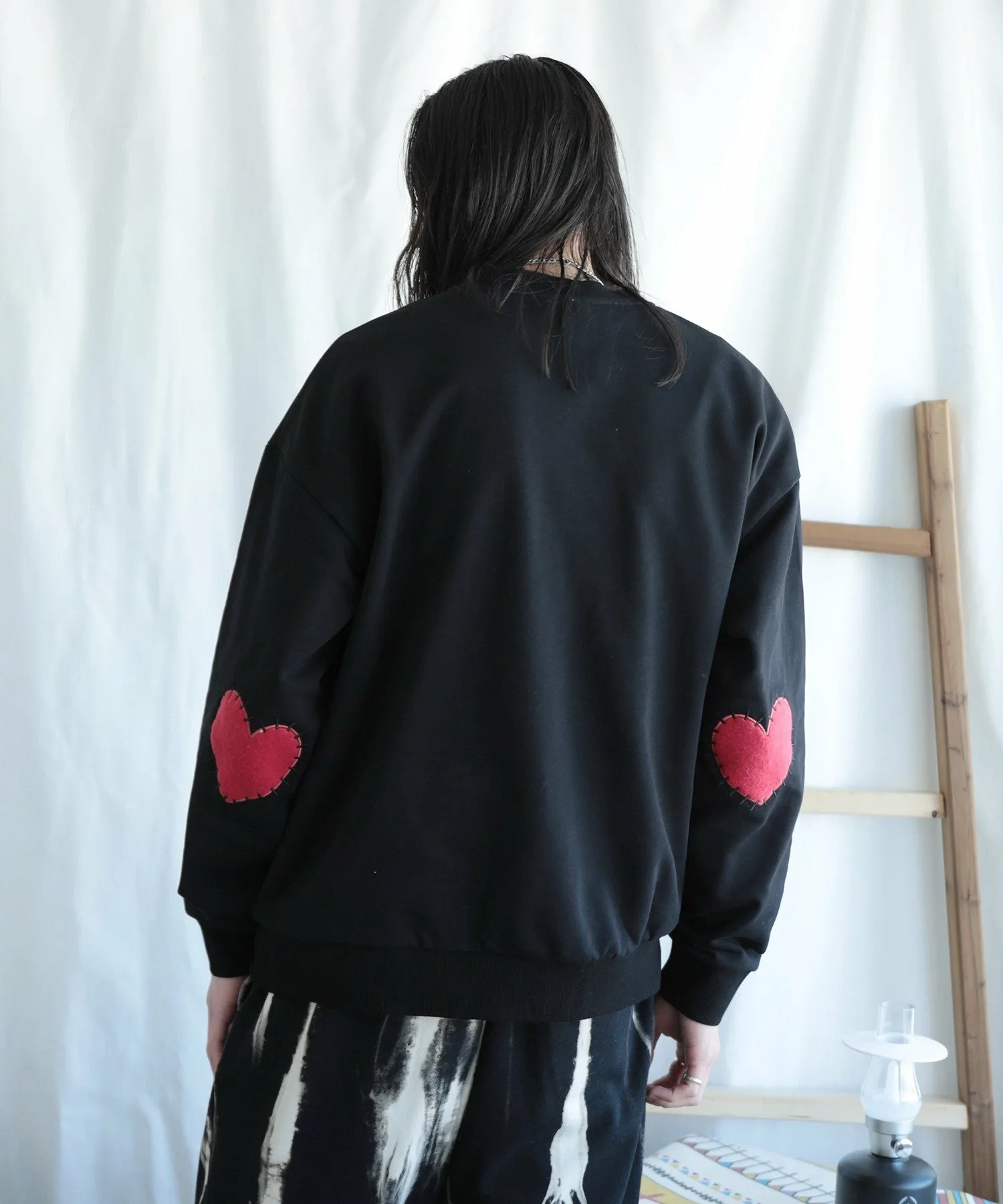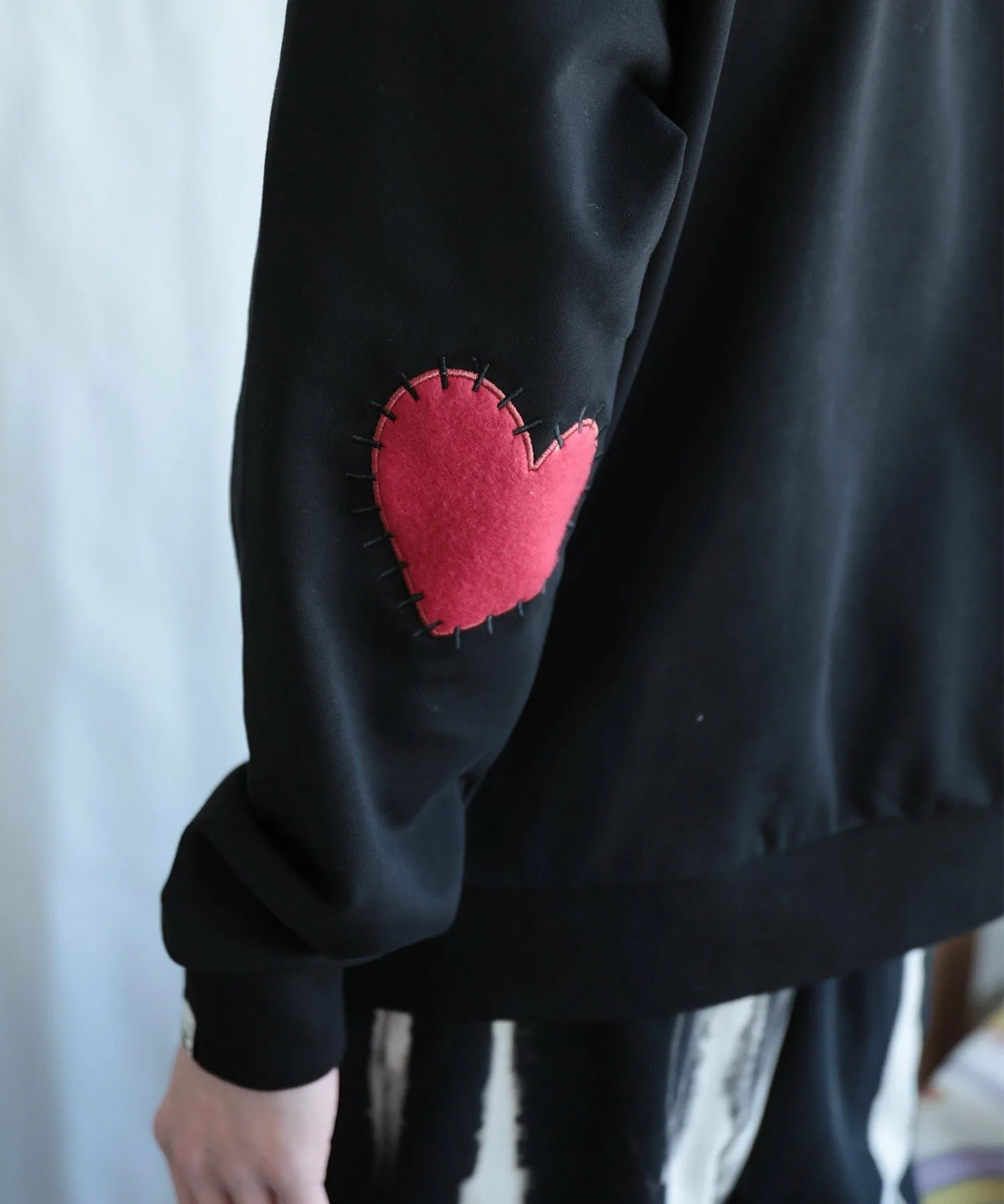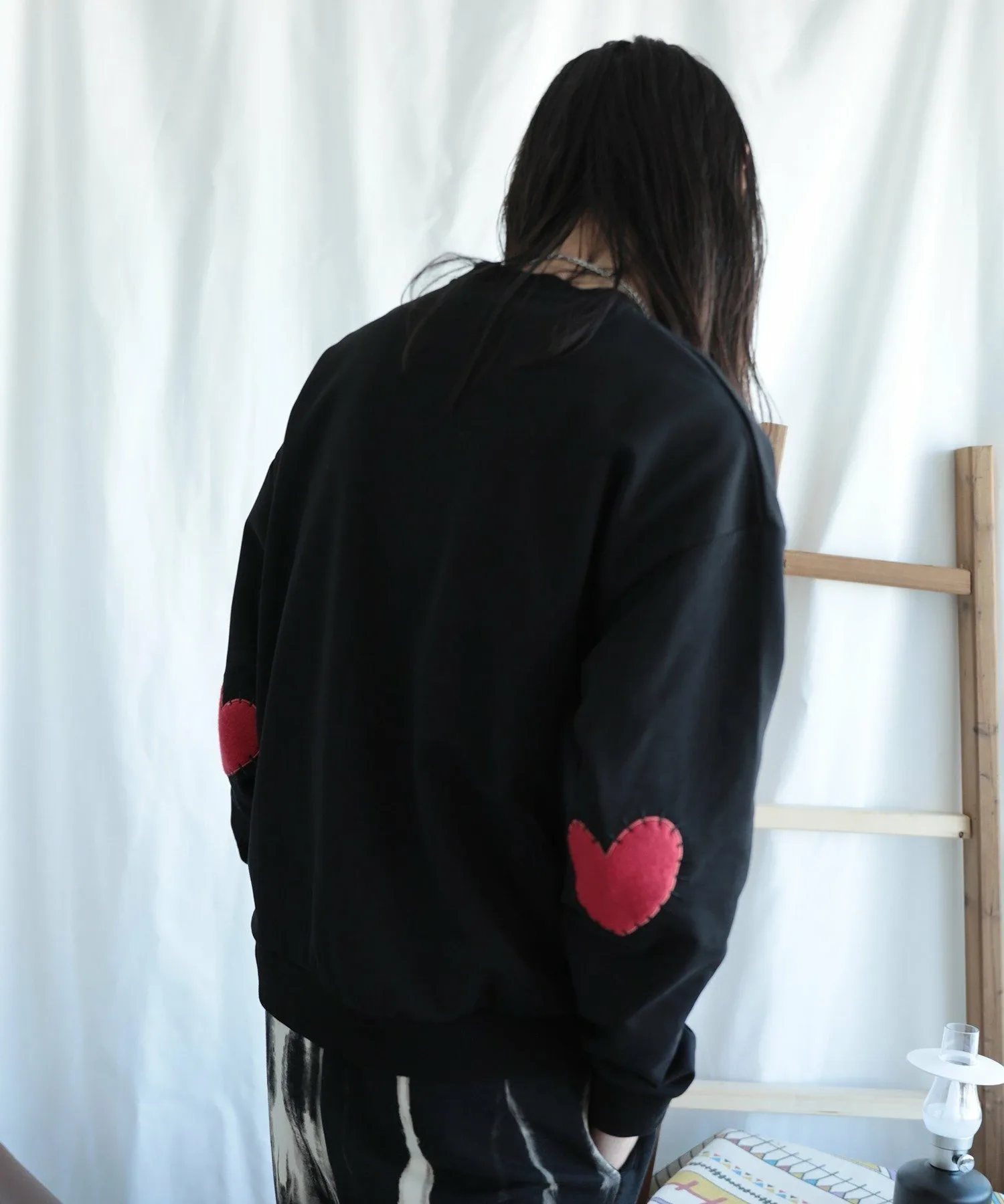Свитшот с нашивками в форме сердечек на локтях.