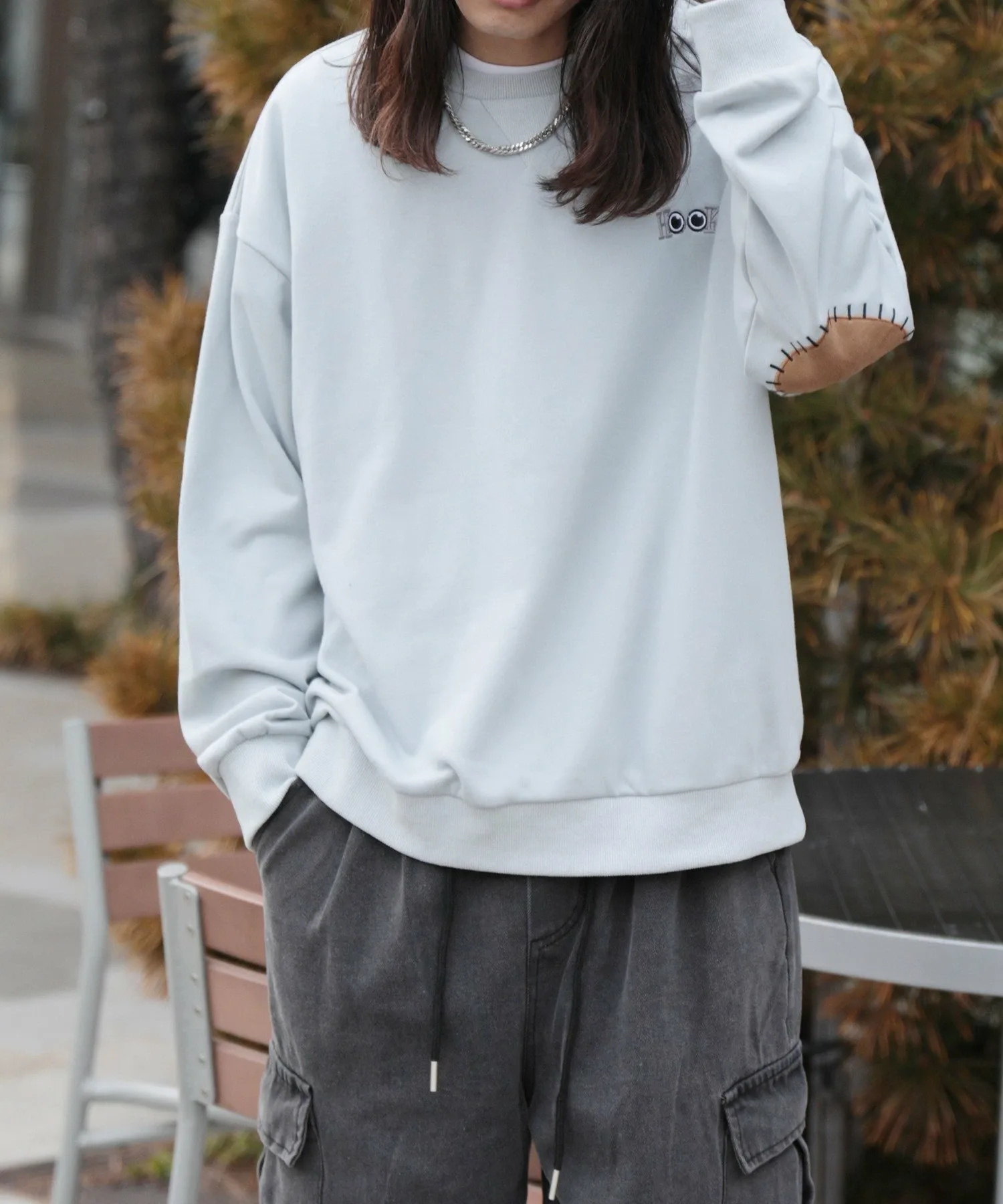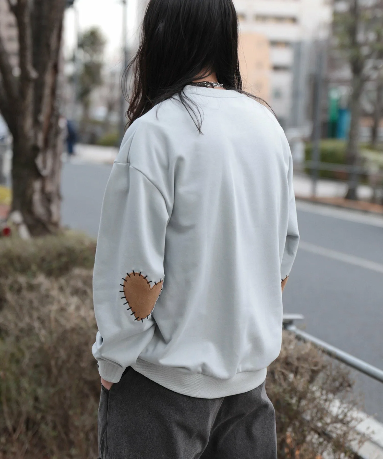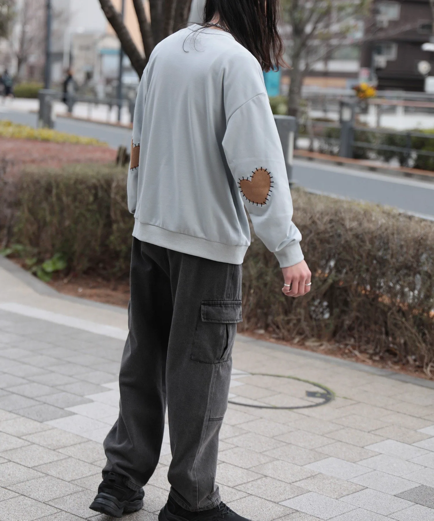 Свитшот с нашивками в форме сердечек на локтях.
